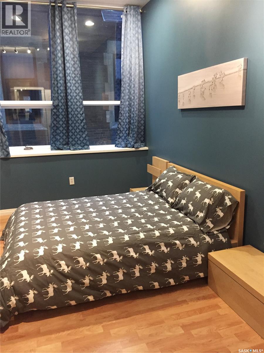 This condo presents a unique opportunity to live or invest in the heart of downtown Regina, offering a perfect blend of historical charm and modern conveniences. Whether you're looking for a vibrant city lifestyle or a smart investment, this property is designed to meet your needs. Located within walking distance to shopping, restaurants, and amenities, it’s situated in the Victoria Place Condo Complex on the second floor, featuring a west-facing balcony perfect for relaxing after a busy day. All furnishings and appliances, except for wall hangings, are included, making it both affordable and move-in ready. As you enter the unit via a quick, wheelchair-accessible elevator ride, you’re welcomed into an open-concept space with ceilings over 9ft. high. The living room seamlessly flows into the dining and kitchen area, which boasts updated cabinetry and a portable island for additional workspace and storage. The spacious bedroom features a walk-in closet for extra storage, while the 4pc. bath has an updated bath surround. The unit is complete with a laundry area and storage in the utility room. This is a self-contained unit with low condo fees that include water utility and cover exterior building and common area maintenance, building insurance, sewer, reserve fund, and snow removal. For investors, this condo is also an appealing option for rental income, having been consistently rented out at an average of $1500 per month, including utilities. With its furnishings and appliances, it’s affordable and move-in ready. Don’t miss out on this opportunity—call to arrange your personal viewing (29278177)