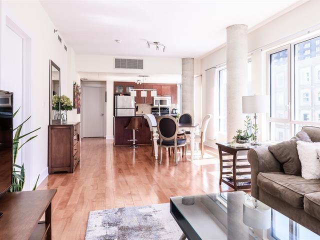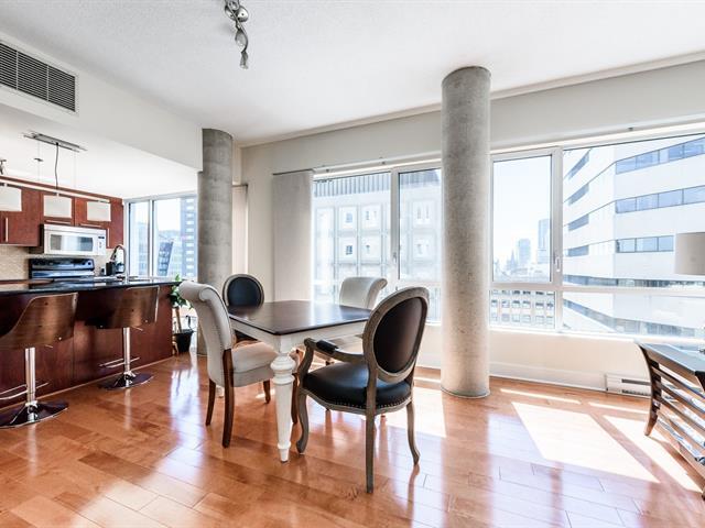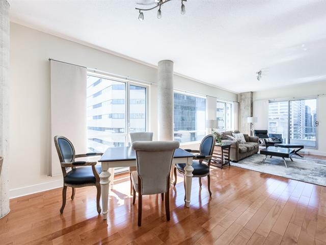 Welcome to Le Concorde, a striking corner unit perched high above the city in one of downtown Montreal's most desirable locations. Steps from McGill University, Place des Arts, and the Quartier des Spectacles, you're surrounded by culture, cafés, and green spaces, all within walking distance. This 2-bedroom, 2-bath condo blends contemporary sophistication with industrial charm, featuring exposed concrete columns, 9-ft ceilings, and floor-to-ceiling windows framing sweeping skyline views. An open kitchen with large island connects beautifully to the living and dining areas, ideal for modern urban living. (54185863)