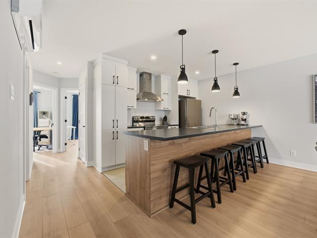 Ce magnifique condo construit en 2022 se distingue par son style contemporain et sa luminosité abondante. Il offre 2 ch. à coucher, une s. de bain avec plancher radiant ainsi qu'un bureau idéal pour le télétravail. L'aire de vie ouverte, regroupant la cuisine moderne avec îlot, la salle à manger et le salon, crée un espace convivial et élégant, parfait pour recevoir. À l'extérieur, vous profiterez d'une galerie couverte ainsi que d'un espace de rangement pratique. Impeccablement entretenu et au goût du jour, ce condo est bien situé, à proximité de tous les services essentiels, offrant un mode de vie à la fois confortable, moderne et pratique. (57282877)