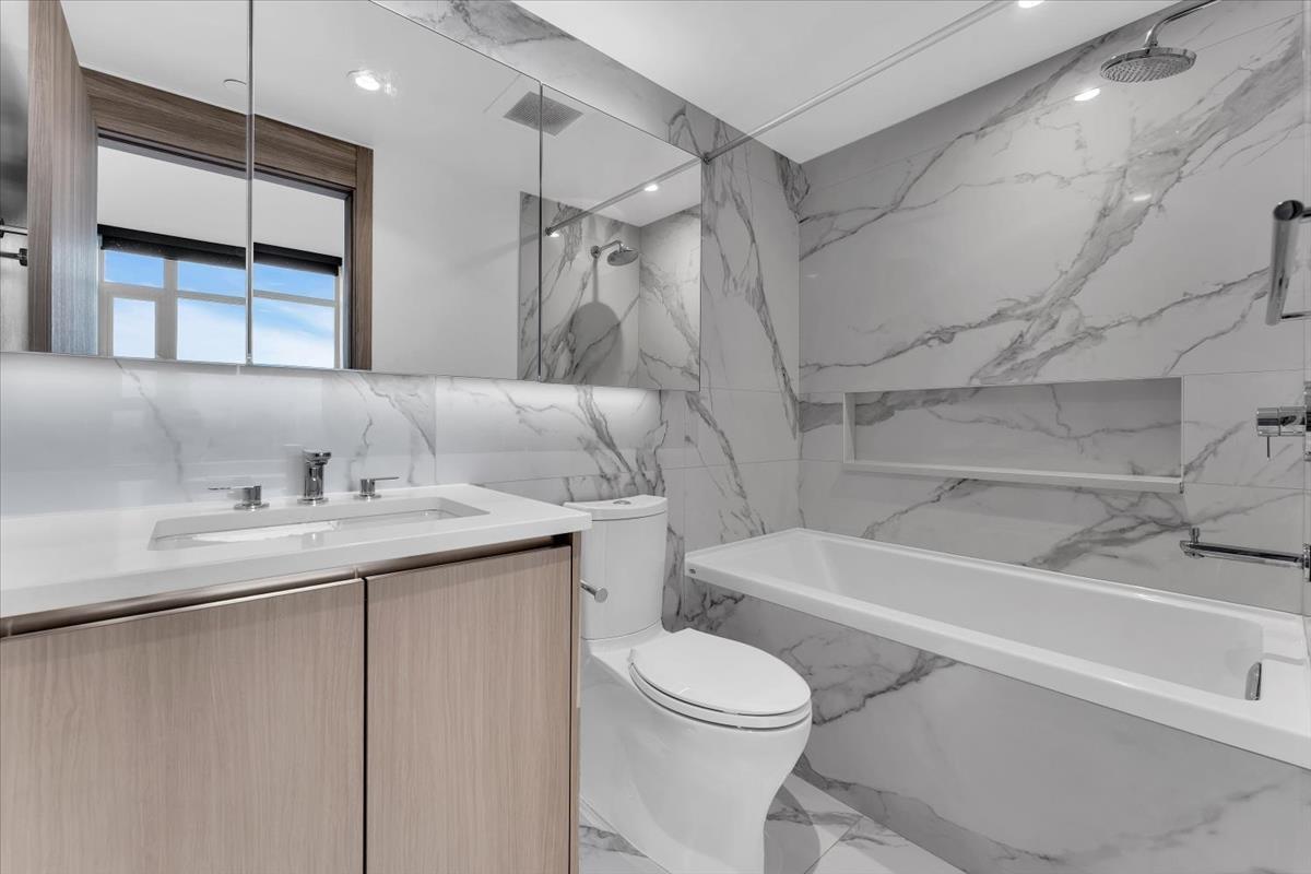 Experience elevated city living at Park Boulevard by Concord Pacific in the heart of Surrey Central. This bright 2-bedroom, 2-bath corner home offers over 800 sqft of stylish comfort with soaring ceilings, central A/C, and an open layout designed for both relaxing & entertaining. The modern kitchen is a standout, featuring quartz countertops, custom cabinetry, Bosch built-in appliances, & gas cooktop. Perched high above the city, unwind with breathtaking northwest views of glowing sunsets, mountains, and sparkling city lights-your own daily escape in the sky. Enjoy impressive lineup of amenities including fitness centre, badminton court, indoor pool, hot tubs, sauna, steam room etc. Whether you're upsizing your lifestyle or investing in a prime location, this home checks every box! (32331554)