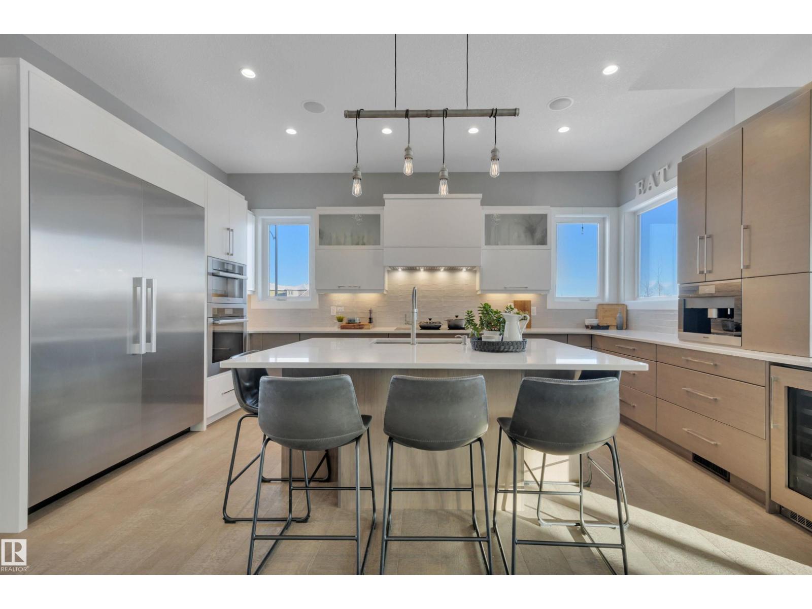Exceptional custom walkout bungalow crafted by Ashton Custom Homes, ideally located in Beaumont’s prestigious Forest Heights community with a sun-filled SE-facing backyard backing onto a tranquil pond. This luxury residence offers an elegant open-concept design with soaring ceilings, expansive windows, an interior sound system, and refined finishes throughout. The chef-inspired kitchen is a true showpiece, featuring top-of-the-line Miele appliances, custom cabinetry, premium stone countertops, and a generous island—perfect for entertaining. The primary bedroom retreat includes a luxurious spa-style ensuite, walk-in closet, and serene views. The fully finished walkout basement offers two additional bedrooms, a large recreation area, in-floor heating, and direct access to the patio. Enjoy elevated outdoor living on the expansive deck overlooking the pond. Additional highlights include a heated triple attached garage, AC, furnace serviced in 2024 and a whole home filtration system. (33722167)