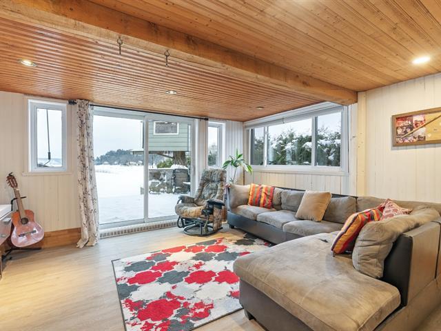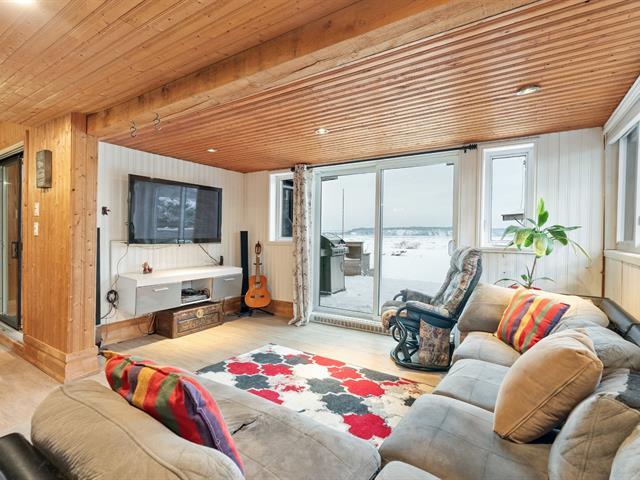 Unique single-family home offering outstanding character. Wood plank walls and ceilings, a striking mezzanine, and numerous renovations completed over the years. Located on the first row along the St. Lawrence River, directly waterfront, with a private boat launch and breathtaking views of the Cap-Rouge promenade. The ground floor features spacious open-concept living areas filled with natural light, with heated floors throughout for exceptional comfort. Two bedrooms, a warm atmosphere, and a peaceful setting. Honestly, this is a rare waterfront property that's almost never available at this price. (52270697)
