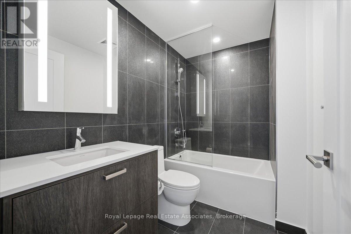 Welcome to Edenbridge by Tridel, a refined and thoughtfully designed residence offering elevated living in the heart of The Kingsway. This expansive 2-bedroom plus den, 2.5-bathroom suite spans 1,331 sq. ft. and showcases a highly functional layout with generous principal rooms, elegant finishes, and a rare private terrace that seamlessly extends the living space outdoors. The contemporary kitchen is beautifully appointed with full-height cabinetry, quartz countertops, and integrated stainless steel appliances, flowing effortlessly into the open-concept living and dining area. Wide-plank flooring, clean architectural lines, and large windows enhance the sense of space and natural light, while a walk-out from the main living area leads directly to the private terrace-ideal for outdoor dining, entertaining, or quiet relaxation. The primary bedroom offers a serene retreat with ample closet space and a luxurious ensuite bathroom, while the second bedroom enjoys convenient access to its own full bath-providing excellent comfort and privacy. The versatile den offers flexibility for a home office, study, or additional living space. A powder room, in-suite laundry, and thoughtful storage complete the interior, along with one parking space and a locker included for everyday convenience. Residents enjoy access to a premium collection of amenities, including a fitness centre, indoor pool, sauna, rooftop terrace, guest suites, and 24-hour concierge service. Ideally located near Humbertown Shopping Centre, parks, transit, and schools, this suite offers spacious, upscale living in the heart of The Kingsway - steps from a grocery store for everyday convenience.. (41950209)