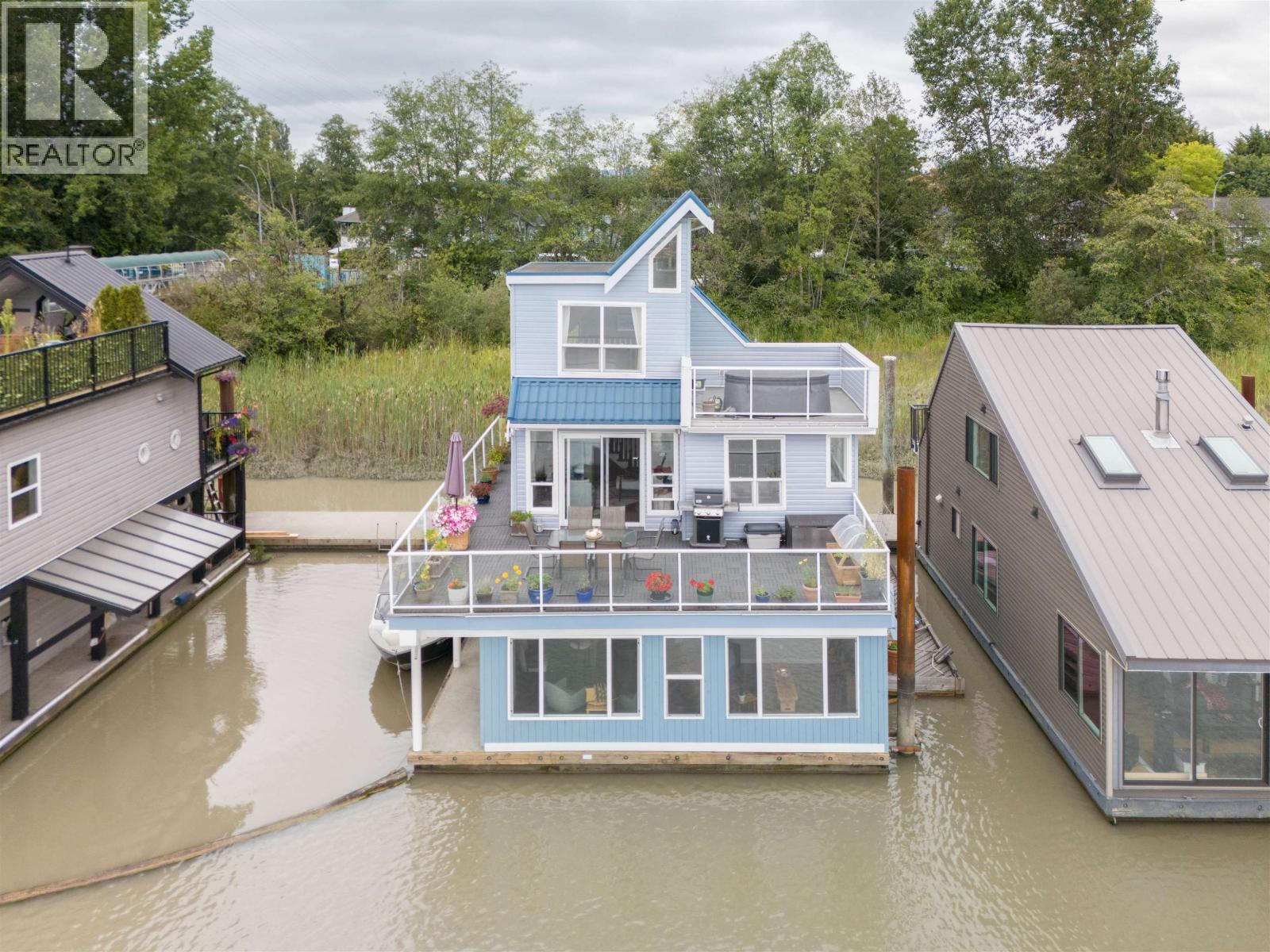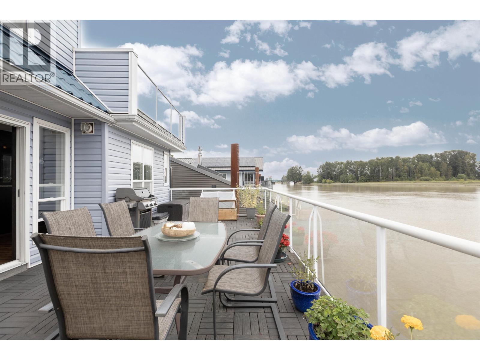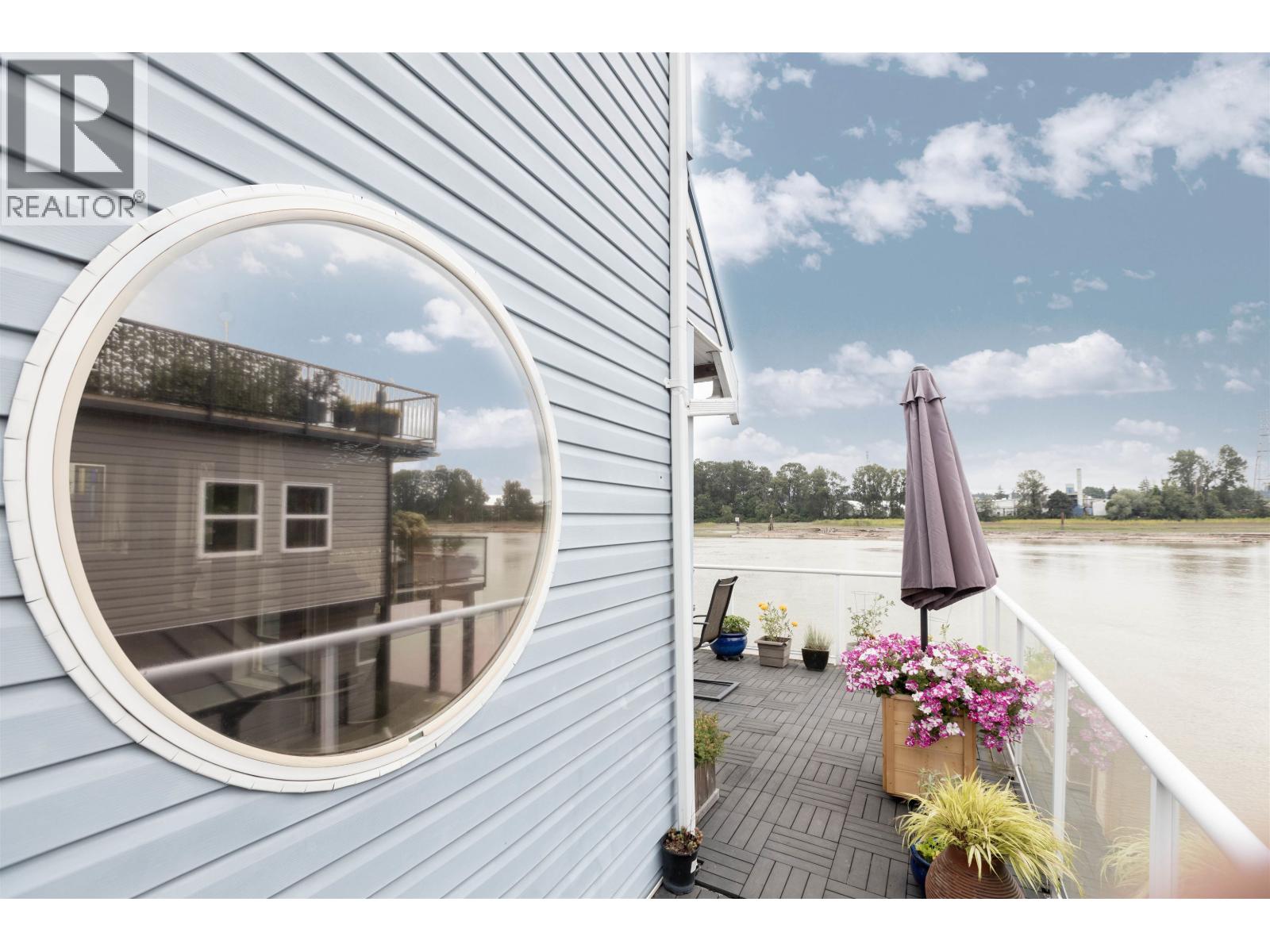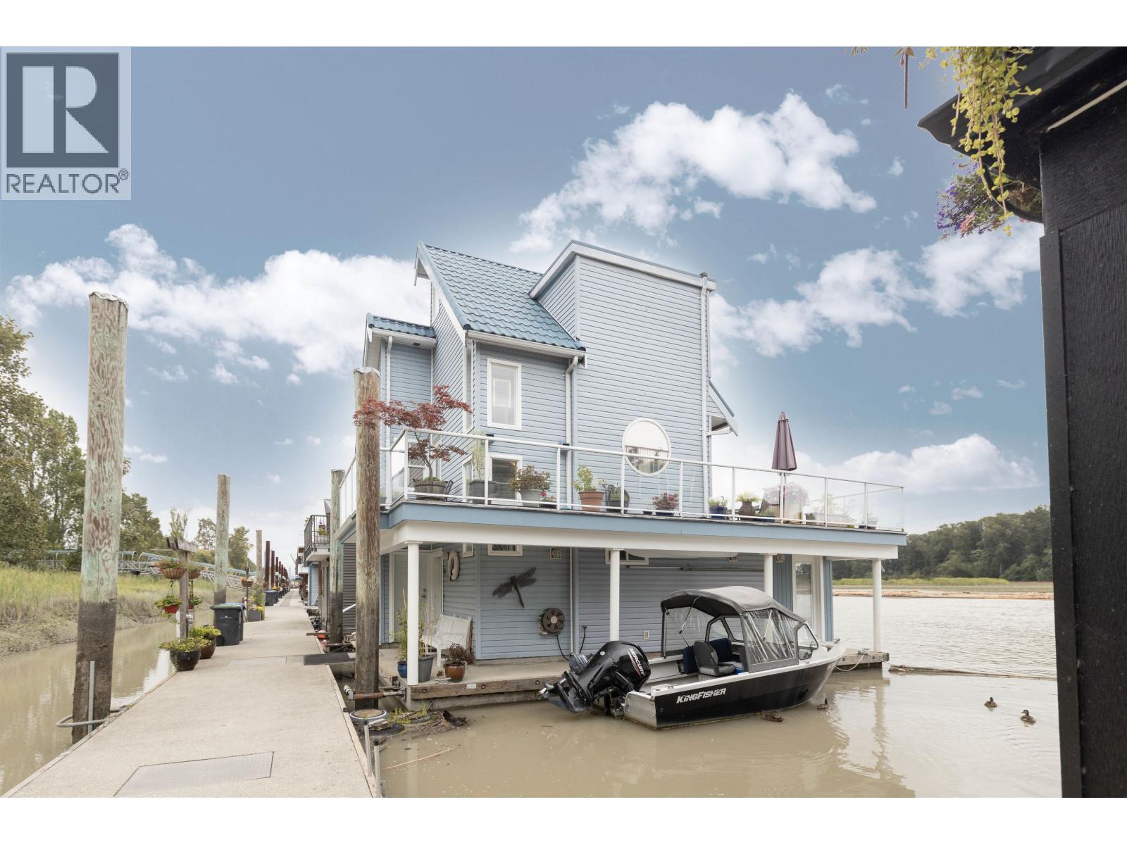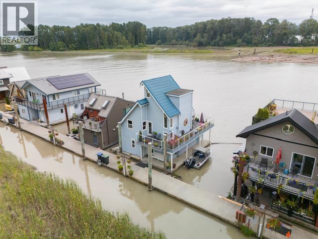 Looking for a WATERFRONT oasis close to the city! This is the home for you. Float Home living in Queensgate Marina a top rated gated strata community. This beautiful 3 level 2 bedroom 1330+sqft home offers tranquil living with an incredible outlook. PLUS a BOAT SLIP next to your home with NO MOORAGE FEES. Low strata fees. Main level has a covered entry, rec room, fabulous bar, bedroom & bathroom. The kitchen, living & dining area upstairs opens onto a huge wrap around deck. Master is on the top level with a private deck & hot tub overlooking the river. Loads of deck space (900+sqft) for entertaining, BBQ's & lounging. Additional 119 sqft laundry/utilities/workshop space. Enjoy your day watching marine wildlife & the river or go to the rec centre, parks, walking, biking, kayaking or take a boat ride. Pets welcome 4 dogs/cats allowed. This home is special! One parking spot and plenty of street parking. (32332365)