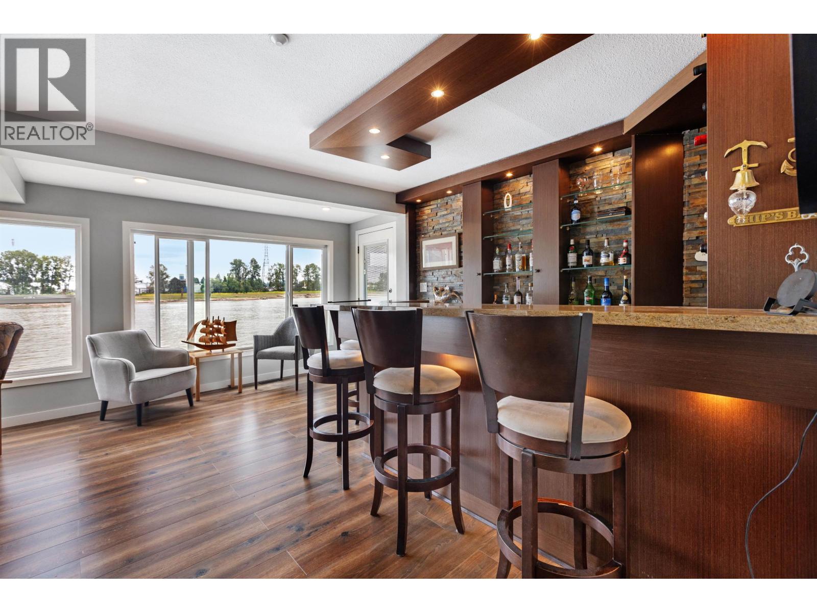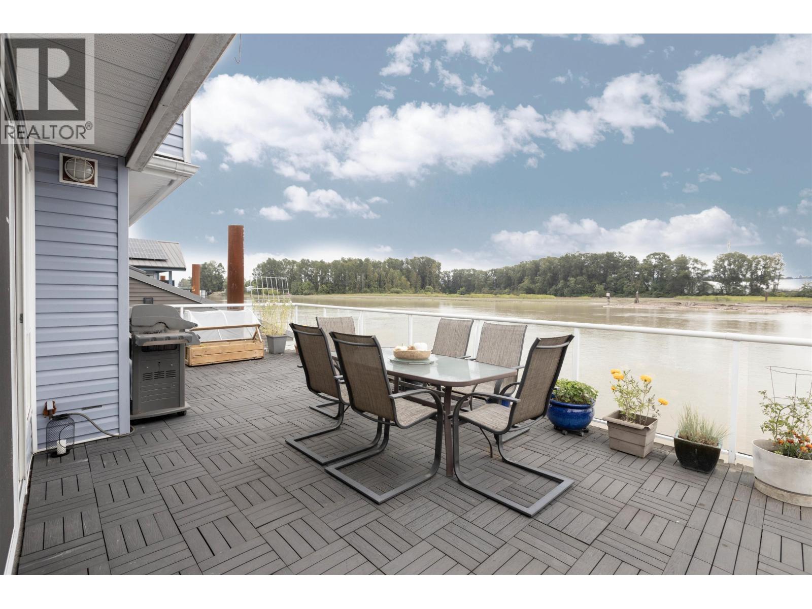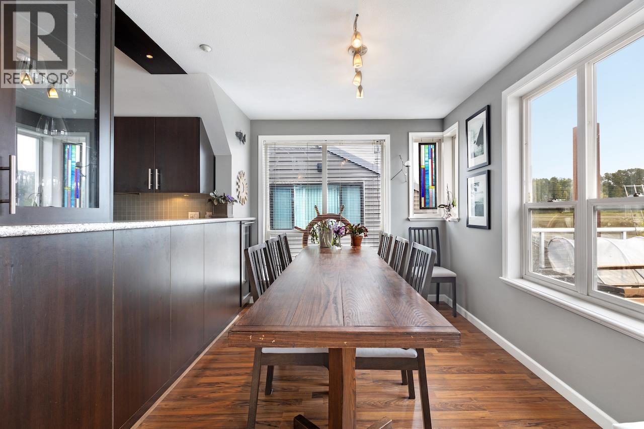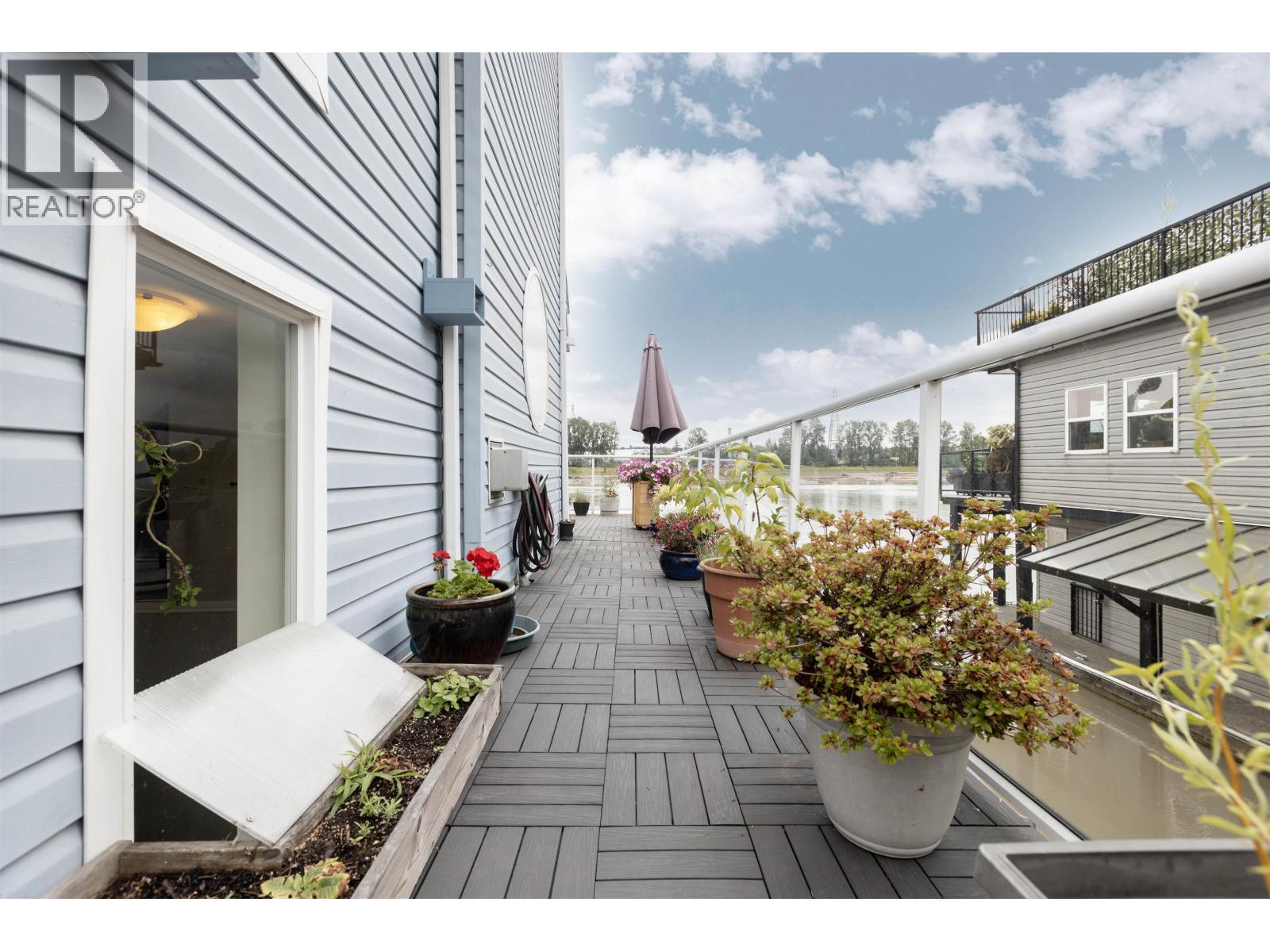 Looking for a WATERFRONT oasis close to the city! This is the home for you. Float Home living in Queensgate Marina a top rated gated strata community. This beautiful 3 level 2 bedroom 1330+sqft home offers tranquil living with an incredible outlook. PLUS a BOAT SLIP next to your home with NO MOORAGE FEES. Low strata fees. Main level has a covered entry, rec room, fabulous bar, bedroom & bathroom. The kitchen, living & dining area upstairs opens onto a huge wrap around deck. Master is on the top level with a private deck & hot tub overlooking the river. Loads of deck space (900+sqft) for entertaining, BBQ's & lounging. Additional 119 sqft laundry/utilities/workshop space. Enjoy your day watching marine wildlife & the river or go to the rec centre, parks, walking, biking, kayaking or take a boat ride. Pets welcome 4 dogs/cats allowed. This home is special! One parking spot and plenty of street parking. (32332365)