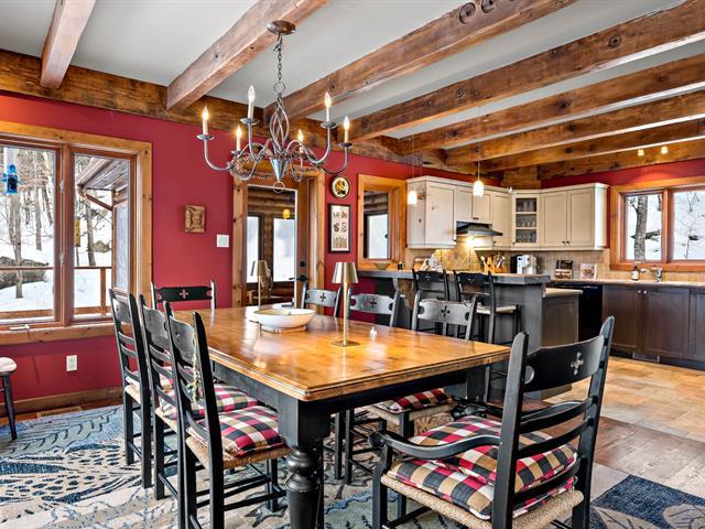 Set on a mountainside, this property offers an authentic Nordic lifestyle. Direct access to Mont-Tremblant National Park trails and notarized access to the Rivière du Diable. Featuring 5 bedrooms, 3 bathrooms, 1 powder room, hot tub and sauna. Enjoy spectacular views of the Mont-Tremblant mountain range including Johannsen, Pagman, The Edge and Timber. Peaceful natural setting, just 1.5 km from the park entrance and 7 km from the North Side base. A rare retreat for outdoor enthusiasts. (44978733)
