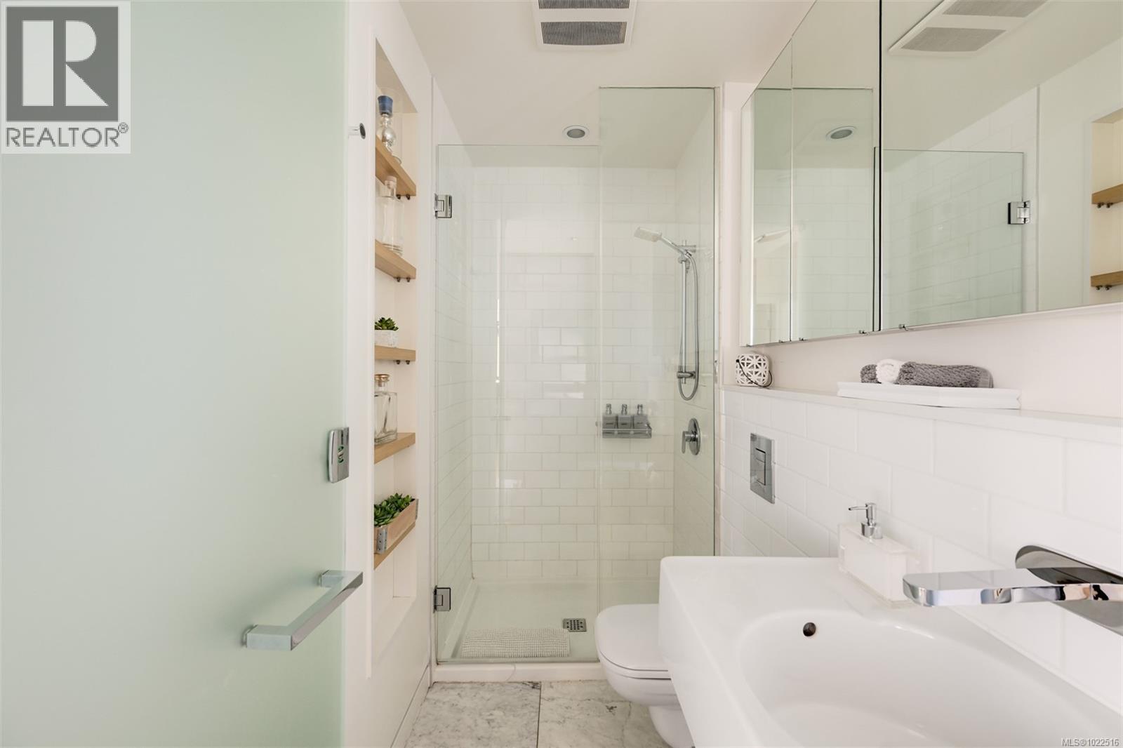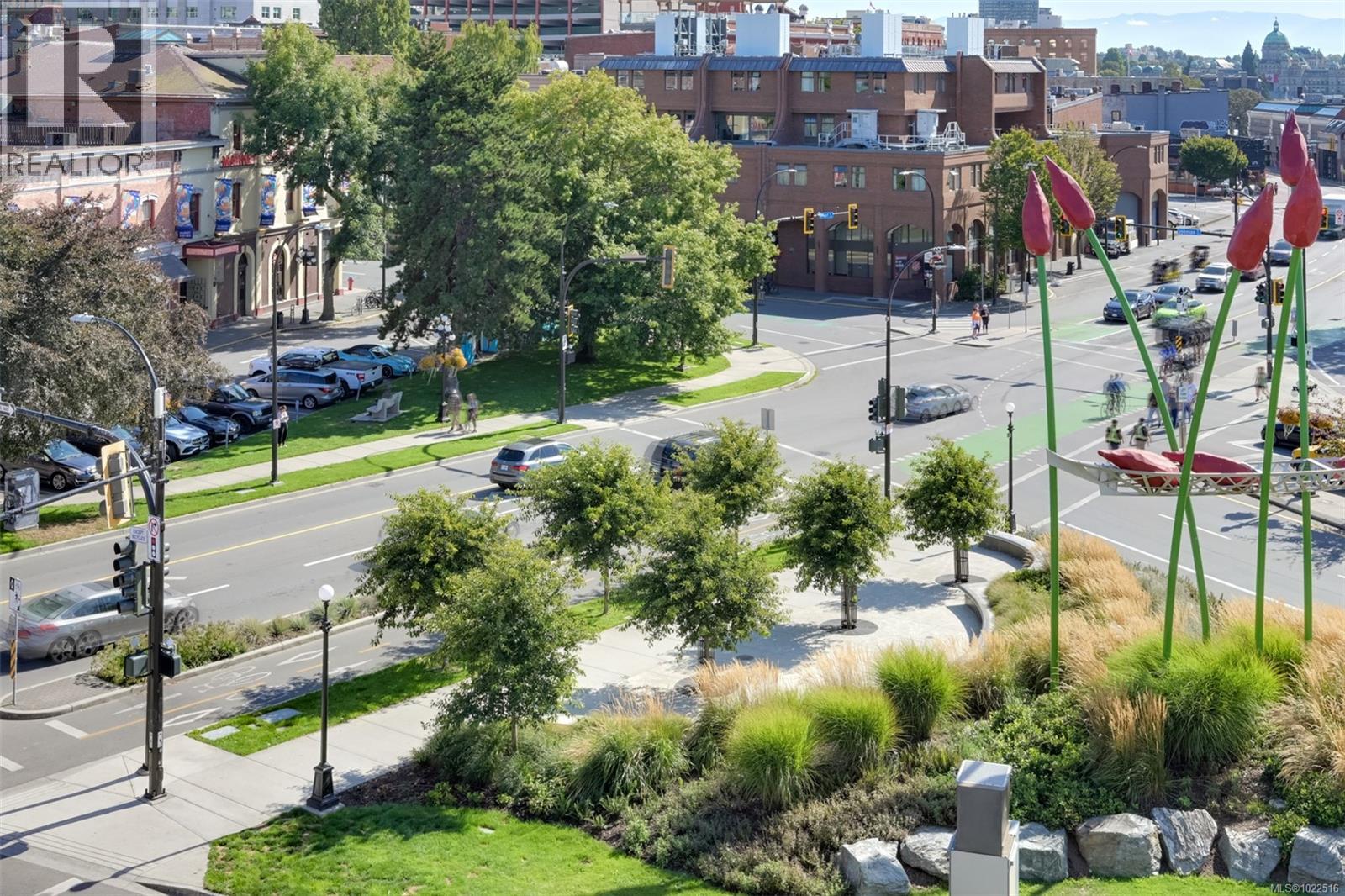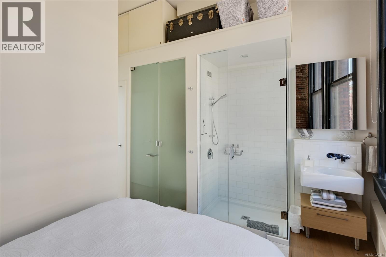 Experience urban living in the iconic Janion building, where heritage charm meets modern style. This bright south-facing 2-bedroom features original exposed brick, oversized windows, and views of the bustling city and Inner Harbour. Designed with efficiency in mind, it offers a built-in wall bed, integrated storage, engineered oak flooring, quartz countertops, a hidden-drawer dishwasher, refrigerator, freezer, and in-suite washer & dryer. Enjoy in-floor heating in the bathroom for added comfort. The Janion boasts premier amenities: rooftop terrace with BBQ and kitchen, fitness centre, conference room, bike/kayak storage, and internal beach access. Located in the heart of Downtown Victoria, steps to shops, dining, and the waterfront. Ideal for students, digital nomads, or snowbirds as it's fully furnished; this New York style condo is your gateway to the best of the city. Location, lifestyle, and iconic views—this is modern living at its finest. (30275261)