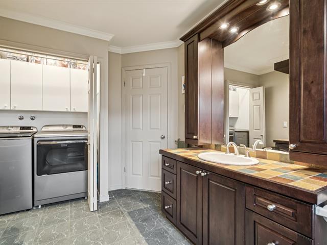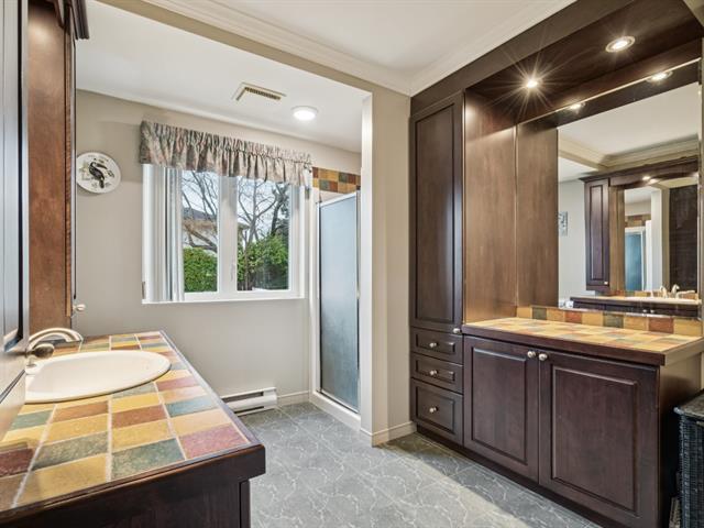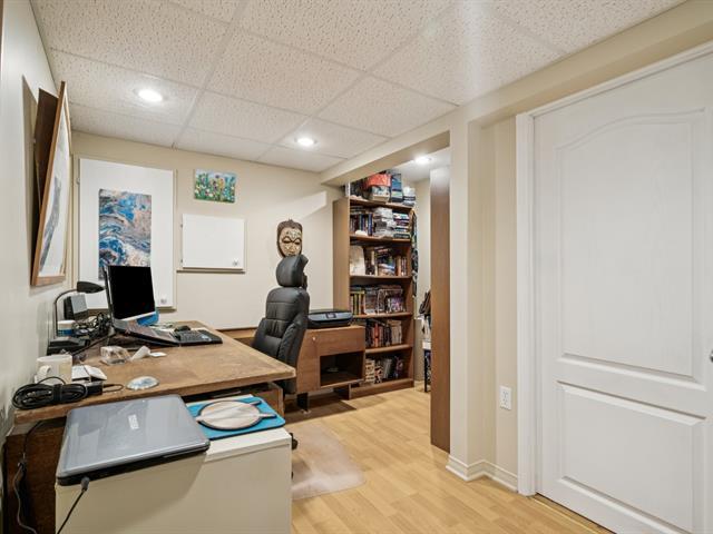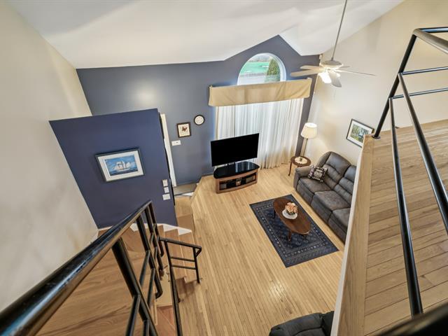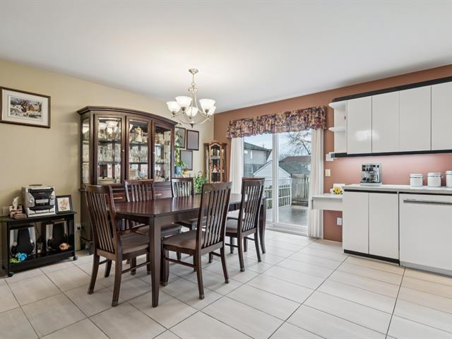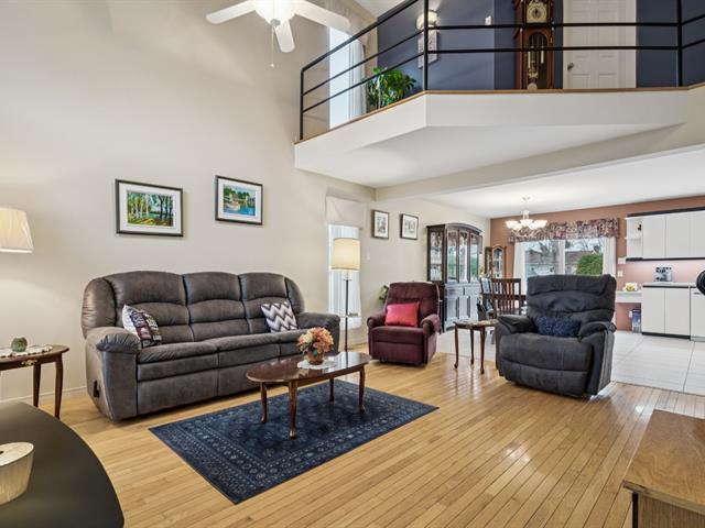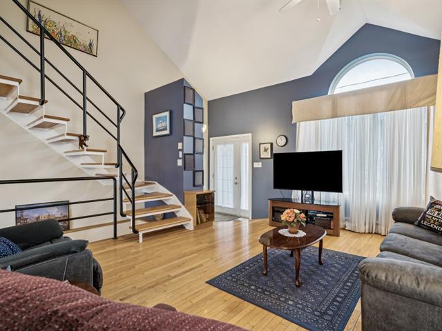 Charming property in a sought-after area near Highway 30, the REM, and all services. It offers a bright living room with cathedral ceiling, a spacious dining area, a kitchen with ample storage, and a main-floor bathroom with laundry. Upstairs are three bedrooms, including a primary with walk-in, and a bath with tub and separate shower. The finished basement includes a family room, extra bedroom, and large storage space. A fenced yard, garage, and two parking spaces complete this well-kept home. (52083267)