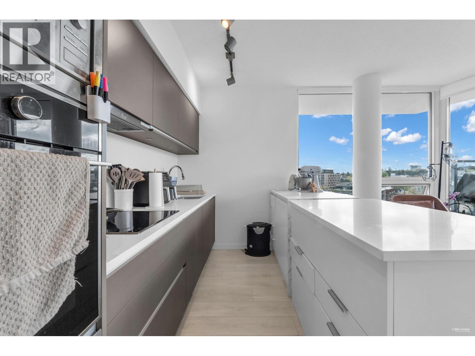 PRICED UNDER ASSESSMENT! Olympic Village area. INCLUDES 2 PARKING and a spacious 269sf patio-ideal for relaxing or entertaining. Best-priced 2 bed + den + sunlit solarium that extends from the bedroom. Not all homes have a solarium perfect as an office or pet space. Bright, efficient layout with modern kitchen, high-end appliances and air conditioning. Only 4 years old with 2-5-10 warranty remaining. Amenities include a gym, rooftop BBQ and garden plots, and social lounge for large gatherings. Prime location: walk to SkyTrain, downtown, future Broadway Line, and St. Paul's. Walk Score 99, Transit 89, Bike 96. Great for end user or investment. Plenty of visitors parking for your friends and family, and bike storage. (32332610)