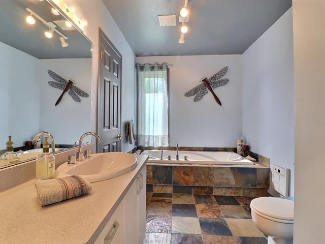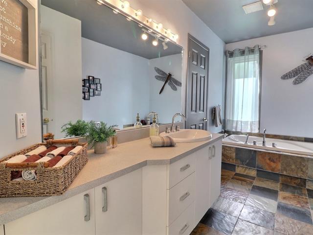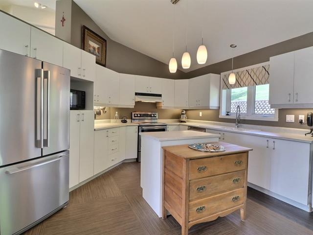Maison unifamiliale multi-paliers, 4 chambres, située sur une rue semi-circulaire et garage avec porte télécommandée. Compte 8 pièces et deux salles de bain. Cour arrière intime, rangement sous la terrasse en bois située près du spa. Planchers et escaliers en bois, marqueterie ou céramique. Thermopompe. Hauts plafonds au rez-de-chaussée. Foyer au gaz propane. Bonne fenestration. Stationnement de pavés unis. Terrain gazonné et haie de cèdres matures. Nombreux commerces, supermarchés, restaurants, pharmacies, CLSC, institutions d'enseignement primaire, secondaire. Économie locale dynamique. (42344988)