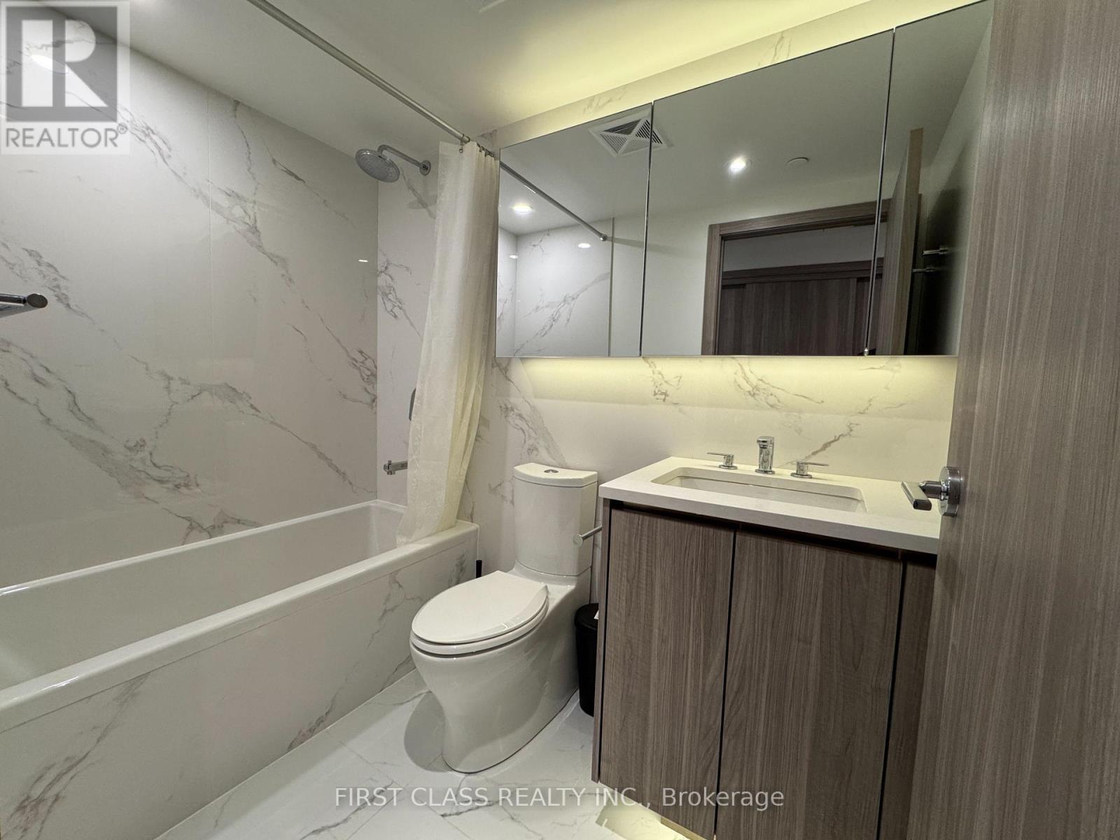 Nestled within the one-year-old luxury building of the Concord Park Place community, this bright 755 sq ft suite, complemented by a 138 sq ft balcony, is flooded with natural light from its desirable south-west exposure. The residence itself is beautifully appointed with 9-ft ceilings, floor-to-ceiling windows, laminate flooring, and premium finishes, including a modern kitchen with ample cabinetry, Quartz countertops, and built-in Miele appliances for the cooking enthusiast, as well as a spa-like bath with large porcelain tiles. Step outside to your private composite wood deck balcony, complete with radiant ceiling heaters and a captivating view of the Toronto skyline. This exclusive lifestyle is further enhanced by access to over 80,000 sq ft of resort-style amenities, including a tennis/basketball court, swimming pool, sauna, formal ballroom, and even a touchless car wash. Its prime location places you steps from a brand-new community centre and park, mere minutes from Bessarion & Leslie subway stations, Go Train, Hwys 401/404, and the shopping at Bayview Village & Fairview Mall. (41951360)