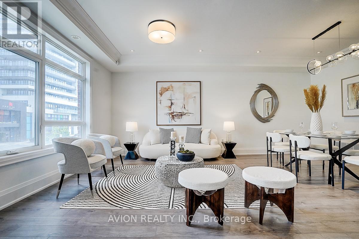 Welcome to this exquisite landmark condominium townhouse nestled in the prestigious enclave at Highway 7 and Bayview Avenue. Thoughtfully designed for both elegance and practicality, this rare 4-bedroom, 5-bathroom residence showcases expansive living across all levels, enhanced by soaring 9-foot ceilings that create an airy, refined ambiance.The gourmet kitchen is a chefs dream, appointed with pristine quartz countertops, a premium cooktop, built-in oven and microwave, and a generous walk-in pantry. A sunlit breakfast area seamlessly flows onto a spacious private terrace idyllic setting for al fresco dining and entertaining.The ground-level suite offers exceptional versatility, perfect as a private guest retreat or in-law accommodation. Downstairs, a fully finished basement extends the living space with a large recreational area, a full bathroom, and a dedicated laundry room.Residents enjoy peace of mind with a comprehensive maintenance package that includes unlimited basic internet, lawn care, driveway snow removal, and upkeep of windows and roofing.Conveniently located with Viva Transit at your doorstep and effortless access to Highways 404 and 407, this home is surrounded by an array of fine dining, banking, and shopping amenities offering the perfect balance of luxury, comfort, and urban accessibility. (41951520)