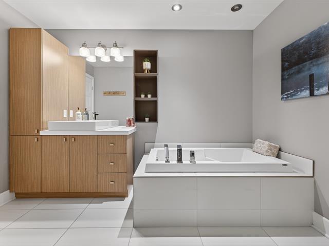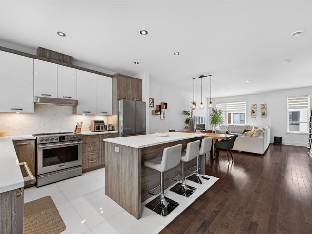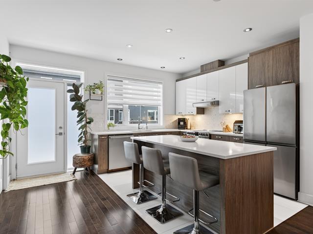 Modern townhouse located in the sought-after Domaine Vert area of Mirabel, offering an exceptional location near the Mirabel Outlets and major highways. This Elite model with multiple construction upgrades features three bedrooms, space for a future bathroom, a stylish kitchen with quartz countertops and a large pantry, hardwood floors, a heat pump, an integrated garage and a low-maintenance backyard, perfect for refined and convenient living. (42431167)