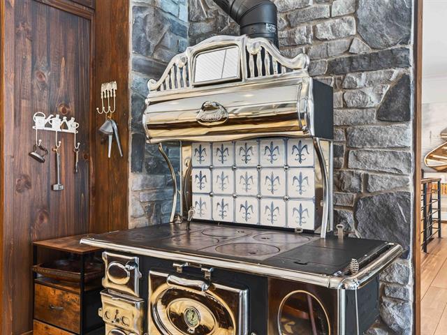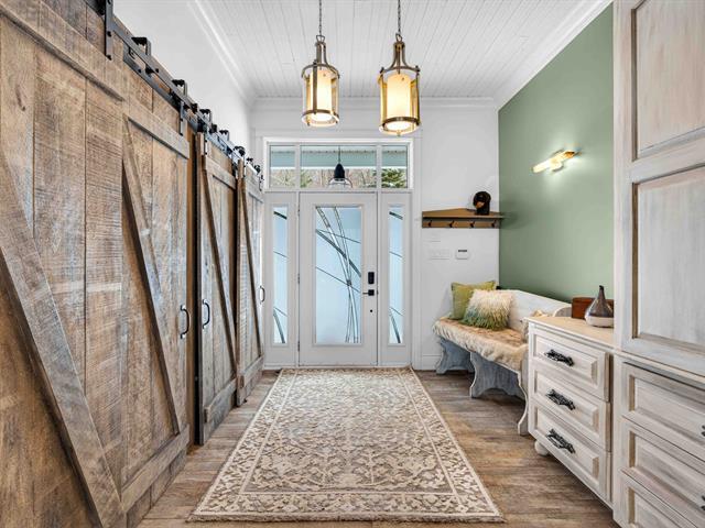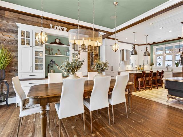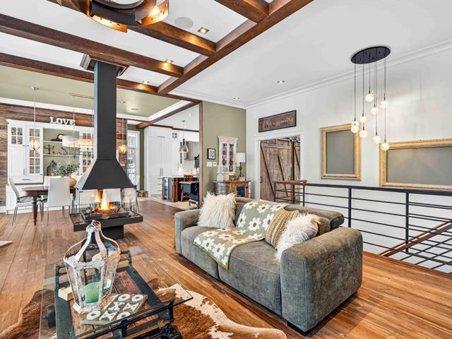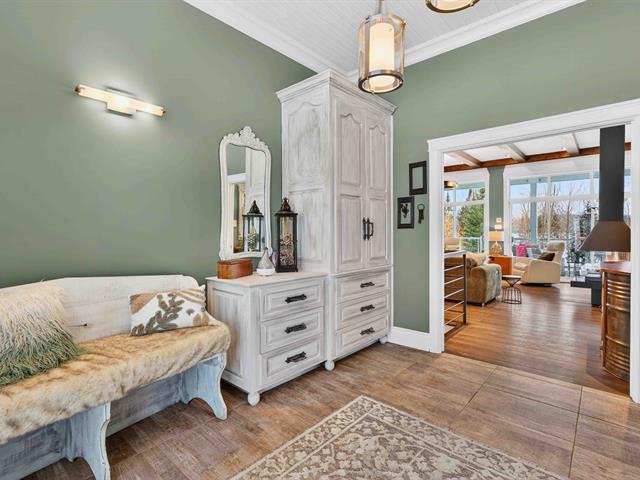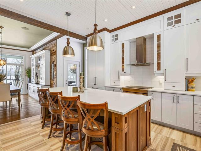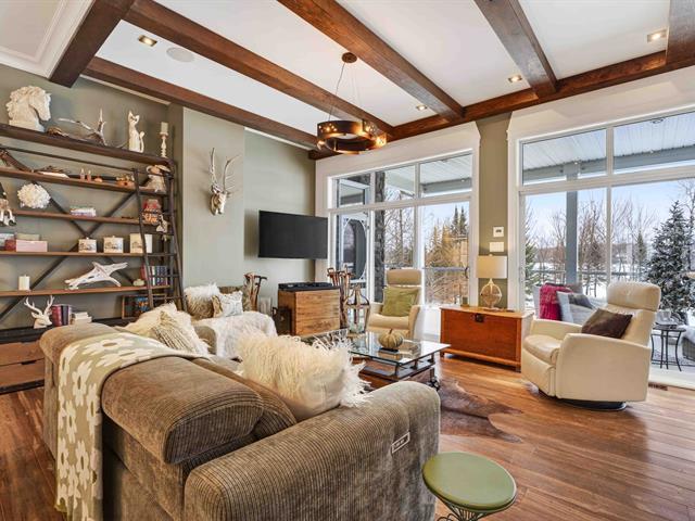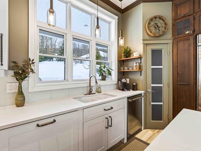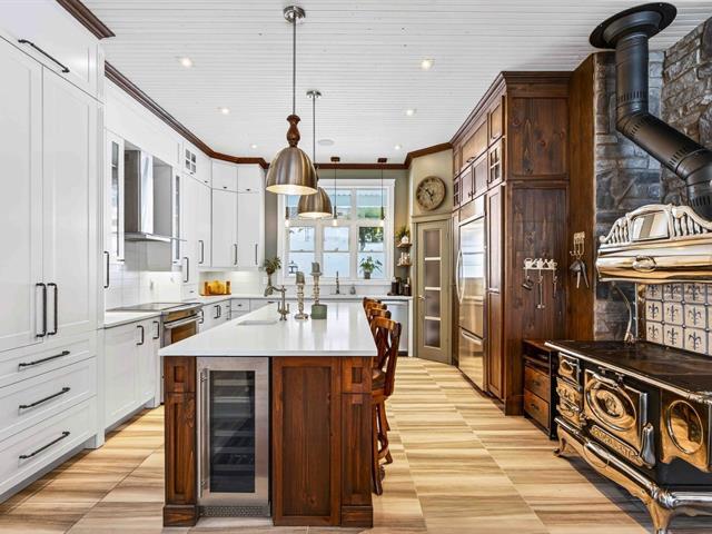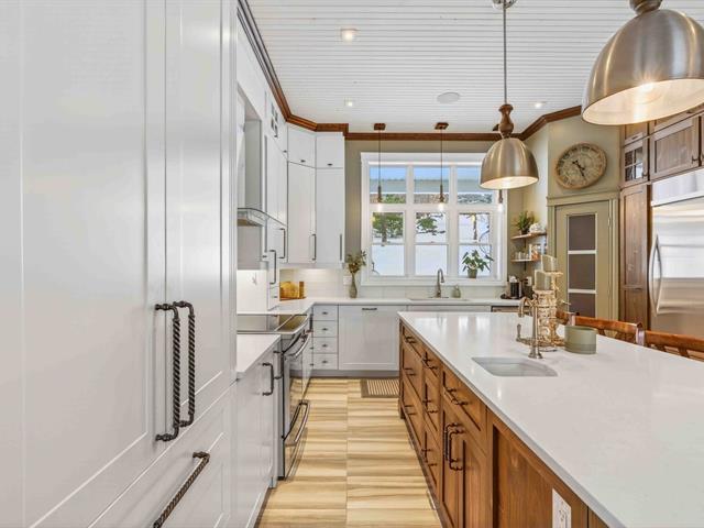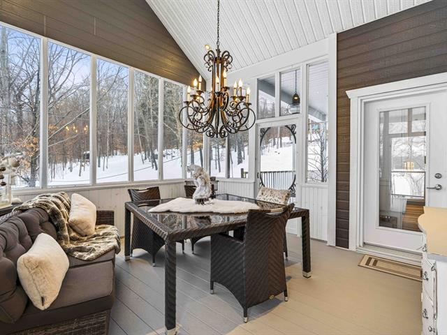 Prestige waterfront property on Lac Cuillèrier, with direct access to Lac du Poisson Blanc and over 100 km of navigable waterways connecting multiple lakes. Impressive 360 ft of waterfront (526 ft including adjacent lot with private boat launch). Expansive terrace and balcony offering breathtaking views. Remarkable bungalow with walk-out garden level. Open-concept, warm and spacious living area featuring 5 bedrooms plus office, laundry room, 2 full bathrooms and a powder room. Propane fireplace, wood stove, integrated generator, oversized double garage with golf simulator. Over 82,000 sq. ft. landscaped lot with veranda, spa and sauna. (46047771)