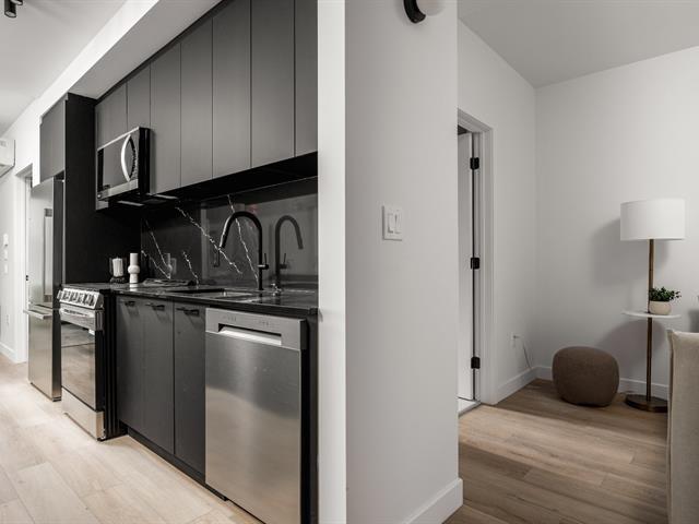 Nuns' Island Modern Condo -- All-Inclusive Comfort Experience modern living in the heart of Nuns' Island with this stylish all-inclusive condo. Featuring 1- to 2-bedroom layouts with spacious offices, it offers the perfect blend of comfort, style, and convenience. Enjoy stunning views of the St. Lawrence River & Champlain Bridge and high-end finishes including quartz countertops, under-mount sinks, and full-height cabinetry. All-inclusive amenities: appliances, high-speed internet, curtains, lighting, electricity, and heating. Prime location: steps from parks, shops, and the REM. Effortless modern condo living awaits! (54700515)
