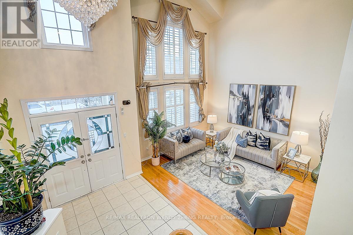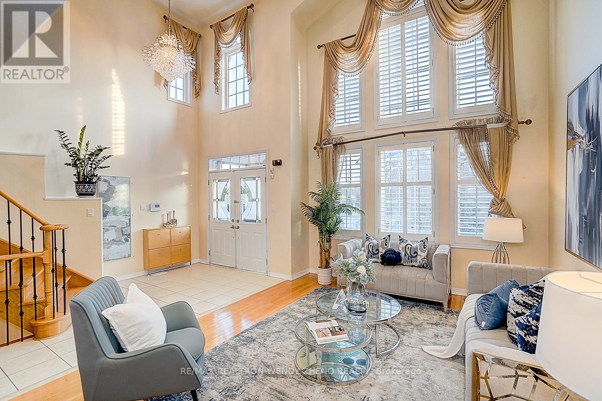An exceptional residence located in the prestigious Cachet community of Markham, offering 4 spacious bedrooms plus a dedicated office on the main floor, solid stone and brick construction with approximately 3,613 sq ft above grade, and a professionally finished basement. The grand foyer and family room feature soaring 18-foot ceilings with abundant natural light, complemented by 9-foot ceilings on the main level, an oak staircase, and hardwood flooring throughout. Most windows newly replaced. Beautifully landscaped front and back yards provide a private backyard oasis with no neighbours behind. Situated in a highly sought-after school district including Lincoln Alexander PS (#110/3052), St. Augustine CHS (#1/747), and Bayview SS with IB program, with a Montessori private school directly across Woodbine Avenue. Conveniently located at the doorstep of Bus Route 24 with direct transit access to Fairview Mall, and minutes to Hwy 404, parks, King's Square shopping Centre, Plaza, Banks, restaurants TNT and all essential amenities-this is a rare offering and a must-see home. (41951893)