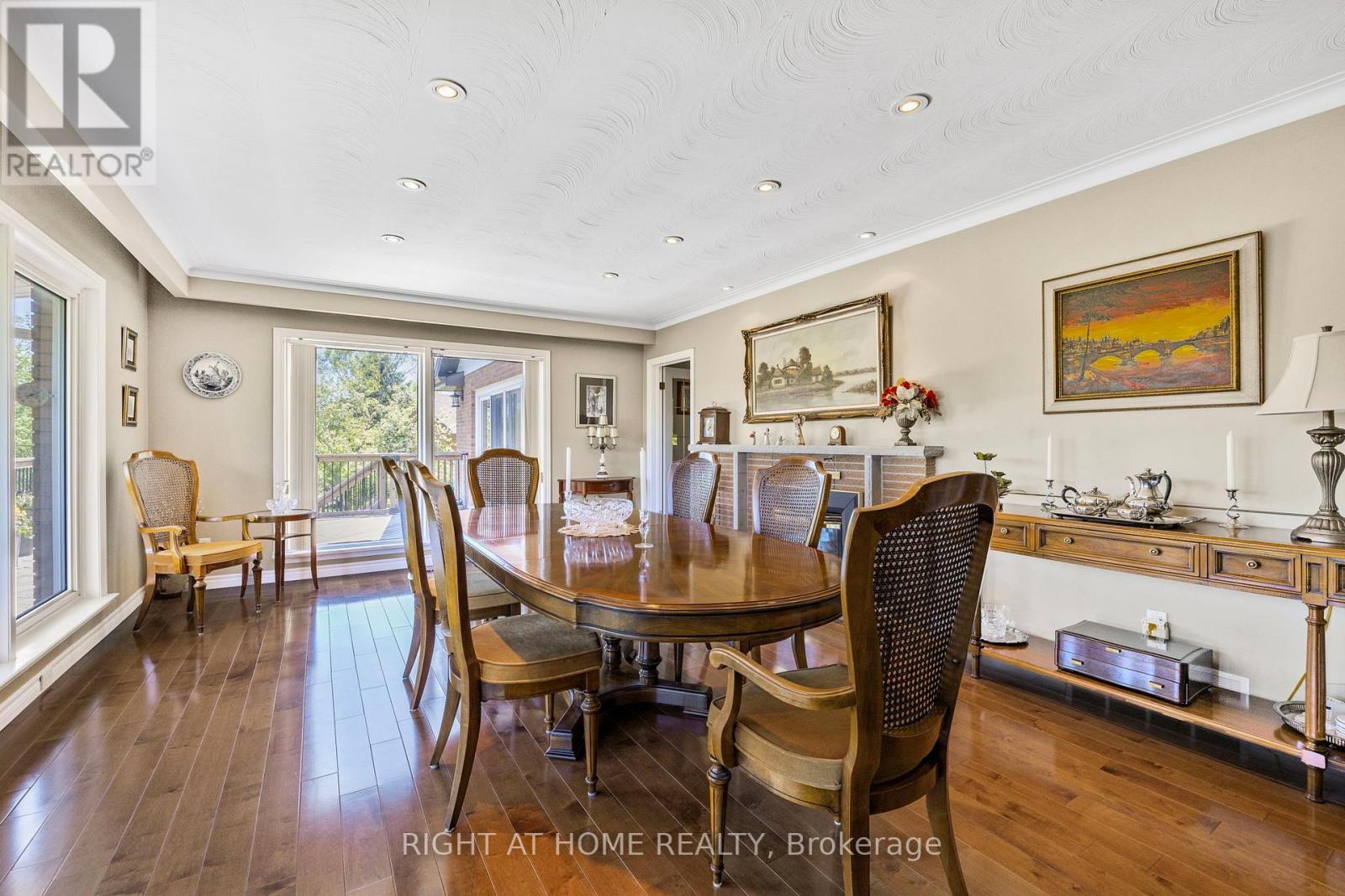 Prestigious ravine estate bungalow on one of Brampton's most private and sought-after quiet streets. This rarely offered and beautifully updated home presents exceptional value, offering over 3,450 sq. ft. of finished living space, a walkout basement, multiple entrances, and outstanding multigenerational living potential.Set on an impressive 120 x 181.97 ft. ravine lot (approx. 0.5 acres), the property backs directly onto Etobicoke Creek and protected conservation lands, providing privacy, forest views, and year-round natural beauty with no neighbours behind. The bright main level features cathedral ceilings, expansive windows, gleaming hardwood floors, a formal dining room, and an updated kitchen equipped with a Bosch gas stove and dishwasher. The dining area overlooks the ravine and walks out to a large elevated deck. Three generous bedrooms and a 4-piece bathroom complete this level, offering convenient no-stair access to all primary living spaces.The finished walkout lower level adds versatility, featuring a spacious rec room with gas fireplace, second kitchen, two additional bedrooms or flex rooms, a 3-piece bathroom, laundry, two walkouts, and a separate entrance via the garage-ideal for extended family, guests, or an in-law suite.Over $420,000+ in permitted additions and upgrades include new brick exterior, roof, furnace, A/C, five gas fireplaces, deck, hardwood flooring, kitchen improvements, landscaping, and a fully finished basement. Additional highlights include a new double driveway (2024) accommodating 6+ vehicles, oversized 2-car garage with workshop space and chainless openers, front-yard irrigation, central vacuum, and BBQ gas line.Located on a quiet cul-de-sac with direct access to the Etobicoke Creek Trail, and within walking distance to schools, transit, grocery stores, and amenities. A rare opportunity to enjoy estate-sized ravine living in the city, offering privacy, space, and flexibility that cannot be replicated in typical subdivision homes.. (41952128)