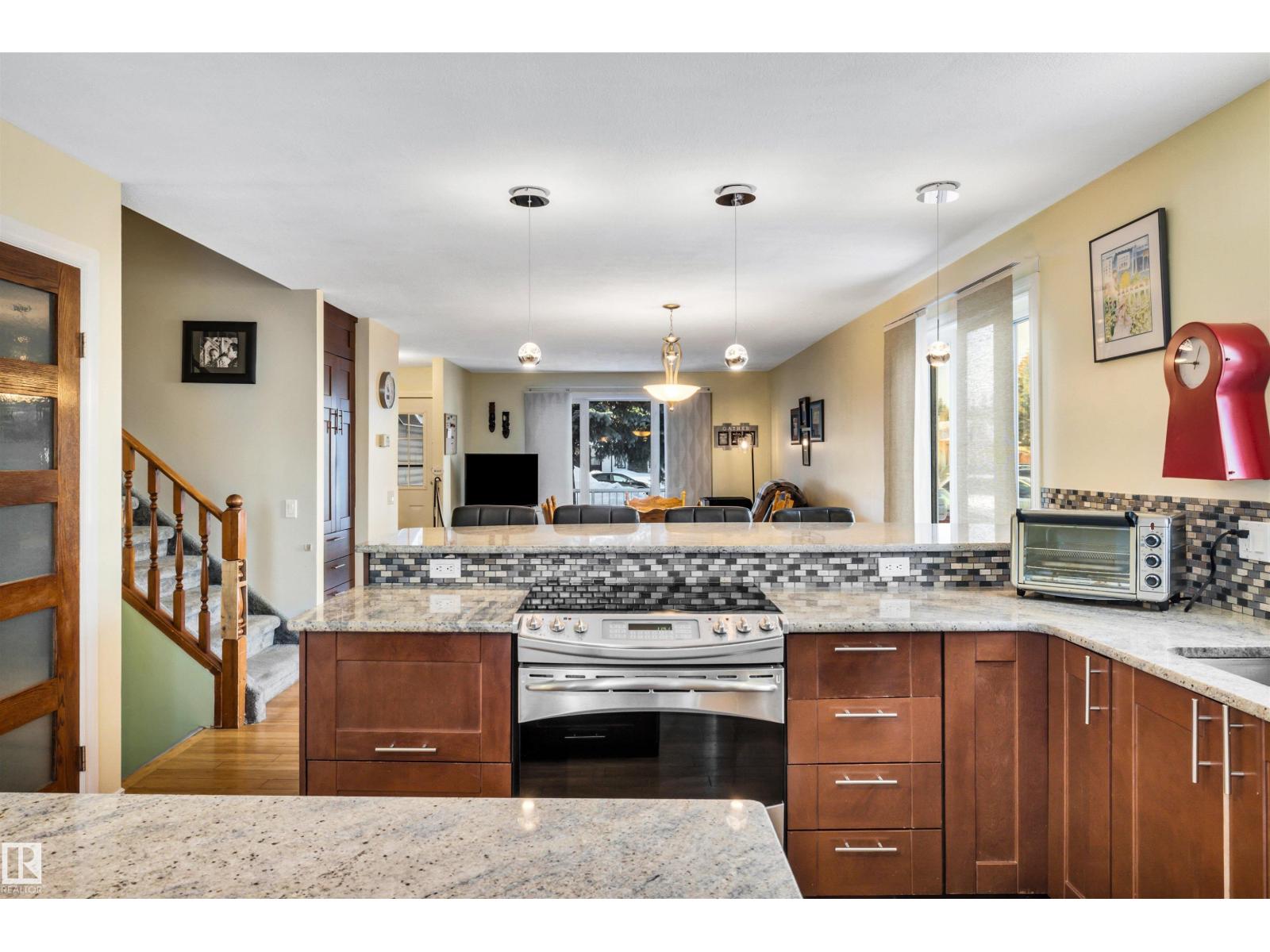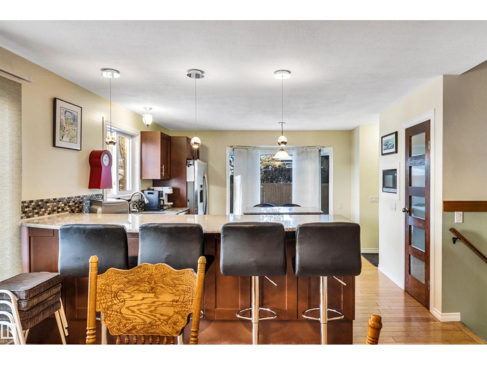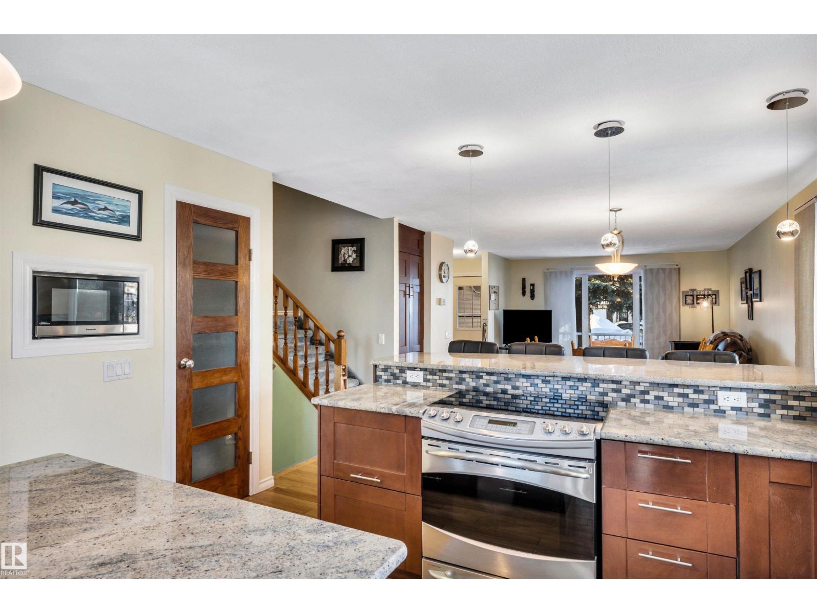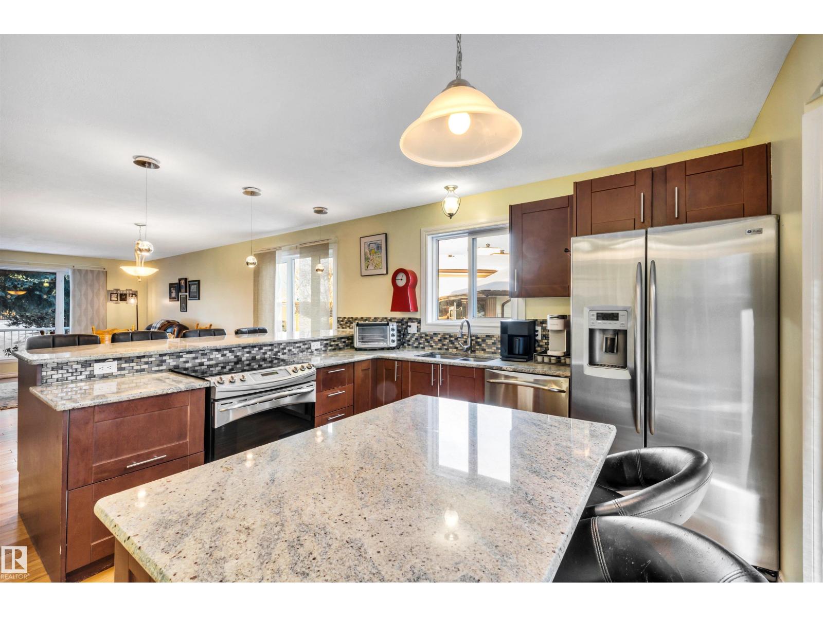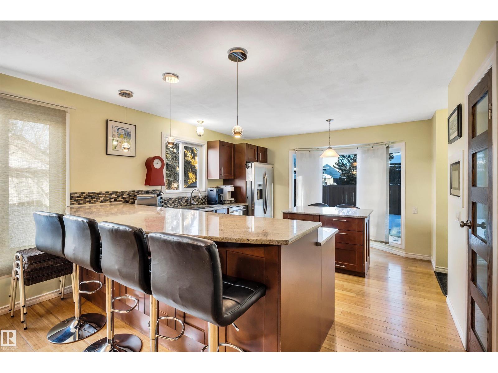 Family Home with 2400sqft of living space! Nestled in a private keyhole crescent this 4 level split boasts 5 Bedrooms, 3 FULL bathrooms and renovations throughout! The open concept main floor boasts a stunning kitchen with warm dark cabinets, GRANITE countertops, an extended eating bar with seating for 4 and island providing plenty of room for preparing family meals, open to the dining area and living room, hardwood flows throughout this level, upper offers 3 very good sized bedrooms, primary with FULL 4 piece bath, 3rd level with additional 2 bedrooms, family room, bathroom and laundry, 4th level nicely developed with den (was used as a bedroom, window not egress) & ANOTHER family room! Updates include full kitchen renovation, 3 updated bathrooms (flooring/granite) siding, vinyl windows, insulation, hot water tank and upper floor laminate. Central A/C, central Vac and water softener complete the package. Close to all major amenities, connecting routes and transit. Shows great! (33723807)