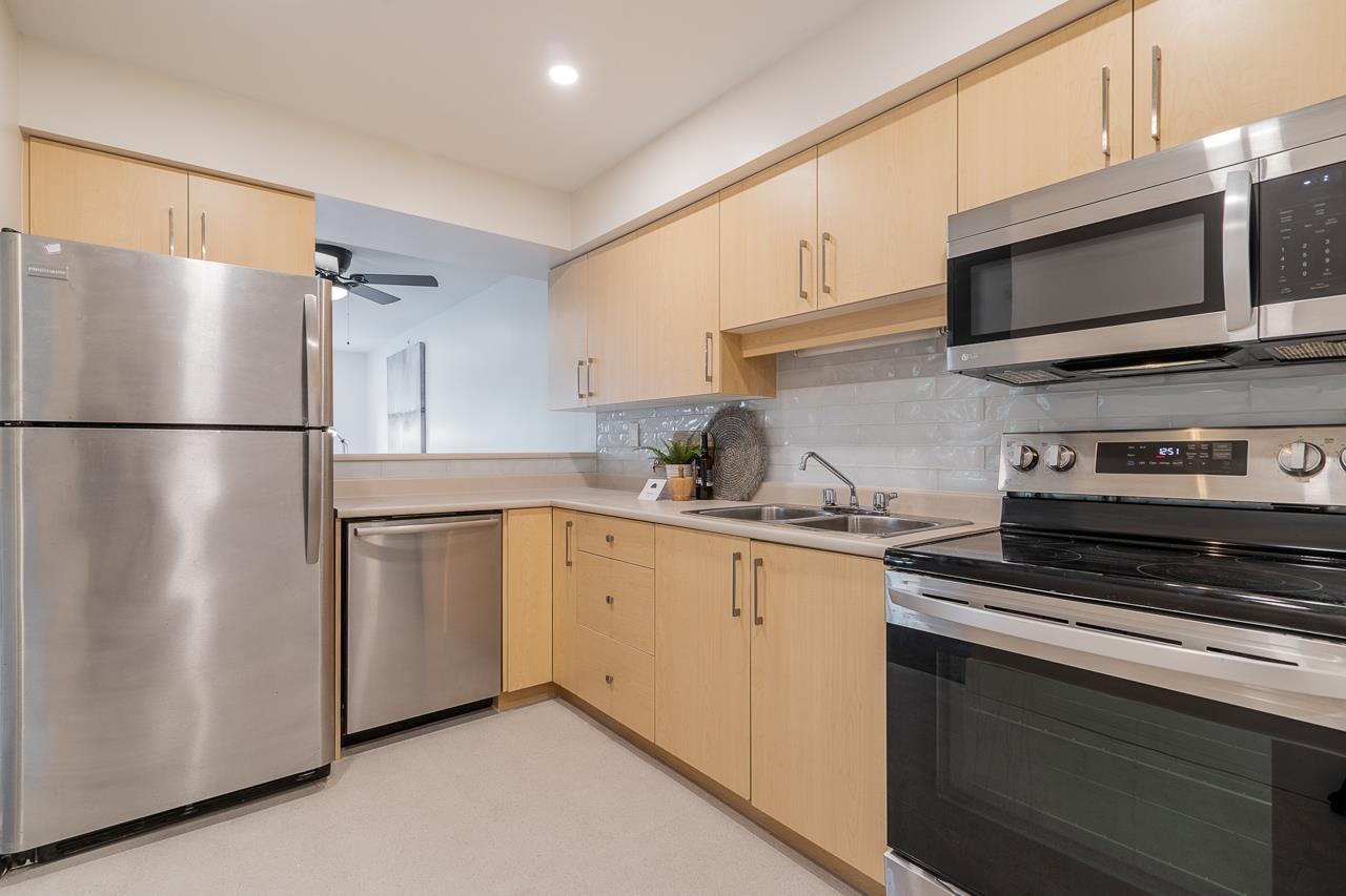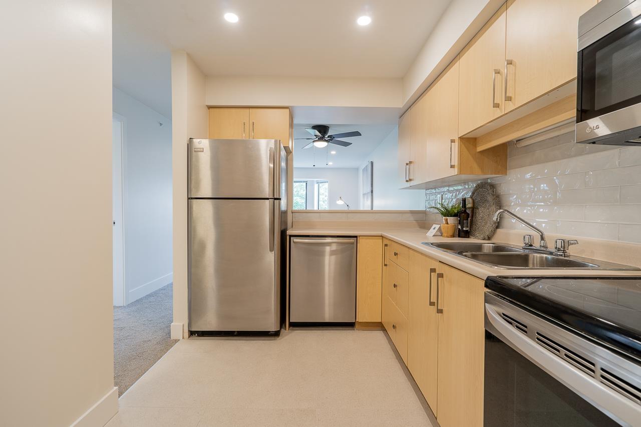Welcome to this one of a kind top-floor condo with numerous upgrades. Step inside to discover a modern and inviting atmosphere, featuring new carpet, fresh paint, and a completely renovated bathroom. The bathroom boasts a tiled shower, modern fixtures, a light-up LED mirror, and heated floors. The kitchen has been upgraded with modern appliances, a new backsplash, and tile flooring. The upgraded wall features throughout add a touch of elegance to the space. Step outside to a spacious covered balcony, perfect for relaxing or entertaining. Conveniently located near shopping, schools, and transit, this condo offers easy accessibility. It also includes tow parking spots, a storage unit. Don't miss the opportunity to own this stylish and convenient condo with desirable upgrades. (32332401)