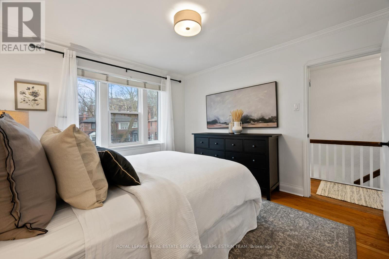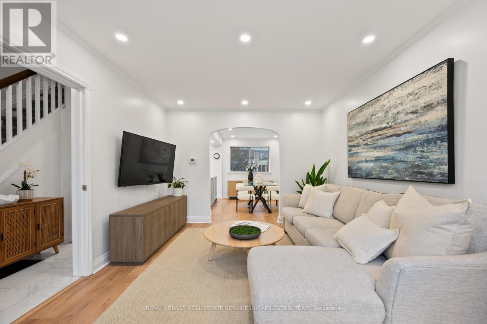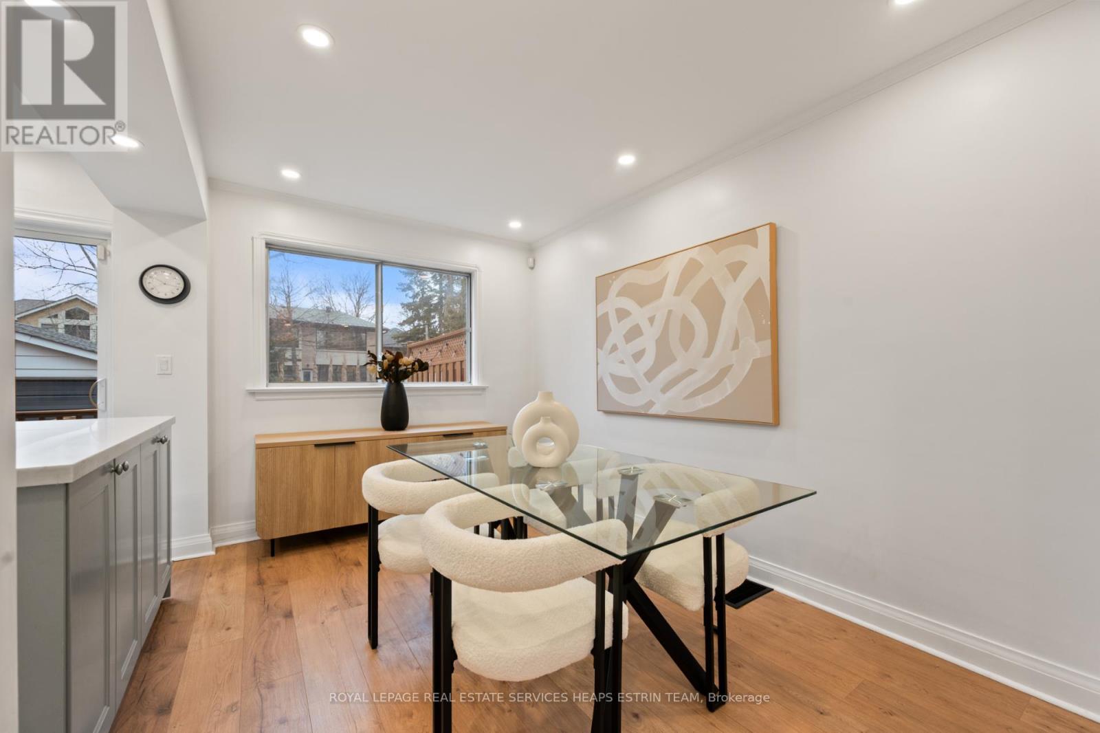 This beautifully renovated, turnkey 3-bedroom, 2-bathroom semi-detached home is ideally situated on a quiet, family-friendly crescent in the heart of North Leaside. Known for its peaceful streets, strong sense of community, and excellent schools, the neighbourhood offers an exceptional setting for everyday living. The bright, open-concept main floor is anchored by an oversized south-facing window and features wide-plank floors, pot lighting, and comfortable living and dining areas, perfectly suited to both relaxed family living and casual entertaining. The renovated kitchen is inviting yet highly functional, offering crisp white cabinetry, quartz countertops, stainless steel appliances, a large centre island, and a walk-out to the deep backyard for seamless indoor-outdoor living. Upstairs, three well-proportioned bedrooms provide flexibility for growing families, guests, or a dedicated home office, complemented by an updated four-piece bathroom. The finished lower level adds valuable living space and includes ample storage, pot lighting, a renovated three-piece bathroom with a glass shower, and a laundry area with sink. Set on a wide 28.5-foot lot, the property features an extra-wide mutual drive leading to a full-size detached garage, along with a gas line on the deck for a BBQ. A wonderful opportunity to enjoy a move-in-ready home on an exceptionally quiet street in one of Leaside's most desirable neighbourhoods-just steps to parks, top-rated schools (Northlea Elementary/Middle School and Leaside High School), shops, and transit. (41952673)
