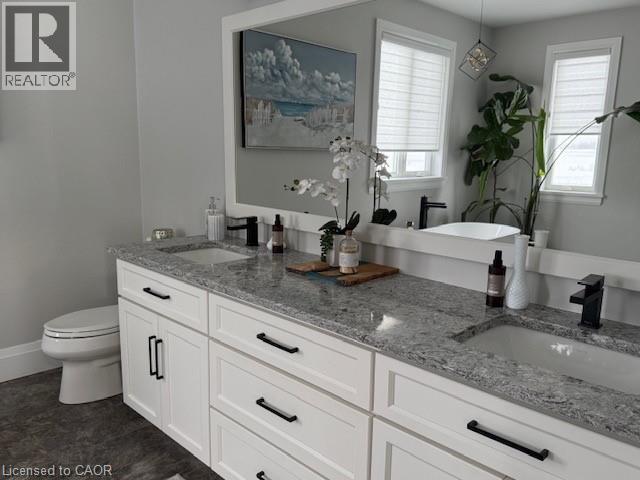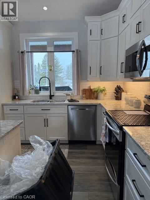 Welcome to this stunning 5-year-old custom-built home perfectly situated on an expansive half-acre lot in the small, quiet town of Holyrood just minutes from Kincardine and its beautiful sandy beach. Located with a quick commute to Bruce Power the areas main employer, this property offers the ideal balance of peaceful living and everyday convenience. The home’s exterior impresses with WOW.... with timber accents, stone detailing, and thoughtfully placed exterior lighting, creating exceptional inviting curb appeal. An oversized two-car garage provides ample space for vehicles, storage, and hobbies not to mention the 6 exterior parking spaces for toy storage like RV's, sleds or Boat storage!. Inside this custom beauty, no expense has been spared. Soaring cathedral ceilings, quartz countertops, a stone fireplace and carpet free throughout the home this bright open-concept layout set the stage for modern living. The well-designed modern kitchen with stainless appliances, seamlessly flows into the main living space, and is a dream for both cooking and entertaining, The spacious primary bedroom retreat features a large walk-in closet and a massive, light-filled ensuite, complete with a walkout to the covered back deck. Finally, find on this level a further two bedrooms that are both bright and roomy and placed away from the primary suite adding to additional privacy for all. The fully finished lower level offers incredible versatility, featuring an additional bedroom (ideal for guests, a home office, or gym) and an expansive family/entertaining spaces ready to enjoy. Outside, the huge lot with no direct rear neighbours offers privacy and endless potential for future development—whether you envision gardens, play areas, or outdoor entertaining spaces or perhaps that shed to house all your summer/winter toys!. This exceptional property combines quality craftsmanship, thoughtful design, and an unbeatable location—an opportunity not to be missed. (70049302)