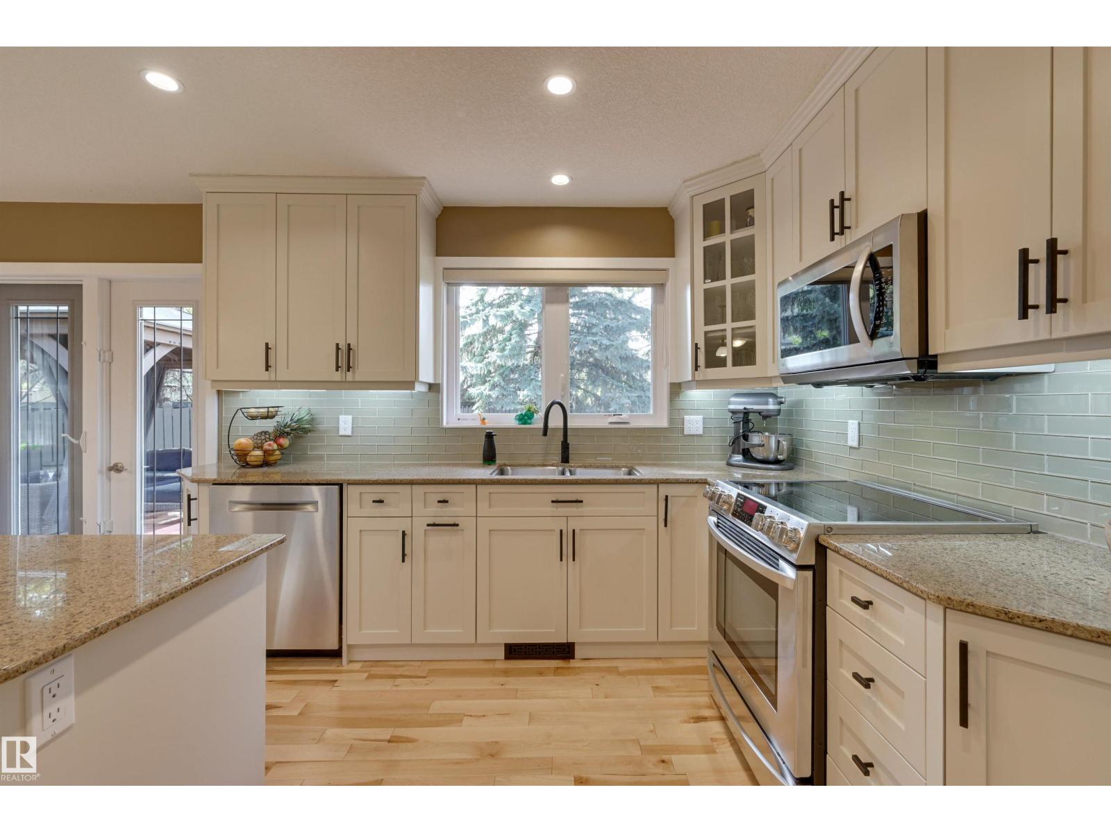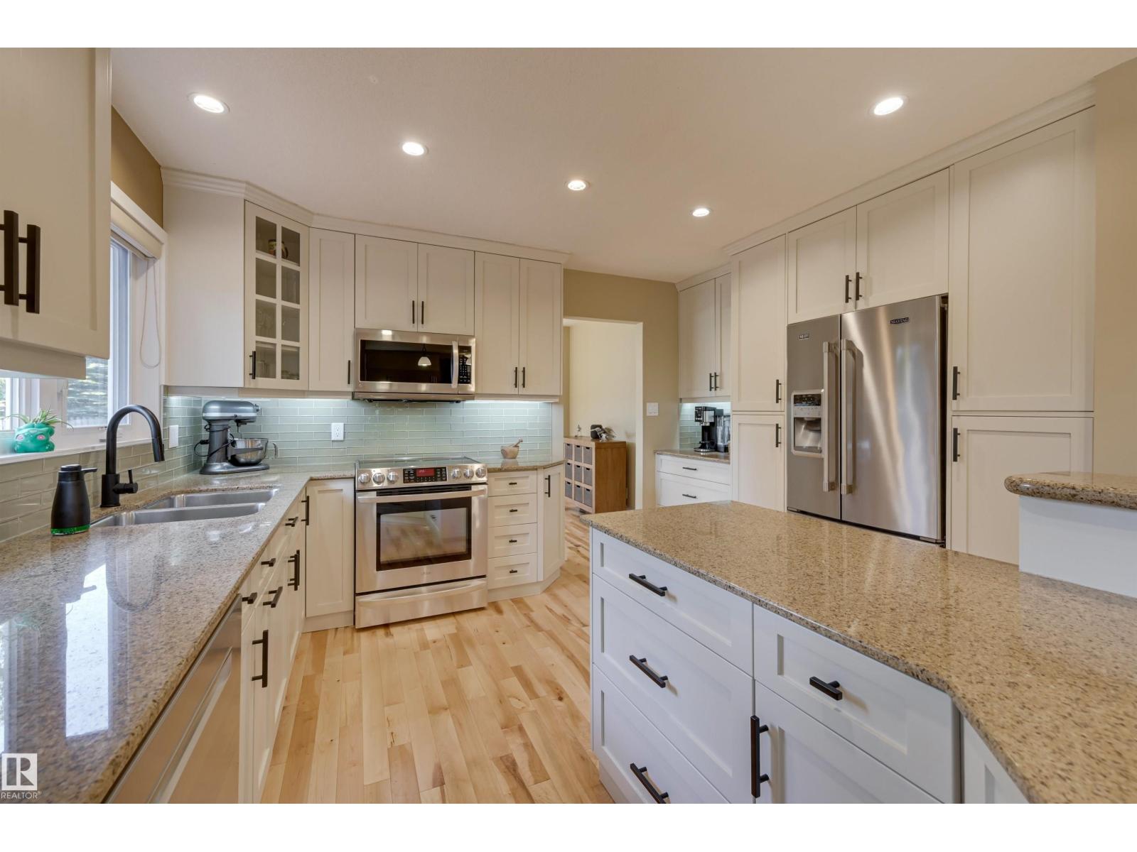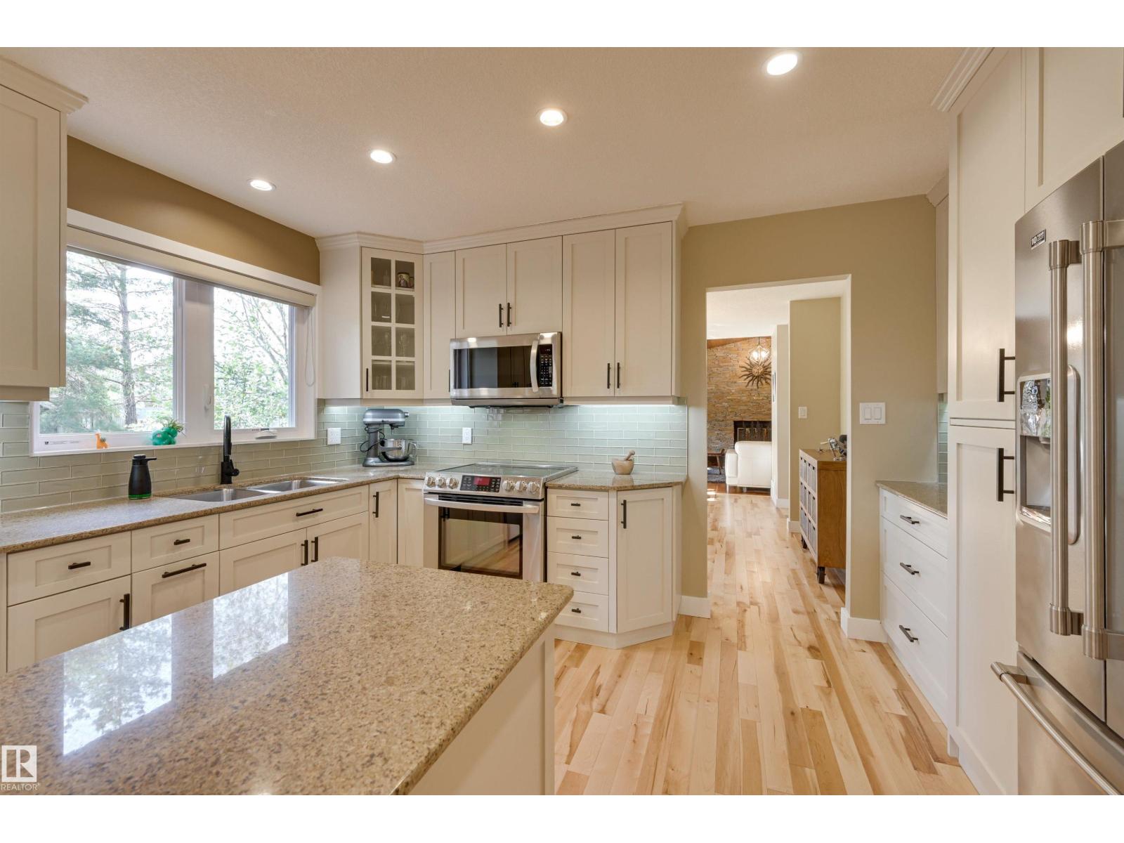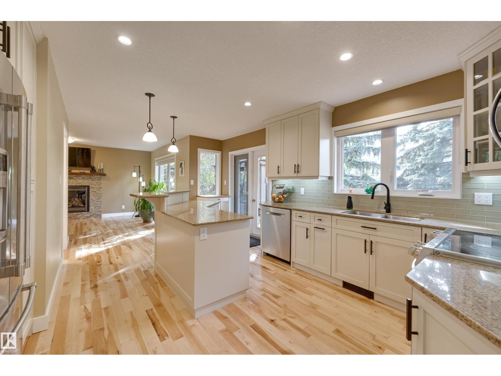 West Coast style on a MASSIVE LOT in a quiet cul-de-sac! This BEAUTIFULLY UGDRADED 2-storey offers 4+1 bedrooms, 3.5 baths, and a layout designed for both comfort and entertaining. The main level features a welcoming living room with stone-faced fireplace and WOOD CLAD VAULTED CEILING flowing into a spacious dining area w/views of the deck and yard. The modern renovated kitchen includes a walk-through pantry to the laundry/mudroom, while the cozy family room with gas fireplace adds the perfect gathering space. Upstairs, the EXPANSIVE PRIMARY SUITE boasts a spa-inspired ensuite and PRIVATE BALCONY, complemented by three additional bedrooms, a fully renovated bath, and a bright office. Fully renovated basement offers a large recreation space, gym/bedroom, and full bathroom, extending the home’s versatility. Outdoors, the massive yard features a LARGE DECK, GAZEBO, and SPORT COURT for relaxation and play. A double attached garage, A/C, ETHERNET, and prime cul-de-sac location complete this exceptional home. (33724381)