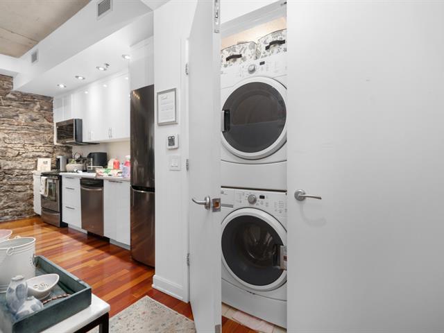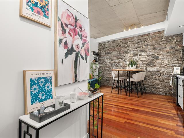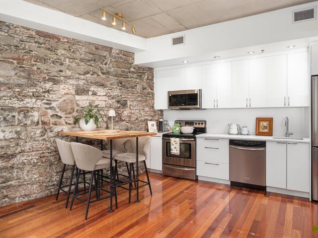 Perfectly located in the heart of Old Montreal within walking distance of the Port and all it's attraction, well-maintained condo is situated on the 4th floor of a historical renovated building with a rooftop deck. Open concept layout condo offers, hardwood floors, central heating and a/c. (49730540)
