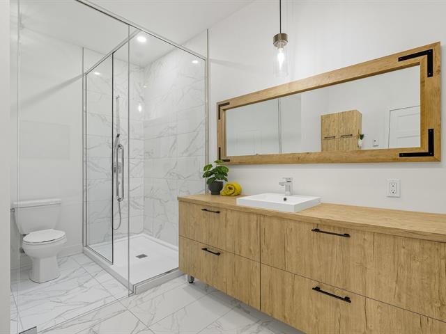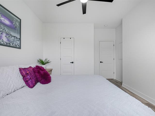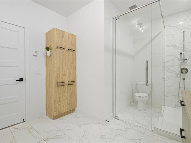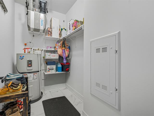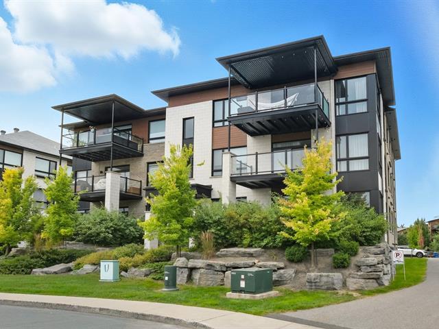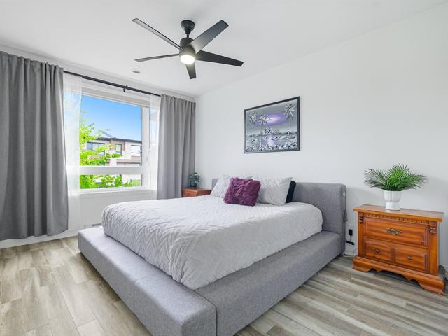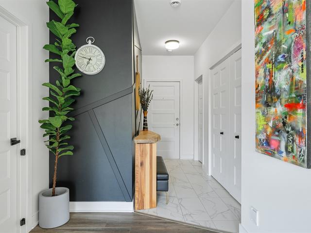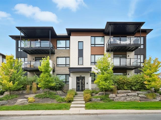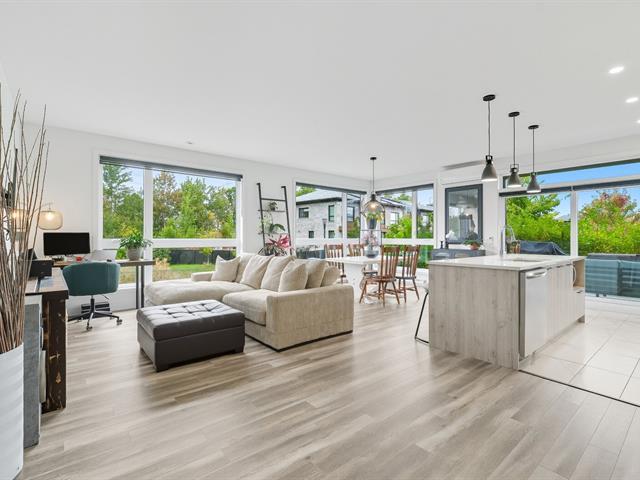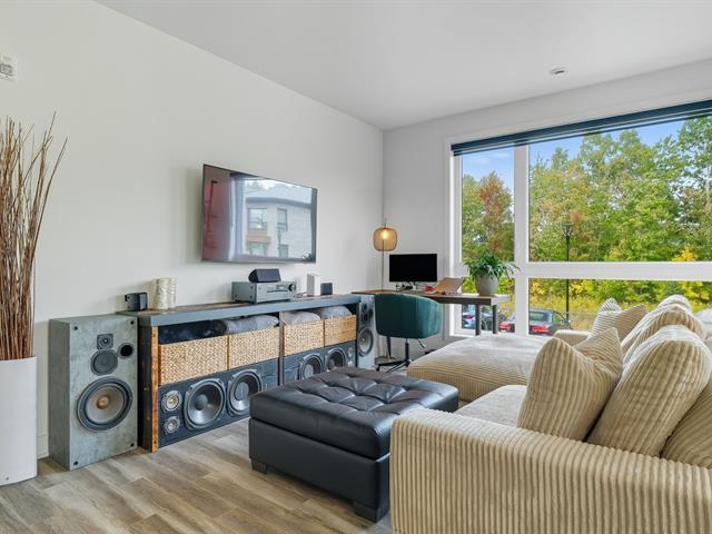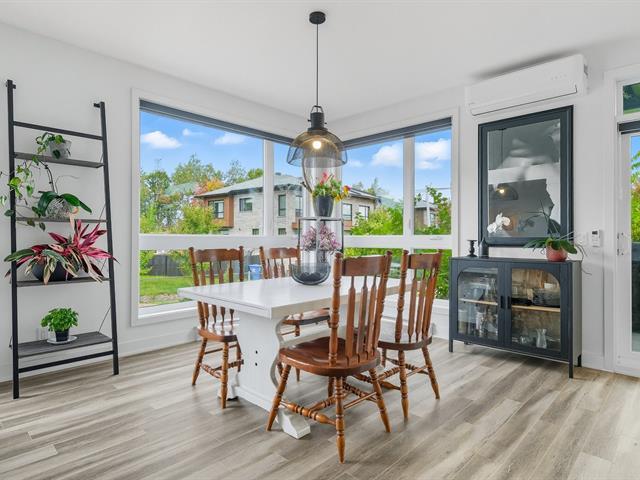 Modern and bright condo in Faubourg Cousineau! Open living area with large central island, full-height cabinets, and contemporary ceramic backsplash. Oversized windows provide beautiful natural light and a view of the greenery, with no side neighbors. Two good-sized bedrooms, bathroom with ceramic shower and separate bathtub, enclosed laundry room, intimate balcony, and parking. All in a strategic location, close to schools, shops, public transportation, and major highways. (50870752)