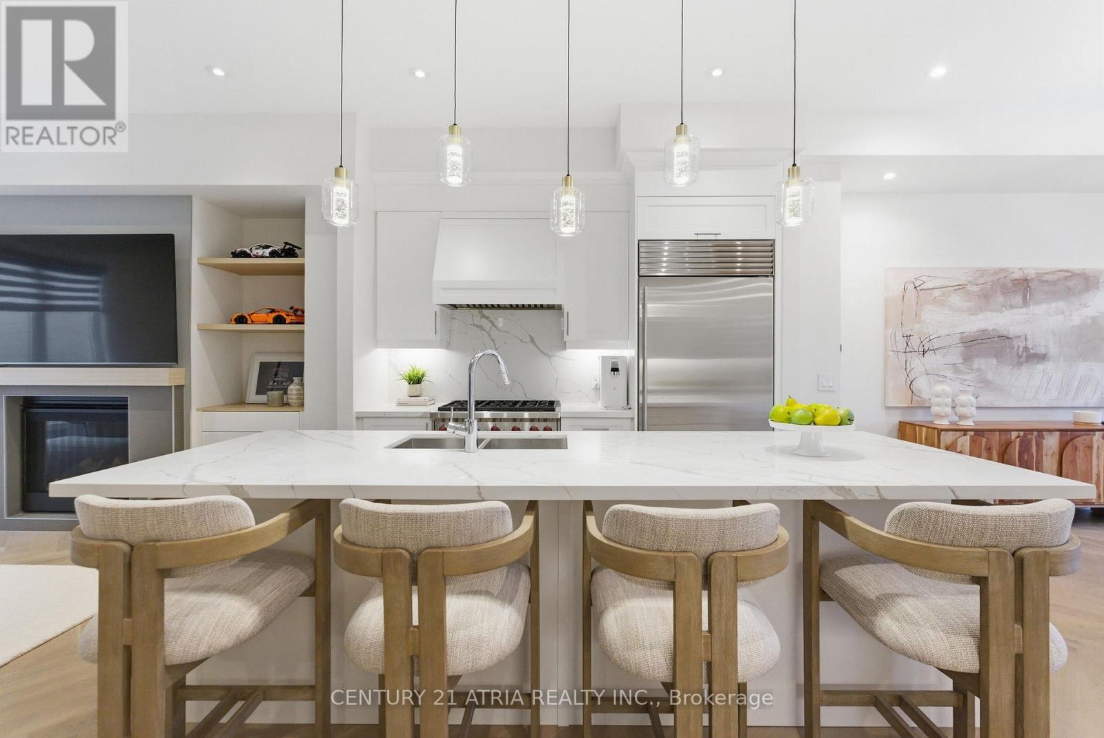 Welcome to this beautifully crafted, 2-year-new executive townhouse with coach house in the heart of Observatory Hill. Offering approx. 3,460 sq.ft. in the main home plus a fully upgraded 580 sq.ft. coach house, this residence is designed for comfortable, modern living. Sun-filled open-concept spaces, soaring ceiling heights (9' ground, 10' main, 9' upper), and elegant herringbone floors create a bright and inviting atmosphere. The chef's kitchen features premium Sub-Zero and Wolf appliances, quartz countertops, custom cabinetry, and a walk-in pantry-perfect for hosting and everyday life. The living area is anchored by a custom fireplace accent wall and built-in shelving, ideal for relaxed evenings at home. Five spacious bedrooms and spa-inspired bathrooms with heated floors offer comfort for the whole family. Thoughtful upgrades, a double car garage with EV charging, and two driveway spaces add everyday convenience. The coach house provides exceptional flexibility for extended family, guests, or home office use. A turnkey home in one of Richmond Hill's most desirable neighbourhoods, close to parks, schools, transit, and amenities. (41953771)