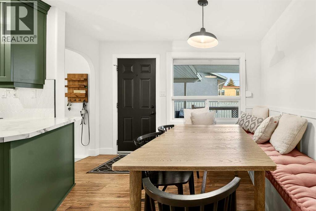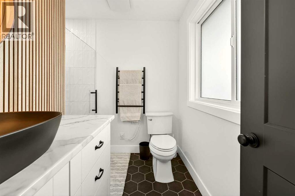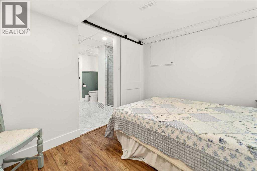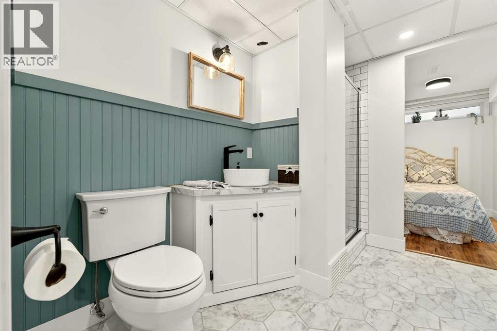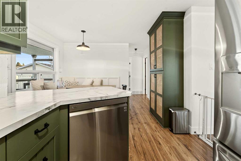 This fully renovated bungalow is a rare blend of high-design finishes and thoughtful energy-efficient upgrades, resulting in a home that feels both elevated and intentionally built for long-term comfort. From the outside in, nearly every detail has been updated, including solar panels, vinyl windows, and thickened exterior walls with added insulation—improving efficiency without sacrificing style.The main living space feels bright and welcoming, anchored by warm flooring, clean white walls, and large windows that flood the room with natural light. The aesthetic throughout the home is modern but approachable, with carefully selected textures and finishes that create visual interest without feeling overdone.The kitchen is the showpiece. Custom green cabinetry adds depth and character, paired beautifully with striking countertops, a crisp tile backsplash, and under-mount cabinet lighting that gives the space a soft, ambient glow in the evenings. Matte black hardware and fixtures tie everything together, creating a cohesive, designer look that feels both current and timeless.The primary bedroom is spacious and calming, finished with warm tones, new wall sconces, and a walk-in closet. The ensuite is nothing short of stunning, featuring a curbless tile shower with a glass door, modern fixtures, and layered textures that give the space a boutique-hotel feel. Just next door, the four-piece main bathroom continues the design theme with a new tile floor, tiled shower surround, and clean, contemporary finishes. A second bedroom on this level has also been fully updated and works perfectly as a guest room, nursery, or home office.Downstairs, the fully developed basement adds substantial living space with plush carpet in the family room, creating a cozy area for movie nights or relaxing evenings. Additional storage has been thoughtfully incorporated, along with a dedicated laundry area. Two more generously sized bedrooms are located on this level, along with another upda ted bathroom that maintains the same modern design language as the rest of the home.Outside, the double detached garage provides excellent parking and storage, rounding out a property that has been comprehensively renovated with both form and function in mind. There is also a carport at the front of the home for additional parking. This is a home where design, efficiency, and everyday livability come together seamlessly—offering a truly move-in-ready experience with standout style. (31533971)