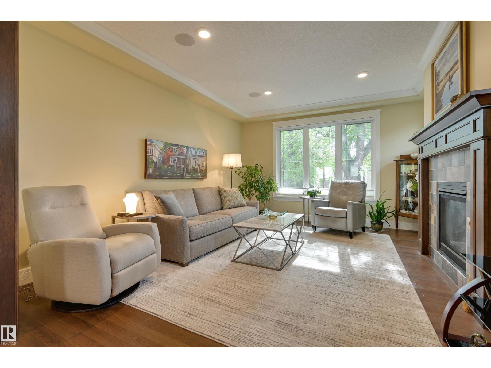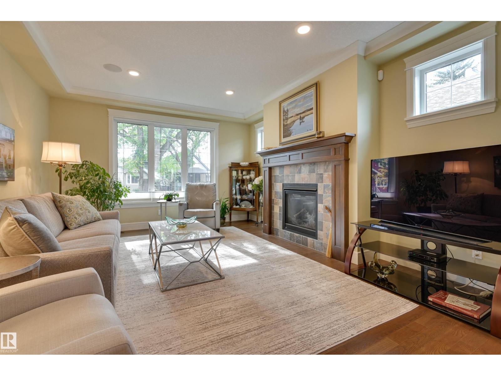 Welcome to this CUSTOM BUILT home! With aprox. 2,700 sq. ft.total living space, this property offers 3 bedrooms and 2.5 baths. The open floor plan is filled with natural light, featuring a modern kitchen,flowing effortlessly into the diningroom with views to the garden and living room enhanced by a cozy fireplace. Primary suite boasts a spa-inspired ensuite with STEAM SHOWER, bonus room w/ access to south balcony. Downstairs, find 2 additional bedrooms,full bath & family room with wet bar—perfect for entertaining.Outdoors, enjoy a private yard enhanced with a bubbler water feature and perennial gardens and patios.A true highlight is the OVERSIZED HEATED DOUBLE GARAGE WITH LARGE LOFT,ideal for workshop, studio or man cave. Energy efficiency shines with SOLAR PANELS.Set on a 4,300+ sq. ft. lot and located minutes from the University of Alberta, Whyte Avenue, downtown, and the river valley, this home combines style, function, and convenience. A true Queen Alexandra gem—move-in ready and designed to impress! (33724695)