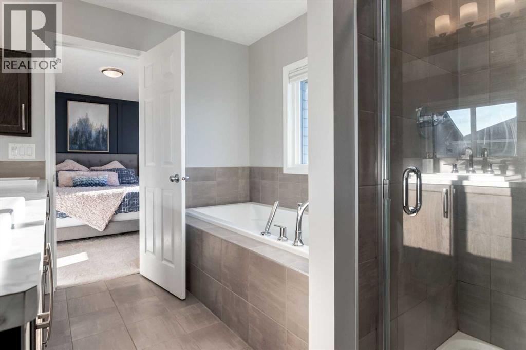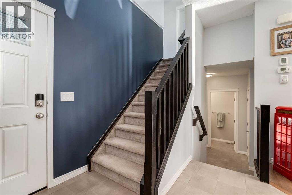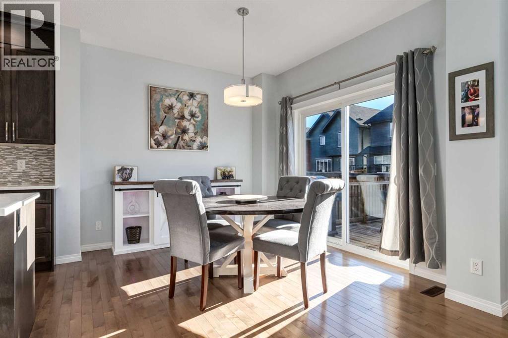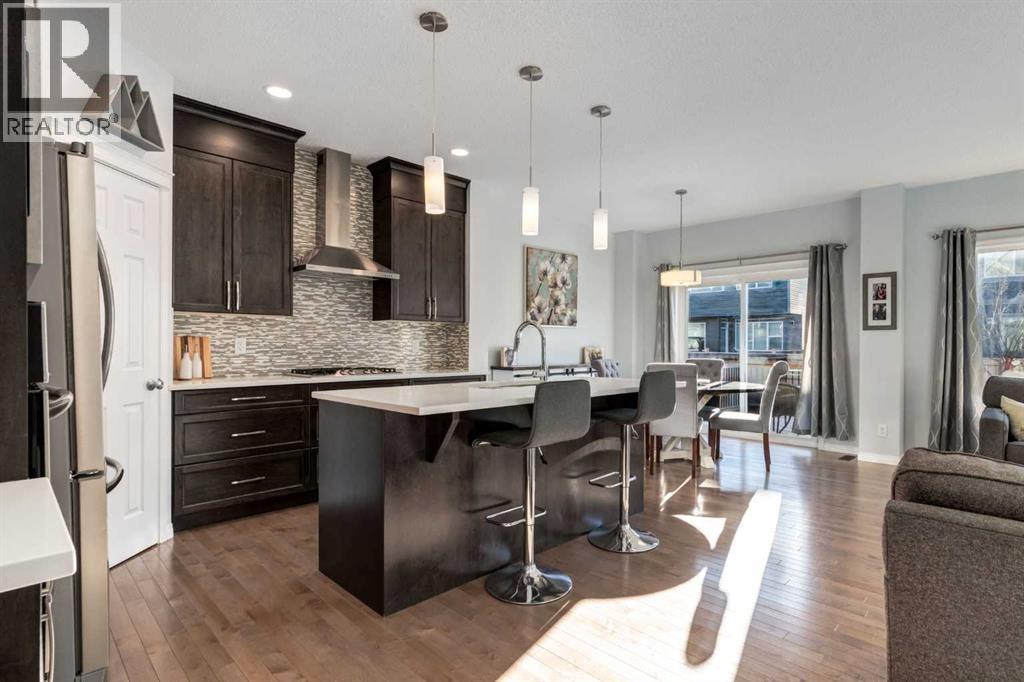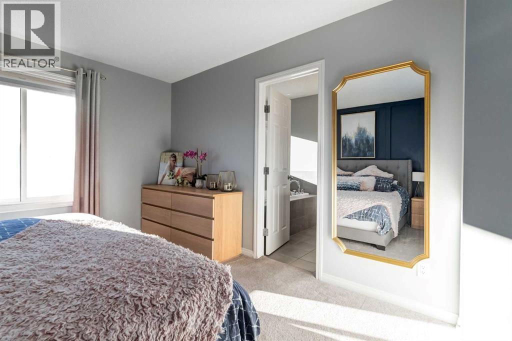 Welcome to this beautiful two storey home located in the desirable community of Sunset Ridge. This fully finished detached home offers over 2500sq ft of developed living space, featuring four bedrooms and three and a half bathrooms, perfect for families of all sizes. A bright, open-concept main floor showcases hardwood flooring and expansive windows that fill the space with natural light. The well appointed kitchen boasts dark maple cabinetry, gas cooktop, quartz countertops, stainless steel appliances with built-in microwave and oven, and a spacious walk-in pantry. The adjacent dining area opens to sliding patio doors leading outside to the fully landscaped, south-facing backyard, complete with a two-tiered deck; ideal for entertaining, relaxing, or enjoying sunny afternoons. An inviting living room features an electric fireplace framed by a stone surround, adding warmth and character to the space. Completing the main level is a convenient two-piece bathroom and direct access to the double attached garage. Upstairs, enjoy a spacious bonus room with vaulted ceilings, perfect for movie nights or family game nights. The primary suite is a true retreat, offering a luxurious five-piece ensuite with soaker tub, separate shower, double vanity, and a generous walk-in closet. Two additional bedrooms, a full bathroom, and convenient upper-floor laundry complete this level. The fully developed basement adds even more living space, featuring a recreation area, wet bar, three-piece bathroom, and an additional bedroom with a murphy bed; ideal for guests or a home office. Designed with sustainability in mind, this home is solar-ready for future energy efficiency and cost savings. Located just a short walk to the K–8 school and steps from parks and scenic pathways. Everyday conveniences, including a gas station, pub, and corner store, are close by, while quick access to Calgary and the Rocky Mountains adds to the appeal. Offering the perfect blend of comfort, style, and convenien ce, this is a fantastic opportunity in one of Cochrane’s most sought-after communities. Don’t miss out on this exceptional home! (31533408)