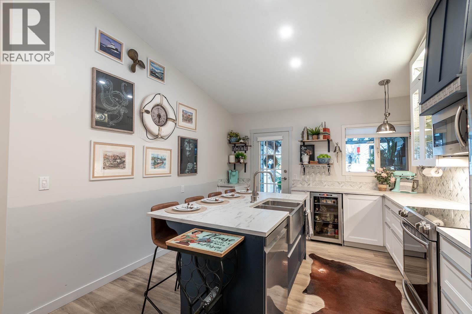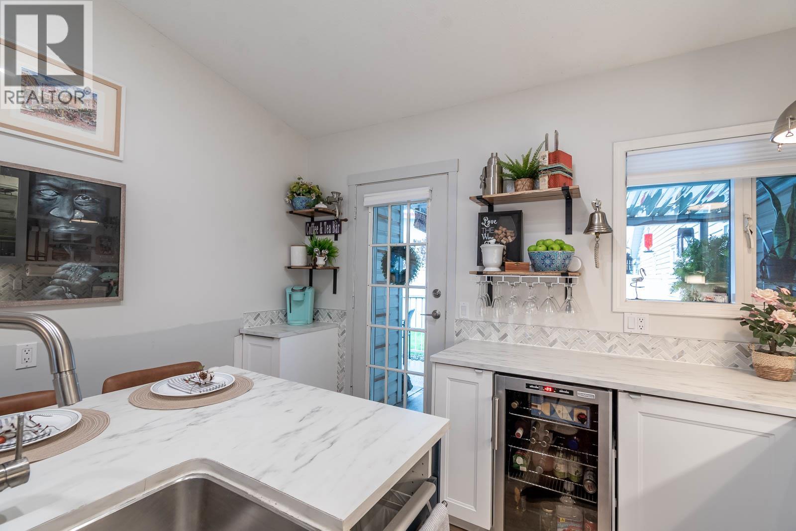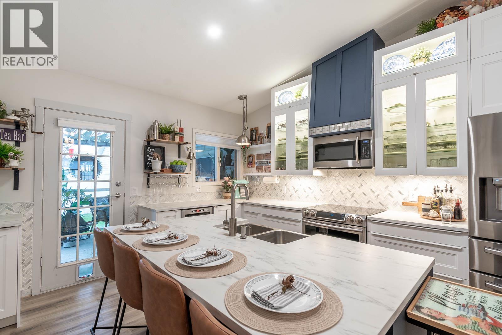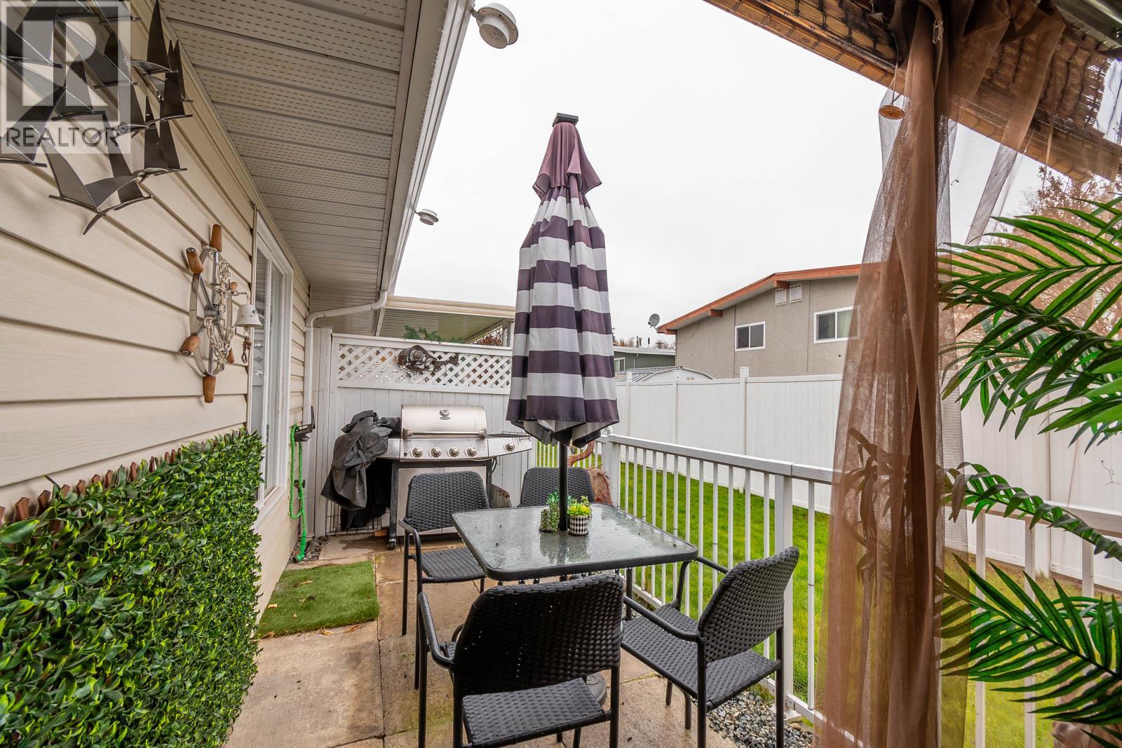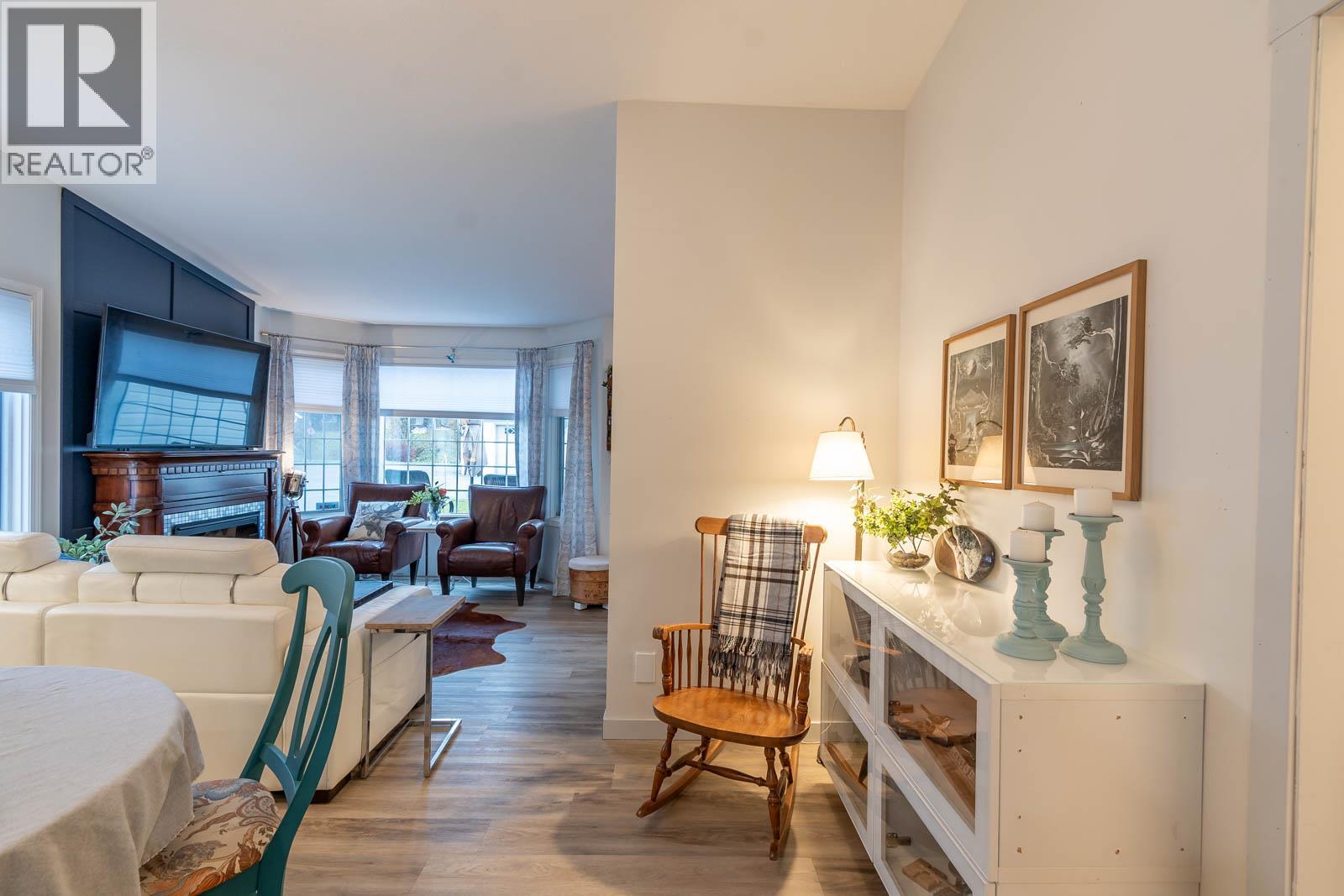 Beautifully maintained level entry 55+ townhouse located in the highly sought after Vernon Creek Villas, offering comfortable living in a prime, convenient location. Enjoy the ease of being within walking distance to transit and Vernon’s vibrant downtown core with its shops, services, and amenities. Step inside to a bright and spacious open concept layout highlighted by vaulted ceilings and abundant natural light. The updated kitchen is both functional and stylish, featuring soft close cabinetry with integrated lighting, SS appliances, built in wine cooler, and a large island. The primary bedroom offers a generous retreat with dual his and her closets and a well appointed 3 piece ensuite. A full 4 piece main bathroom includes in suite laundry for everyday convenience. Additional features include keyless entry from the garage, private backyard, covered patio ideal for relaxing or hosting guests, and convenient guest parking nearby. Numerous updates include new windows installed throughout, improving both comfort and energy efficiency. Residents enjoy low maintenance living with strata fees that include maintenance, sewer, garbage/recycling, and water. An extra parking stall is available for just $100 annually. Pet friendly with restrictions allowing either one dog or one cat not exceeding 16 inches in height. This home offers a wonderful combination of comfort, location, and lifestyle in one of Vernon’s most desirable adult oriented communities. (39626391)