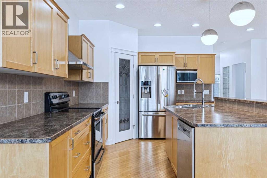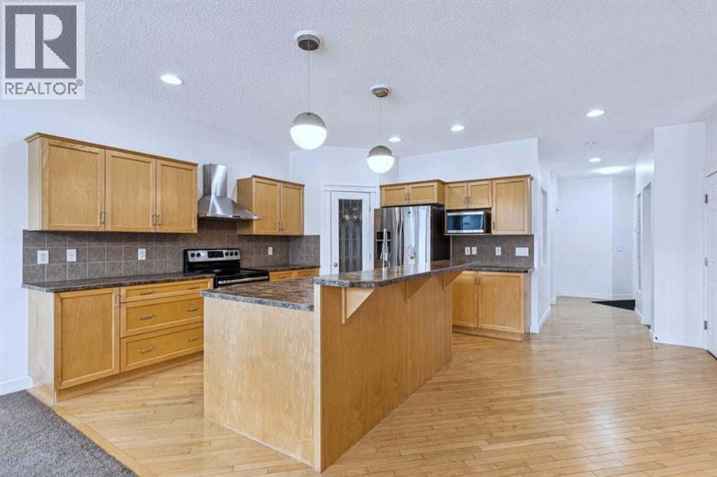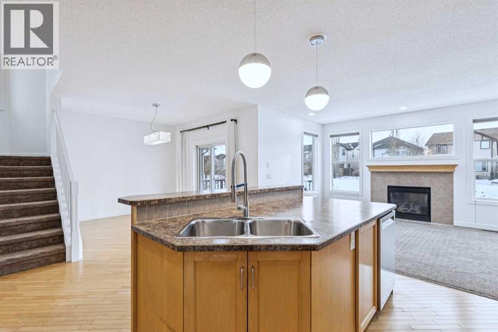 A rare opportunity in New Brighton, this well-maintained 2-storey home backs onto pathways and green space and is steps from schools, playgrounds, soccer fields, and the community clubhouse offering tennis courts, hockey and skating rinks, and more recreational amenities. The bright main floor offers an open-concept kitchen with island, spacious dining area, and inviting great room with gas fireplace, along with a large home office, laundry room, and convenient 2-piece bath. This home features a lower-level legal suite. Upstairs includes a spacious bonus room, a primary bedroom with full ensuite, and two additional bedrooms with a full bathroom, perfect for family living. The lower level has a private entrance, open-concept kitchen and living area, stainless steel appliances, vinyl plank flooring, separate laundry, one bedroom, full bath and a den. (31533863)