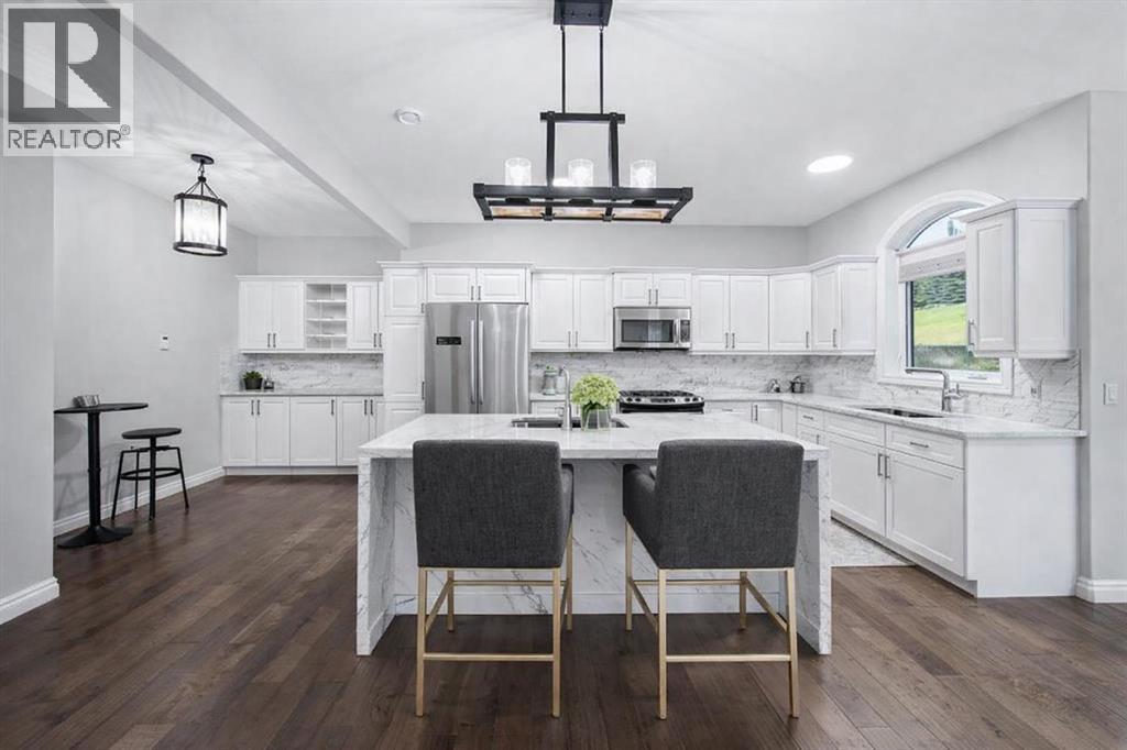 In Gleneagles — one of Cochrane’s most adored communities — families choose this neighbourhood for the quiet streets, mountain views, and excellent school access. Glenbow Elementary, École Manachaban Middle School, and Cochrane High School (your designated catchment) are all close by, making daily life easy and connected for kids of all ages.Set against the backdrop of the Rockies, this move-in-ready home offers immediate possession and over 2,500 sq.ft. of refreshed, comfortable living. The exterior of the home has been virtually painted to give you an idea of what you can easily do to the home. From the moment you arrive, the wide driveway, double garage, and sunny front balcony create a warm first impression — the kind that tells you there’s room here for family, guests, and life as it grows.Inside, everything feels new again. Fresh paint, brand-new carpet, hardwood floors, and updated fixtures give each room a clean and inviting feel. The main floor centres around a bright, functional kitchen with granite counters, a full-height stone backsplash, a large island with prep sink, and a custom bar nook that easily becomes the morning coffee spot or evening wind-down space. Oversized windows fill the main level with natural light, while the living room fireplace adds a sense of comfort that anchors the home.Step outside and the lifestyle expands. A private, two-tier deck overlooks mature landscaping and open green space, creating an ideal backdrop for BBQs, family gatherings, or quiet evenings outdoors. Kids will love the hidden park just beyond the yard — a safe, car-free shortcut to hours of play.Upstairs, a west-facing bonus room offers access to the front balcony, giving you sunrise coffees and sunset views over the valley. Four bedrooms complete the upper level, including a peaceful primary suite with French doors, a second fireplace, a jetted tub, dual sinks, and a walk-in shower.The lower level is ready for future plans with a framed bedroom, cold storage , rough-ins for a wet bar, additional laundry, and a roughed-in bathroom with the tub already installed.But the true standout is the comfort behind the walls. A whole-home boiler system provides in-floor heating across every level — even the garage — with 17 individual heating zones. The boiler, manifold, and automated controls were fully replaced in 2022, delivering even temperatures, warm floors, and noticeably lower monthly bills. A professional-grade HRV system keeps air fresh year-round, and the heated garage includes two plumbed floor drains tied to town sewer for effortless winter living.Surrounded by pathways, parks, and breathtaking views, this home brings together efficiency, warmth, and family-friendly living — all in one of Cochrane’s most scenic and school-rich neighbourhoods. It’s more than a house. It’s the beginning of a lifestyle that feels easy, elevated, and ready the moment you arrive. (31534187)