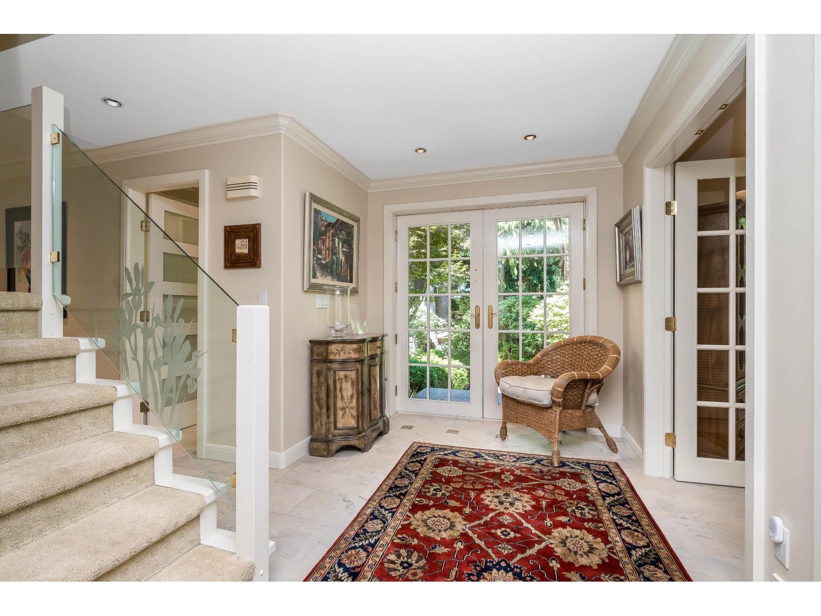 One of the most desirable Luxury Estate homes on the Peninsula! Set on a fully fenced, south-facing 34,526 sq. ft. lot, this home offers unmatched privacy in a serene, park-like setting. Completely renovated featuring over the 4,400 sq. ft. on two-level plus shop 561 heated detached workshop. Home showcases superior craftsmanship and thoughtful design. Highlights include brand new radiant in-floor heating on both levels, Italian tile flooring, granite countertops, and extensive custom finishings thru-out. The gourmet kitchen is ideal for entertaining, featuring a 6-burner gas range, water filtration system, hot water tap, and generous workspace. The luxurious primary suite is a private retreat with a gas fireplace, his & hers ensuites, private wet bar with mini fridge, and access to a secluded sundeck. Brazilian cherry hardwood enhances the serenity studio. Additional features include a 7KW auto-start generator, security system with cameras, 2200 sq ft wrap around deck, and underground sprinkler system. (32334614)