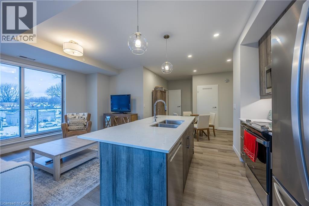 Welcome to 118 West Street, Unit 201 — a bright and beautifully appointed condo offering an easy, low-maintenance lifestyle in the heart of Port Colborne. Located in the sought-after South Port Condos, directly across from the Welland Canal at the mouth of Lake Erie, this two-bedroom, two-bathroom suite is ideal for first-time buyers, downsizers, or anyone looking to enjoy walkable living near the water. This 977 sq. ft. second-floor residence is filled with natural light and thoughtfully designed for comfort and efficiency. The open-concept layout features stainless-steel appliances, in-suite laundry, and a well-planned living and dining area that maximizes space while remaining functional and inviting. Step out onto your private balcony — a perfect spot for morning coffee or fresh air after a day exploring the community. The suite includes two parking spaces and a storage locker, adding everyday convenience. Residents also enjoy access to excellent building amenities, including an exercise room, a party room with a community BBQ area, and a welcoming access to the café located on the main floor — a favourite place to relax and watch cruise ships pass by along the canal. Just steps to scenic walking trails, summer events like Canal Days, and the shops and restaurants of charming downtown Port Colborne, this location truly shines. With easy access to Welland (20 minutes), St. Catharines (30 minutes), and the Peace Bridge (40 minutes), this condo offers carefree living in a vibrant waterfront community. Book your showing today. (70052854)