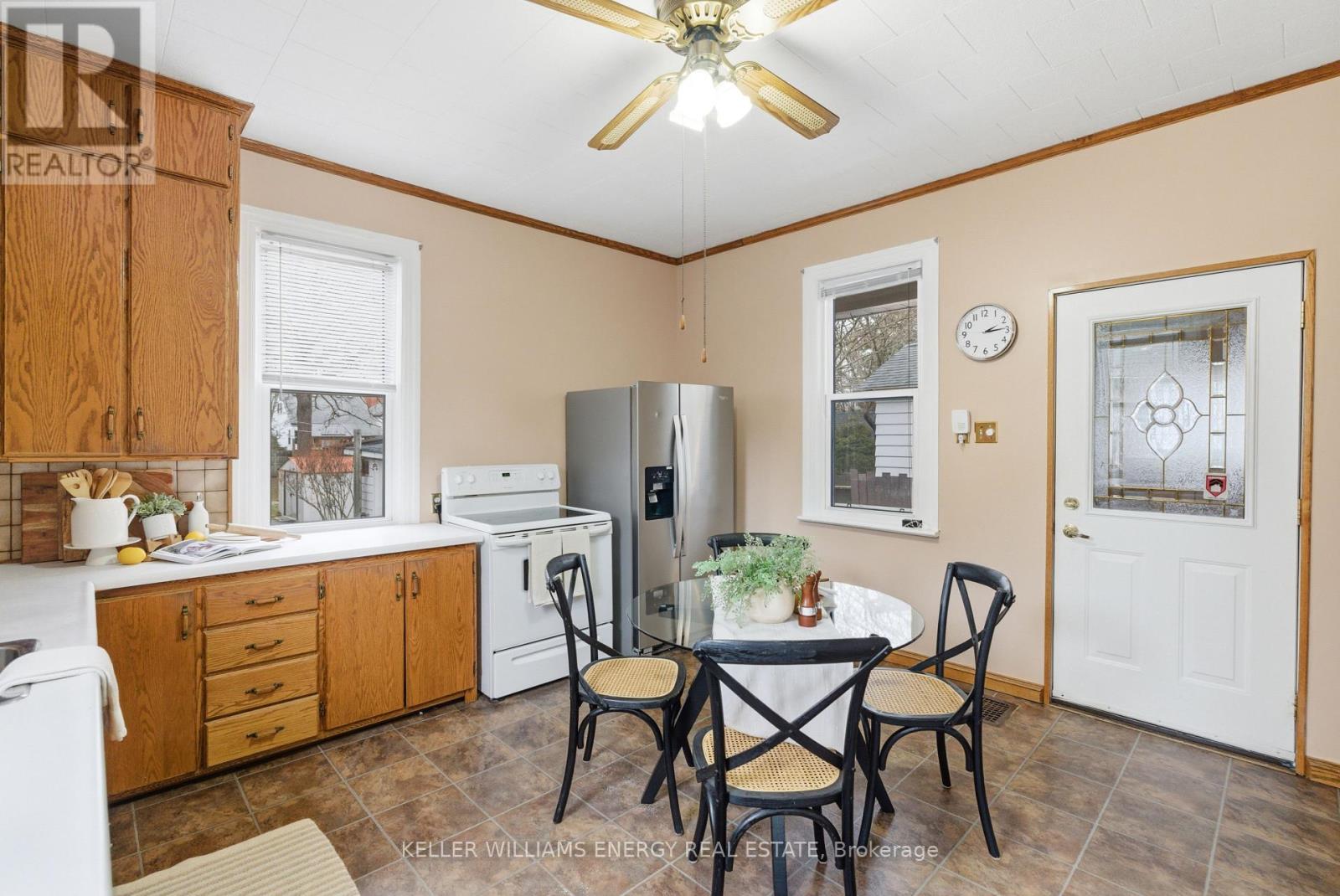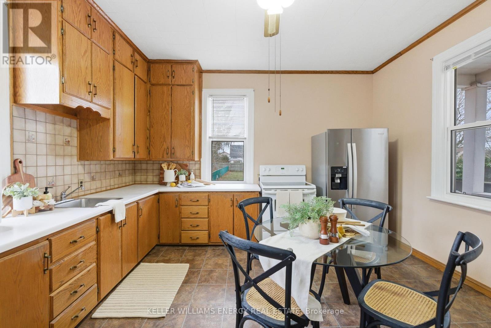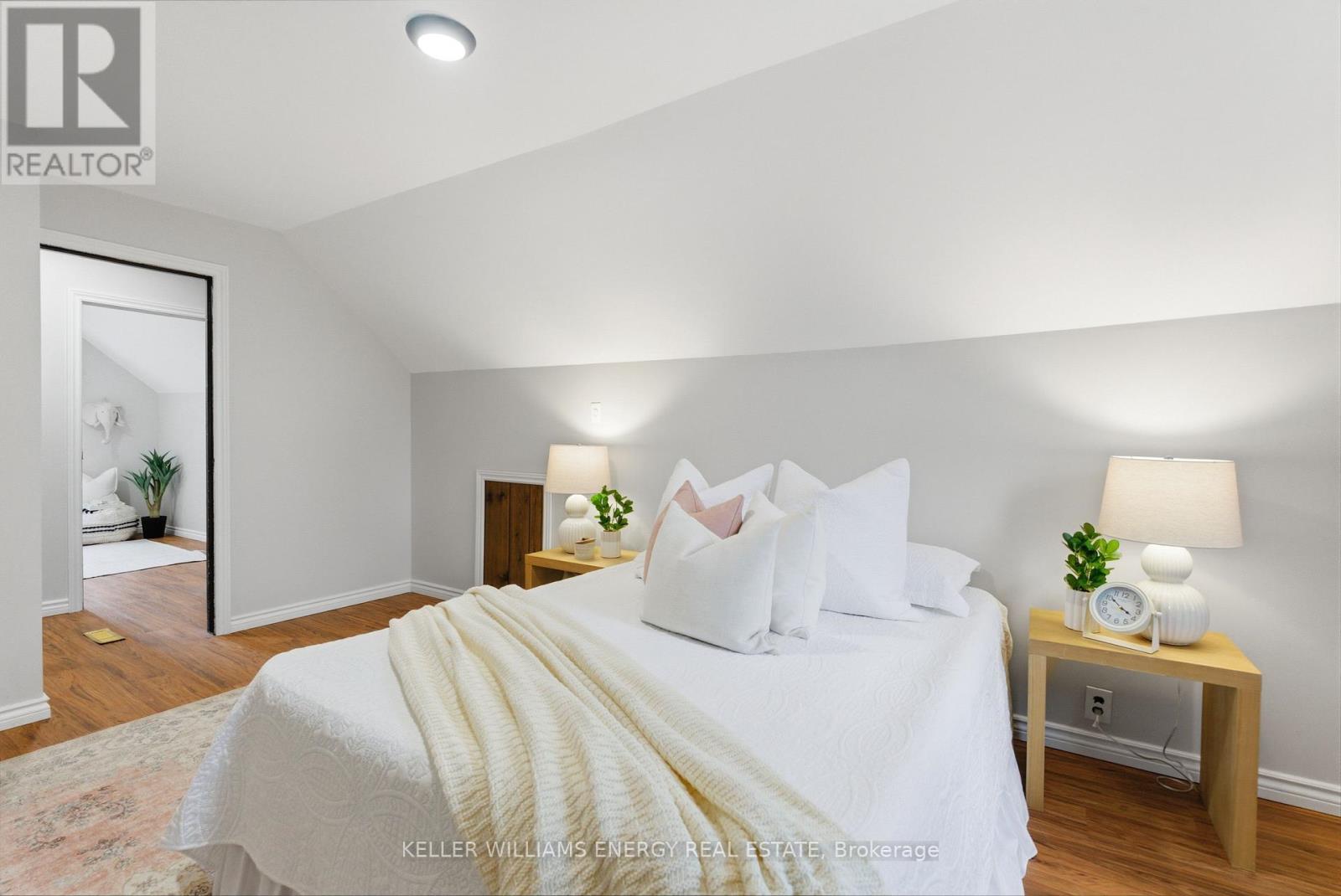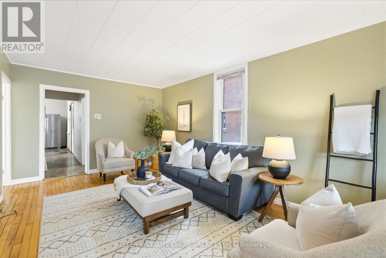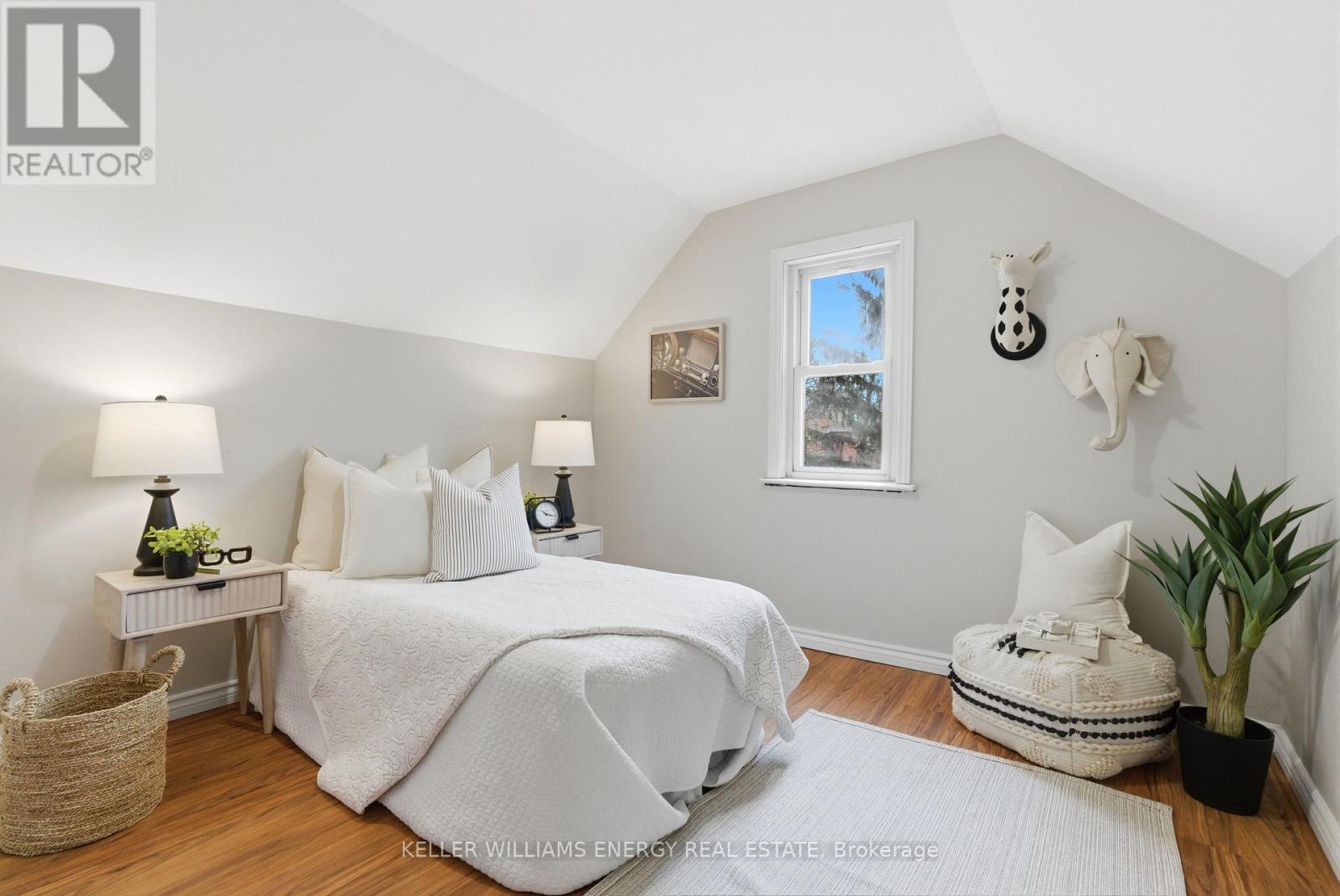 Discover The Potential In This Charming Home, Perfectly Situated On An Oversized 206 Ft Deep Lot In A Convenient Central Location! The Main Floor Welcomes You With Hardwood Flooring, A Bright & Airy Living Room, A Main Bathroom, And Two Bedrooms Featuring Impressive 9-Foot Ceilings. At The Back Of The Home, The Large Eat-In Kitchen Offers Ample Cabinetry, Tile Flooring, 9-Foot Ceilings, And Direct Access To A Breezeway That Leads To The Deck And Expansive Backyard, Ideal For Everyday Living And Entertaining. Upstairs, You'll Find Two Additional Light Filled Bedrooms With Updated Vinyl Flooring Throughout. This Level Was Refreshed In 2024 With New Vinyl Flooring And Refinished Walls And Ceilings, Adding A Clean, Modern Touch. The Full Height, Unfinished Basement Provides Excellent Storage Space. Outside, The Backyard Includes A Detached Garage With Electricity, A Storage Shed, Mature Trees And Plenty Of Room To Enjoy. A Charming Front Porch Completes The Home, Perfect For Sipping Your Morning Coffee. Located Close To Grocery Stores, Shopping, Schools, Transit, And The 401, This Home Offers Both Convenience And Opportunity. Don't Miss Your Chance To Make This Home Your Own! EXTRAS: Upstairs Ceiling & Walls Refinished (2024), All Upstairs Flooring (2024). (41954866)