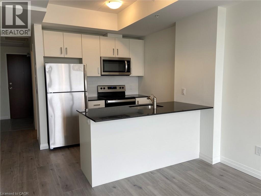 Splish Splash! Get ready for POOL season!! Live in the heart of the innovation district in Kitchener and enjoy this brand new modern Garment St condo that offers 1 bedroom, 1 bathroom, office niche, and open concept layout. Ample nature lighting from the large windows, features include wide plank engineered flooring, upgraded cabinets to 36, granite counter top, subway tile backsplash, eat-in breakfast bar, stainless steel appliances, in-suite washer & dryer, and private balcony. Also, checkout the amazing building amenities like: outdoor swimming pool, half-court basketball court, landscaped terrace with bbq, party room & private patio, outdoor dog run with pet washing stations, fitness room & yoga/wellness studio, garbage and recycling chute, and available concierge (at an extra cost). This location can't be beat as it's near light rail transit (LRT), Go-Train Station, bus transit, walking distance to the Tech Hub - Google, Desire 2 Learn, Communitech, The Tannery, walking distance to university of Waterloo School of Pharmacy and Michael G. DeGroote of Medicine (McMaster University), walking distance to downtown Kitchener, Victoria Park, City Hall, restaurants, coffee shops, and shopping. Don't delay book your showing today! (70053793)