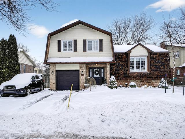 Beautiful 3+1 bedroom split with 2 full bathrooms + powder room and a bright spacious main floor family room with gas fireplace. Located in sought after Timberlea area with easy access to new REM station, autoroutes, parks and schools. Very well maintained over the years including updated windows and doors, central heating + heat-pump, hard wood floors, kitchen, roof in 2013 etc(see addendum). Stunning backyard with two level deck including two gazebos and a hot tub and superb flower garden. Finished basement with spacious playroom and extra bdr + full bathroom. Spacious home for growing family in great location. (52612378)