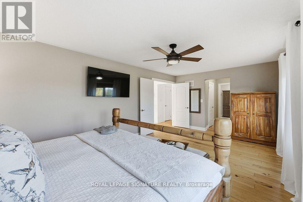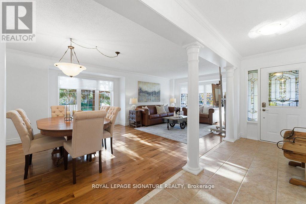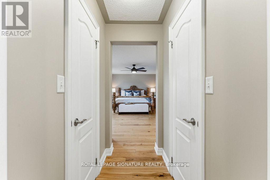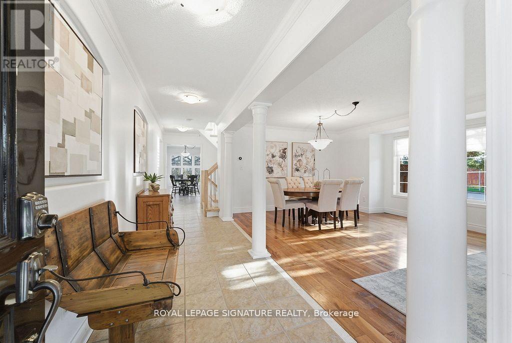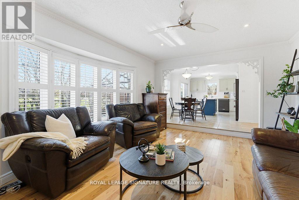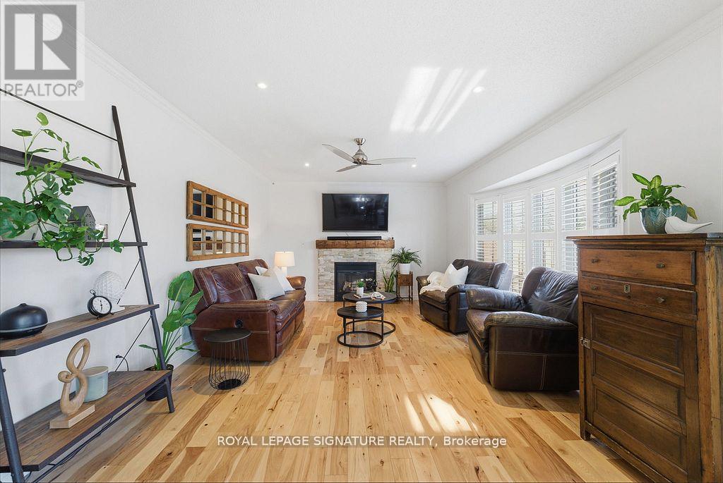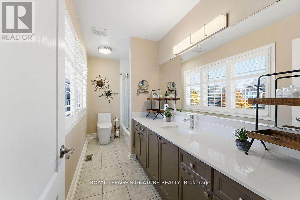 Rarely offered 65-ft wide corner lot backing onto serene greenspace! This exceptional property is being offered for the first time by the original owners and features over $175,000 in premium improvements plus significant builder upgrades. This unique corner-lot elevation provides extra interior width, additional side windows, and a desirable wrap-around porch - a feature seldom found in the community. The all-brick exterior is paired with upgraded casement-style windows and major mechanical updates already completed for peace of mind, including Roof (2016), Furnace and A/C (2019), and attic insulation upgraded to R60. Inside, the home features a well-designed 4-bedroom, 4-bathroom layout with engineered hickory hardwood flooring on both the main and second levels, complemented by a custom matching staircase and California shutters throughout. The spacious open-concept kitchen is ideal for entertaining, showcasing quartz countertops, a large island, built-in pantry, and sleek modern black stainless-steel appliances. Upstairs, the primary suite is a true retreat, complete with his-and-hers walk-in closets, blackout blinds, and a fully renovated spa-inspired ensuite featuring a custom double vanity and expansive glass shower. A convenient second-floor laundry adds everyday functionality. The finished basement offers excellent additional living space and a full washroom; the black couches and 65" Panasonic smart TV are included. A custom dog-washing station adds thoughtful practicality for pet owners, or can be converted easily into a second kitchen setup without sacrificing storage. Step outside to enjoy the new backyard deck (2025) and mature landscaping overlooking peaceful greenspace-a private outdoor retreat remarkably close to all amenities and 401 access. With its premium lot, extensive upgrades, and move-in-ready condition, this is a truly rare opportunity in one of Milton's most sought-after neighbourhoods. (41955229)