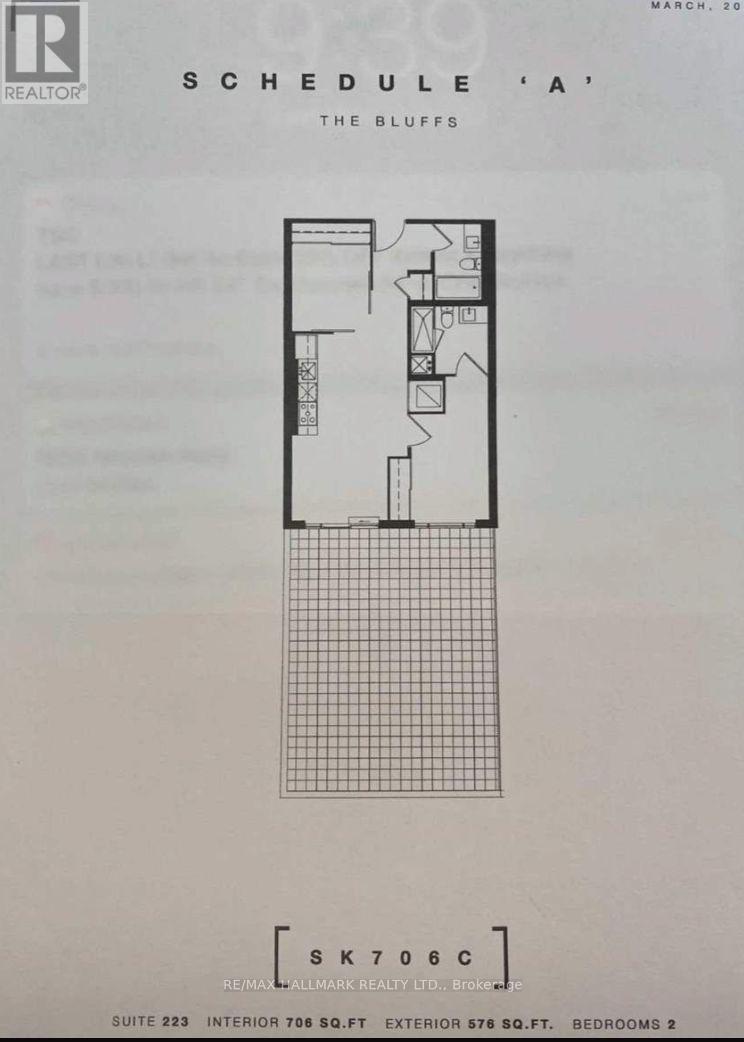 Unique less than 5 year old development that has tons of potential for growth at Kingston Road & Brimley called "The Bluffs Condos" featuring a Stunning 2 Bed, 2 Full Bath Suite specially designed with an unparalleled outdoor space specific to this unit on the second floor. This home is perfect for Downsizers or Starting Families. Welcome to The Bluffs, a world-class boutique condo development in Scarborough nestled near the serene Lake Ontario with cascading facade of natures delight. This building offers an unparalleled blend of modern luxury and natural beauty of its surroundings. Whether you're downsizing for a simpler lifestyle or starting a family, this unit provides everything you need to live in comfort and style, Featuring 706 sq. ft. of open-concept living space with an additional 576 sq. ft. balcony, this spacious 2-bedroom, 2-bathroom home for quiet mornings or evening entertaining. You'll love the laminate flooring throughout and the sleek kitchen with quartz countertops, making it as functional as it is beautiful, high 9-ft ceilings give a sense of grandeur, while the walk-in closet in the primary bedroom provides ample storage.The Bluffs offers top-tier amenities to suit your lifestyle, including a media lounge, an upscale fitness center with changing rooms, outdoor terrace and barbeque areas and more. And if you love the outdoors, Bluffers Park is just steps away, offering scenic walking trails, beaches, and picnic spots ideal for family outings or peaceful escapes.Enjoy the convenience of being close to the lake while having easy access to local shops, schools, and transit. This condo truly combines the best of nature and city living. **EXTRAS** All Electrical Light Fixtures, All Window Coverings, All Appliances, Washer and Dryer. (41955613)