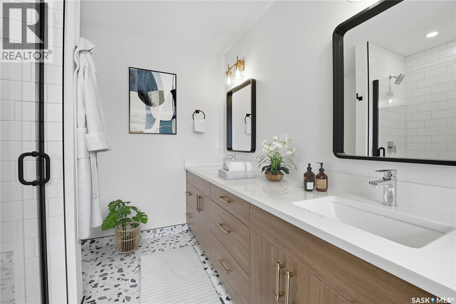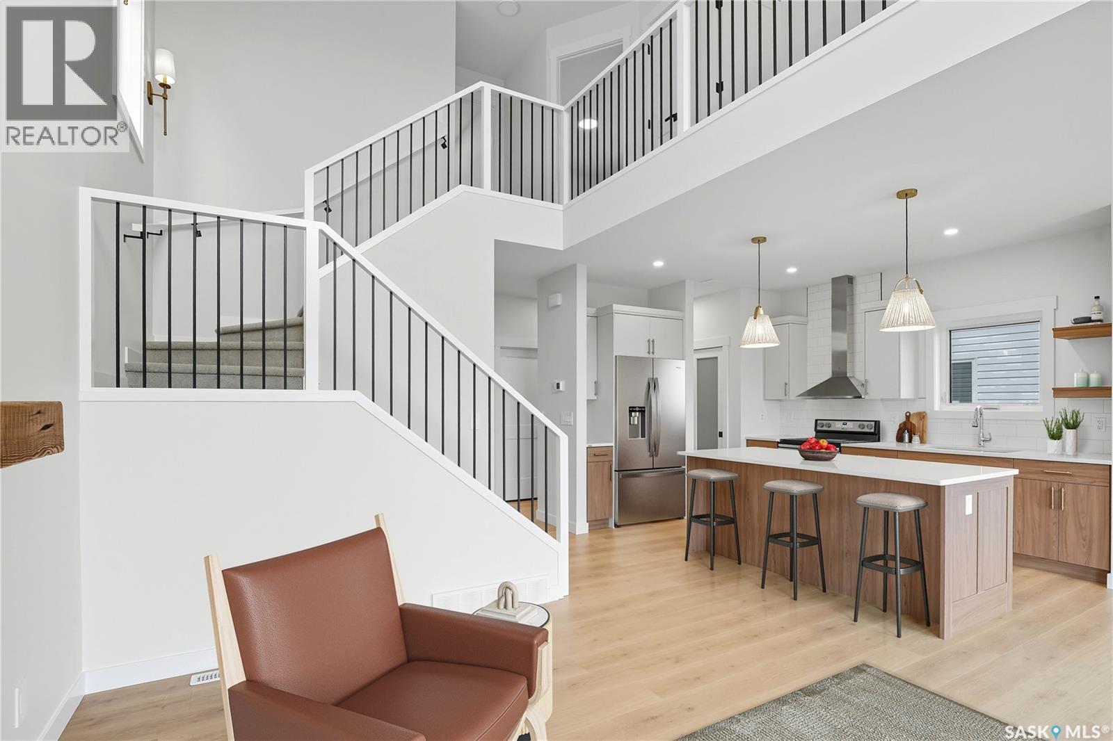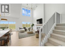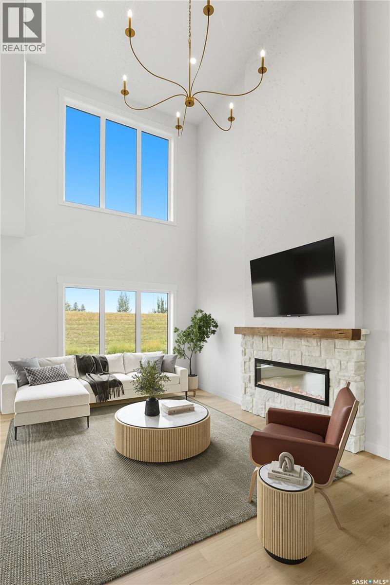 Welcome to the "Summit" Edgewater's newest plan in the desirable neighbourhood of Brighton. This 2 storey is sure to impress. Entering from the drywalled and insulated garage, you step into a mud room with a bench and hooks to store your outerwear. You continue through the walk through pantry into the spacious kitchen has lots of cabinets, quartz countertops and beautiful tiled backsplash. The island is 7' long with an eating ledge. Over sized patio doors in dining room. The living room has 18' ceilings, giving the home a very large presence and large windows in the living room create a spacious light filled area. The fireplace centers the room and finishes it nicely. On the second floor, the Primary bedroom includes a feature wall, the ensuite has double sinks in the vanity and a beautifully tiled shower and a stand alone tub. You will find 2 secondary bedrooms and a 4 piece bath as well. 2nd floor laundry completes this floor. All Pictures may not be exact representations of the home, to be used for reference purposes only. Errors and omissions excluded. Prices, plans, specifications subject to change without notice. All Edgewater homes are covered under the Saskatchewan New Home Warranty program. PST & GST included with rebate to builder. (29282379)