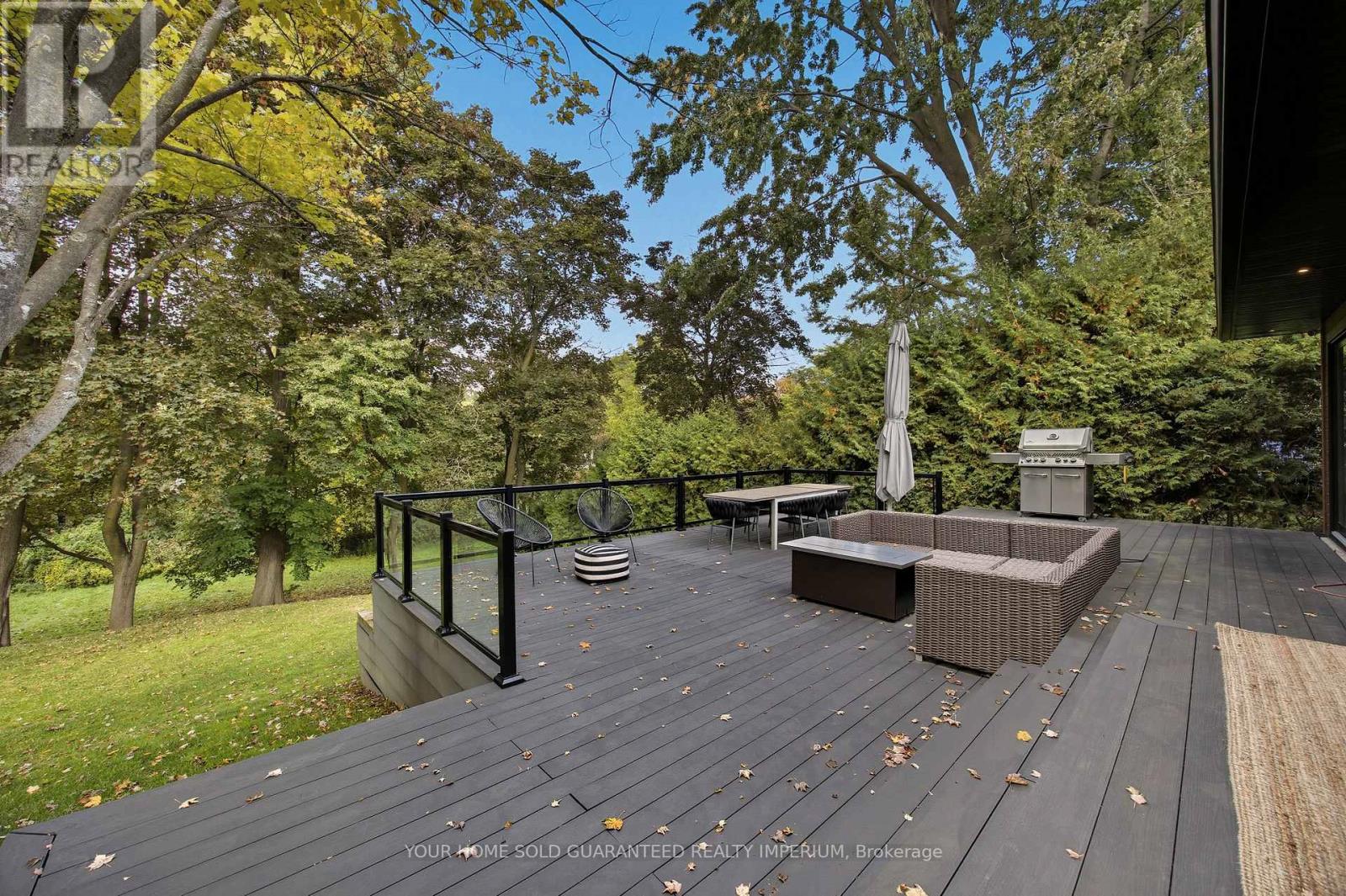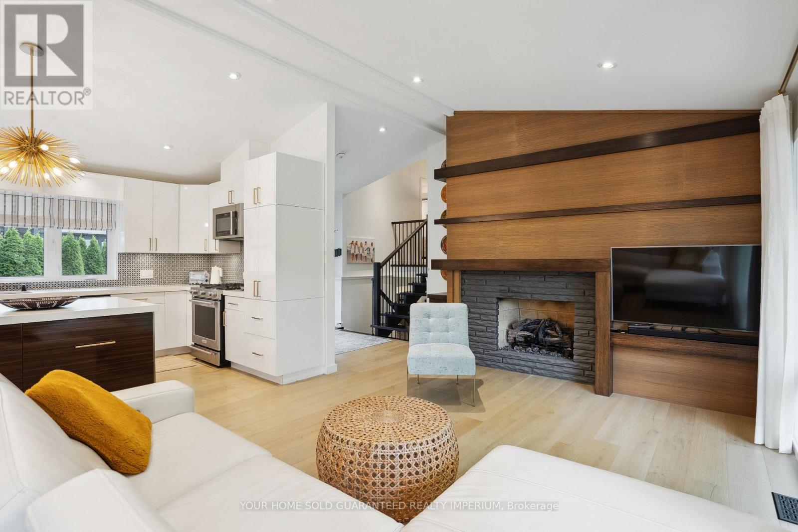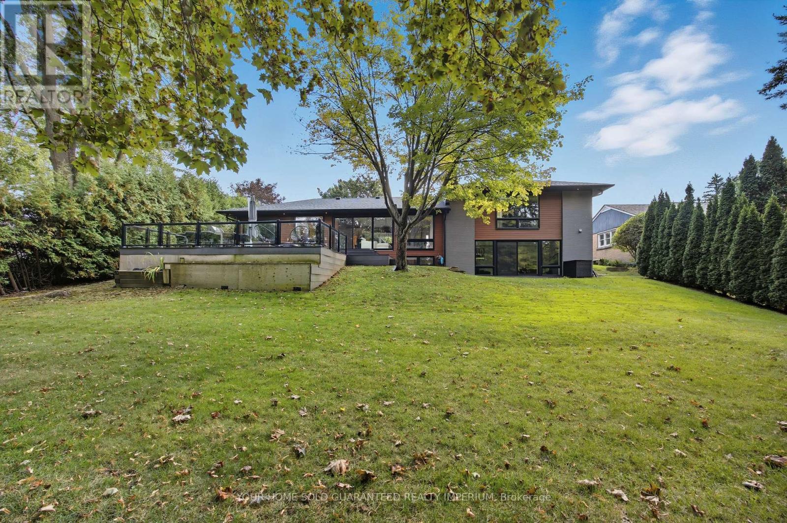 Extremely Rare Opportunity to own the Best Ravine Property in Historic Town Park Area. Gorgeous and immensely private 80 foot wide property with a tranquil park-like setting. NEVER BEEN ON THE MARKET! This fully remodelled custom mid-century modern sidesplit evokes Muskoka living in the heart of the city while being just steps to all amenities. Soaring 10ft and vaulted ceilings, wide plank oak engineered hardwood throughout, a dramatic wall of oversized high-efficiency low-E argon windows, and a striking floating staircase create a bright and airy atmosphere filled with natural light. The interior showcases custom millwork throughout, rift-cut white oak interior doors, and two stunning masonry fireplaces with Napoleon log sets for warmth and elegance. The gourmet kitchen is a showpiece with custom cabinetry, modern stainless steel appliances, a gas stove, beverage centre, and seamless flow to the dining and living spaces. Bedrooms and baths are equally impressive, with three of the four bedrooms featuring their own private ensuites, offering exceptional comfort and privacy. Spa-like finishes include marble floors and walls in the ensuite and main bath, along with upgraded porcelain tiles in all additional areas. Every detail has been thoughtfully considered including an oversized 2-car garage, monitored alarm system, and ample storage. Step outside to your own private oasis featuring an oversized maintenance-free 32ft x 24ft deck, gas line for BBQ and fire table, hot tub R/I, professional landscaping with irrigation system, and maintenance-free leaf guard eavestroughs all designed for effortless outdoor living and entertaining. Town Park is the Hub of Aurora! Short walk to Go train, Farmers Market, Aurora Cultural Centre hosting Performing Arts, Concerts, and Music. Town Park hosts Outdoor Summer Concerts/Family Movie Nights, Children's Splash Park, and new Playground, Aurora Library and the New Town Square are all just a short walk away. (41955753)