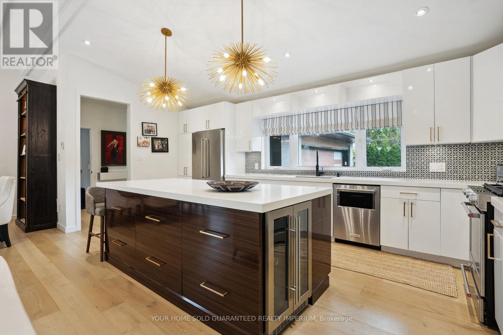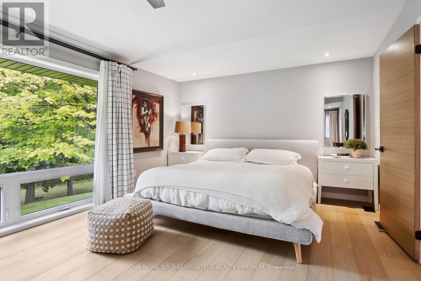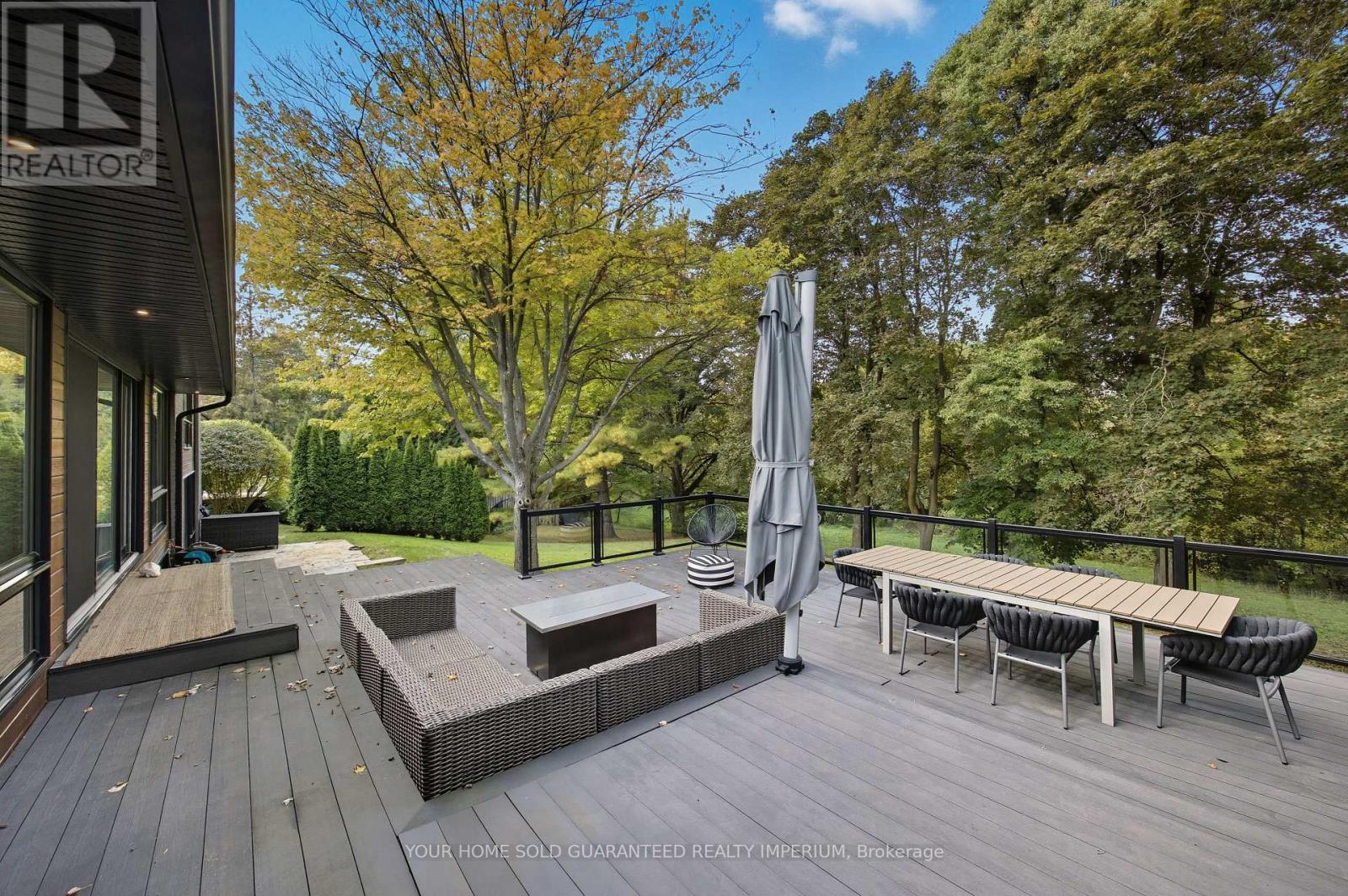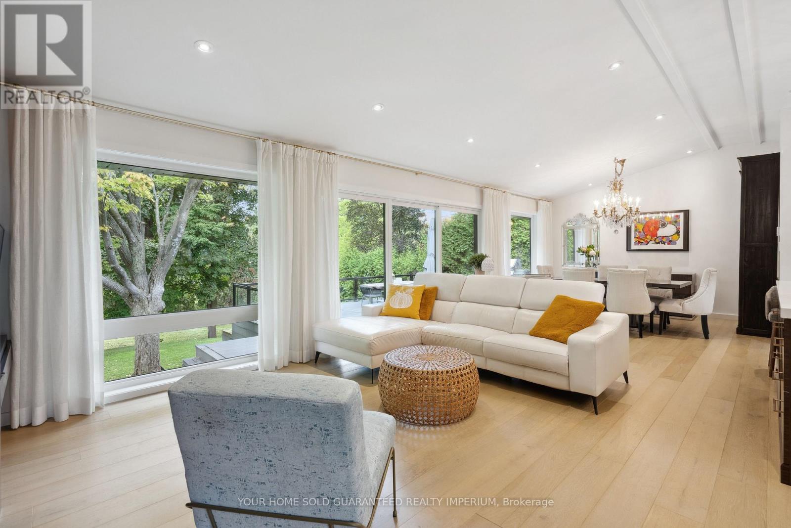 Extremely Rare Opportunity to own the Best Ravine Property in Historic Town Park Area. Gorgeous and immensely private 80 foot wide property with a tranquil park-like setting. NEVER BEEN ON THE MARKET! This fully remodelled custom mid-century modern sidesplit evokes Muskoka living in the heart of the city while being just steps to all amenities. Soaring 10ft and vaulted ceilings, wide plank oak engineered hardwood throughout, a dramatic wall of oversized high-efficiency low-E argon windows, and a striking floating staircase create a bright and airy atmosphere filled with natural light. The interior showcases custom millwork throughout, rift-cut white oak interior doors, and two stunning masonry fireplaces with Napoleon log sets for warmth and elegance. The gourmet kitchen is a showpiece with custom cabinetry, modern stainless steel appliances, a gas stove, beverage centre, and seamless flow to the dining and living spaces. Bedrooms and baths are equally impressive, with three of the four bedrooms featuring their own private ensuites, offering exceptional comfort and privacy. Spa-like finishes include marble floors and walls in the ensuite and main bath, along with upgraded porcelain tiles in all additional areas. Every detail has been thoughtfully considered including an oversized 2-car garage, monitored alarm system, and ample storage. Step outside to your own private oasis featuring an oversized maintenance-free 32ft x 24ft deck, gas line for BBQ and fire table, hot tub R/I, professional landscaping with irrigation system, and maintenance-free leaf guard eavestroughs all designed for effortless outdoor living and entertaining. Town Park is the Hub of Aurora! Short walk to Go train, Farmers Market, Aurora Cultural Centre hosting Performing Arts, Concerts, and Music. Town Park hosts Outdoor Summer Concerts/Family Movie Nights, Children's Splash Park, and new Playground, Aurora Library and the New Town Square are all just a short walk away. (41955753)