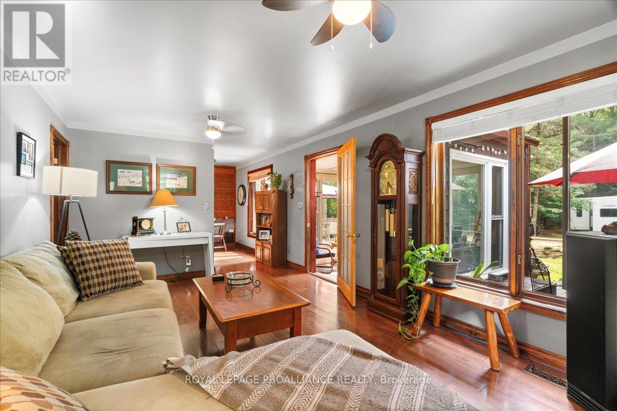 Have you ever gone camping in a Provincial Park and thought - Oh my goodness - I could LIVE here??? That is what living at this property would feel like every day, with a few differences:1. Ultimate Privacy. 2. No need to tent it when you have 2 cozy cabin like homes + a bunkie on the property! AND you will love the miles of manicured walking trails with beautiful rest stops and vistas to enjoy on your hike or while cross-country skiing! Tucked away in a serene woodland setting, this 26-acre property offers a peaceful escape surrounded by nature. Wander along winding trails beneath mature trees, take in quiet pond views, and enjoy the sense of seclusion that only a forested retreat can provide. Whether you're seeking a place to unwind, explore, or create a multi-purpose homestead, this property delivers space, flexibility, and privacy in equal measure. The main residence is warm and inviting, with a functional layout that includes a generous mudroom, main floor laundry, and access to a large back deck, ideal for outdoor dining or quiet evenings under the stars. A second, self-contained dwelling on-site has its own hydro service, water source, and septic system. Set up as a one-bedroom unit, it could easily be adapted to include a second bedroom, currently rented as a long-term rental for $1,800 per month plus hydro. Also on the property is a detached outbuilding with heat, hydro, and a 2-piece bathroom. It is currently used as a hair salon and workshop, perfect for creative projects or a home-based business, but it could also make a great bunkie for guests. With two wells, two septic systems, and frontage on a year-round road, the property is both practical and full of potential. There's even the possibility for future severance of the land. Located in the heart of the Land O' Lakes region, this is a rare opportunity to enjoy quiet country living with space to grow and explore. (41956055)