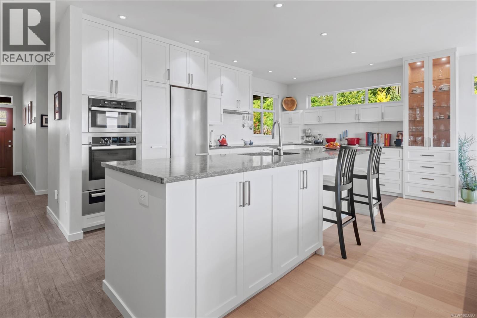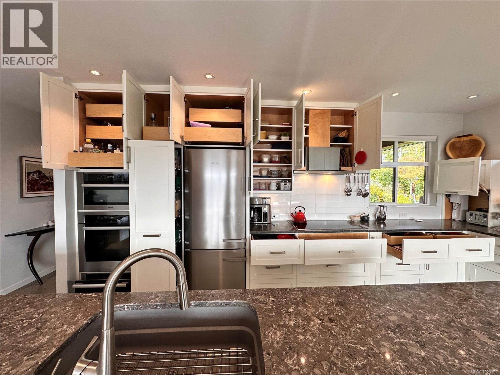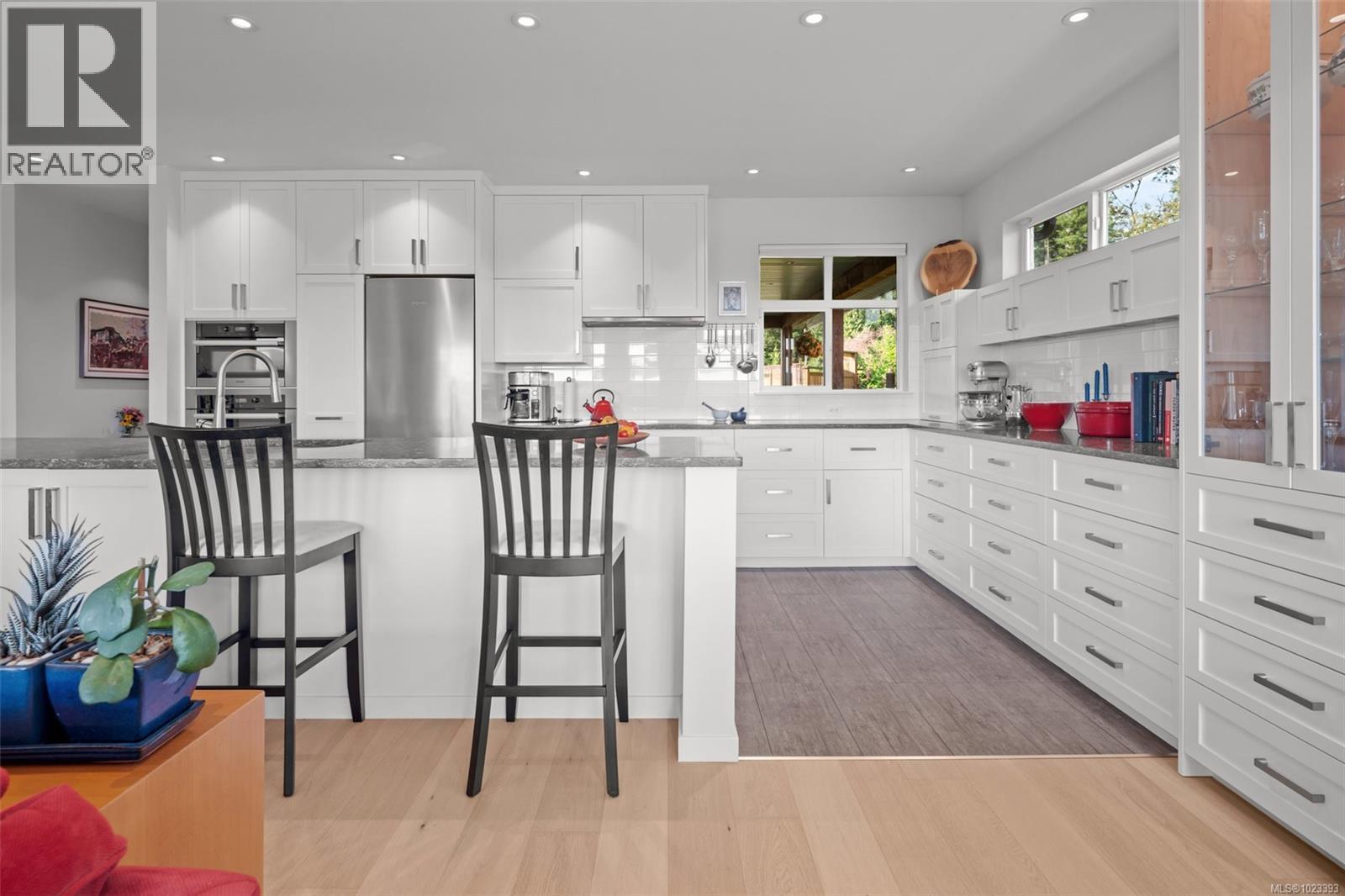 Discover this spectacular transformable home, ideally located to enjoy the relaxed lifestyle of Vancouver Island. Easy access to the ocean, hiking trails, local amenities, Victoria and beyond. This single-level residence offers seamless indoor-outdoor living year-round, with views of the Olympic Peninsula, forest and ocean. The 9’ ceilings, and open-concept layout, together with large windows allow abundant natural light throughout. Thoughtful design blends modern efficiency with quality to create warm, versatile spaces - this home is an organizers’ dream with custom Baltic Birch cabinetry, easily configurable ELFA storage systems (no tools required) and a temperature-controlled 5’+ concrete crawlspace under entire home. Check out the bedrooms too! This is a home that truly needs to be seen to be appreciated. The gourmet kitchen is a chef’s dream, featuring high-end SS Miele appliances - including a induction cooktop, convection ovens, warming drawer, fridge and dishwasher. Cabinetry includes clever storage solutions such as a hidden appliance garage, pull-out pantry, “Magic Corner,” and four-bin recycling center. The oversized island with a 30” wide single basin sink makes prepping, cooking and cleanup for family meals and entertaining a breeze. The main bedroom includes a bright 4-piece ensuite bathroom, and two large closets (one walk-in) both with customizable storage. The second 3-piece bathroom is flooded with natural light. The other two bedrooms are transformable spaces with built-in cabinetry and space-saving Euro wall Queen beds. Transform the custom office and the multi purpose workroom into comfortable bedrooms in minutes. Outside, deer resistant plantings in the front yard, and private, fenced-in rear and side gardens and lawns offer year-round enjoyment. The property includes a garden shed, a glass wall-garden, and a 9-zone WiFi enabled irrigation system. Click on the ''house features'' link below for more details of this amazing home! (30279224)