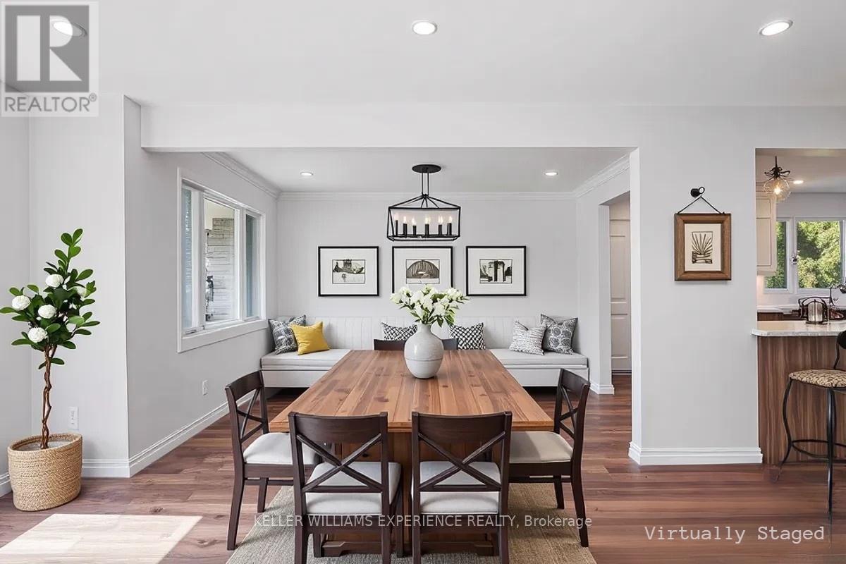 Located in the highly sought-after Codrington neighbourhood, this extensively renovated home has been transformed into a modern, functional, and beautifully designed home to meet today's lifestyle needs. The main floor offers a spacious, open-concept living, dining, and kitchen area with a bright, expansive flow. Southern-facing windows fill the space with natural light, while the chef-inspired kitchen features a large center island, quality finishes, and seamless connection to the living areas. Engineered hardwood flooring, upgraded fixtures, and lighting enhance the contemporary feel throughout. The second level offers three generously sized bedrooms with engineered hardwood floors, pot lights, large windows, and a stylish 4-piece bathroom. The third level adds two additional bedrooms, a den, and a full 3-piece bathroom-perfect for teens, guests, or a flexible work-from-home space. The fully finished fourth level provides even more functionality, featuring an additional family room, a second kitchen or wet bar area, a newly renovated 3-piece bathroom, storage, and a laundry room, creating excellent potential for in-law accommodation or extended-family living. Outside, the landscaped lot is equally impressive, offering irrigation, mature trees, perennials, a patio, and dedicated BBQ areas. The home is further enhanced by an oversized single garage with inside entry and a paved driveway for four vehicles. A convenient side-door entrance offers potential for a private in-law suite or professional home office. Upgrades include: furnace (2023), A/C (2024), windows and doors (2023), interior renovations (2023-2024), deck and railing (2024), and shingles (2017). Additionally, the seller has approved building plans and drawings for a detached double garage addition, adding further value and future potential. A rare opportunity to own a stylish and timeless property in one of the city's most desirable neighbourhoods. (41956245)