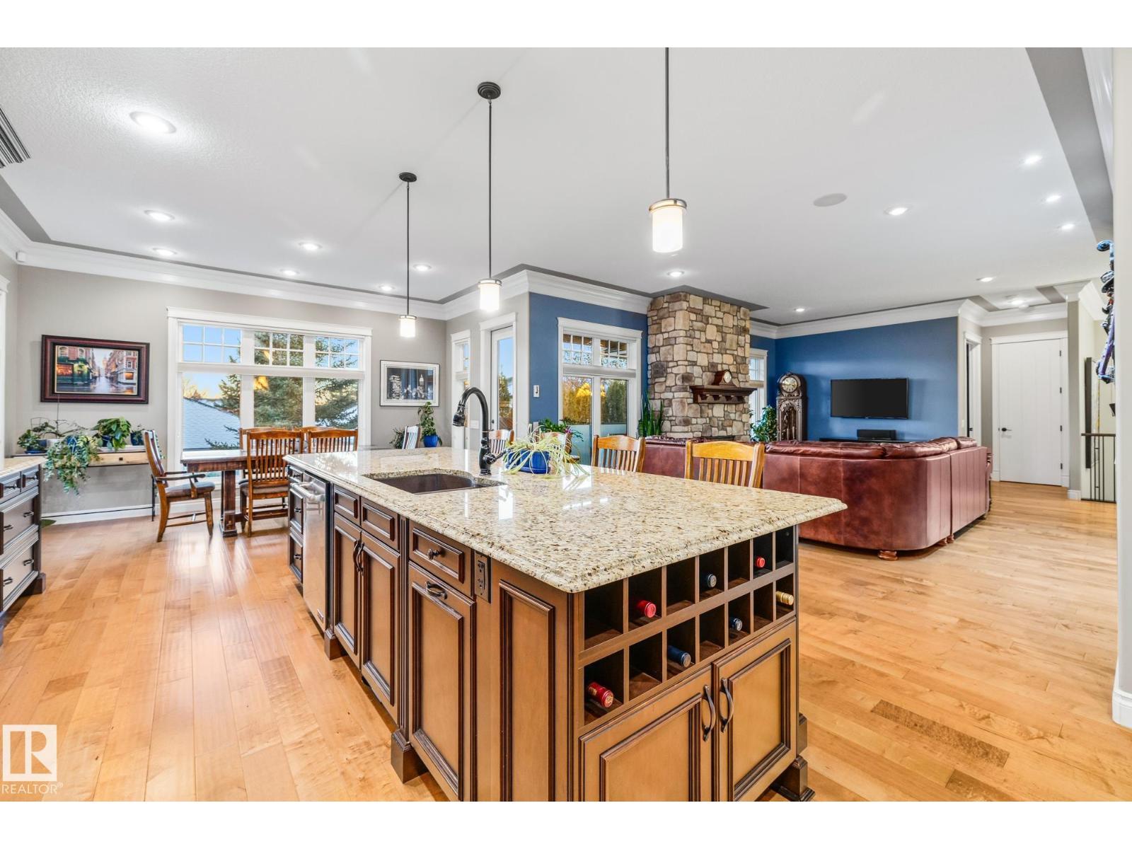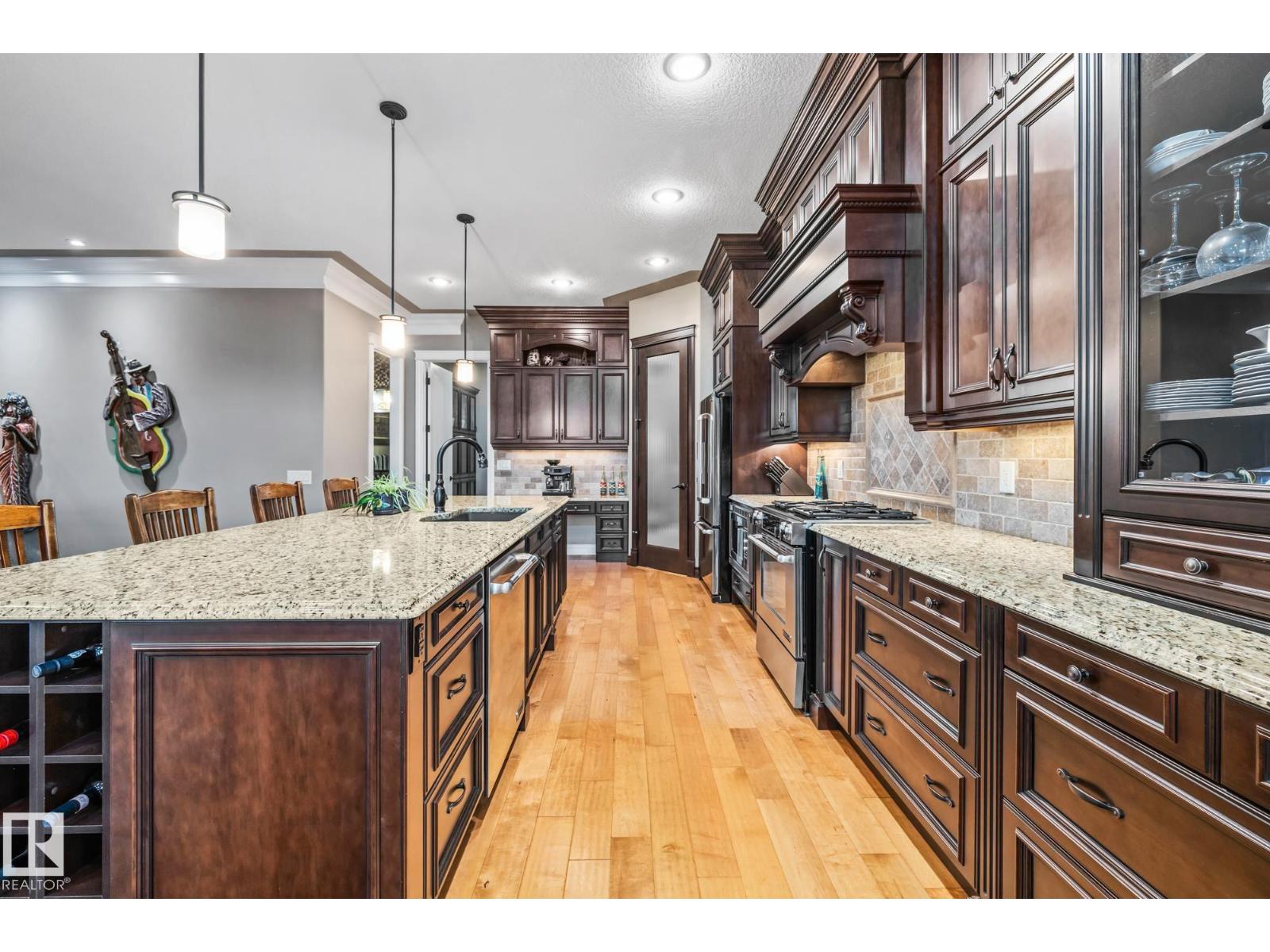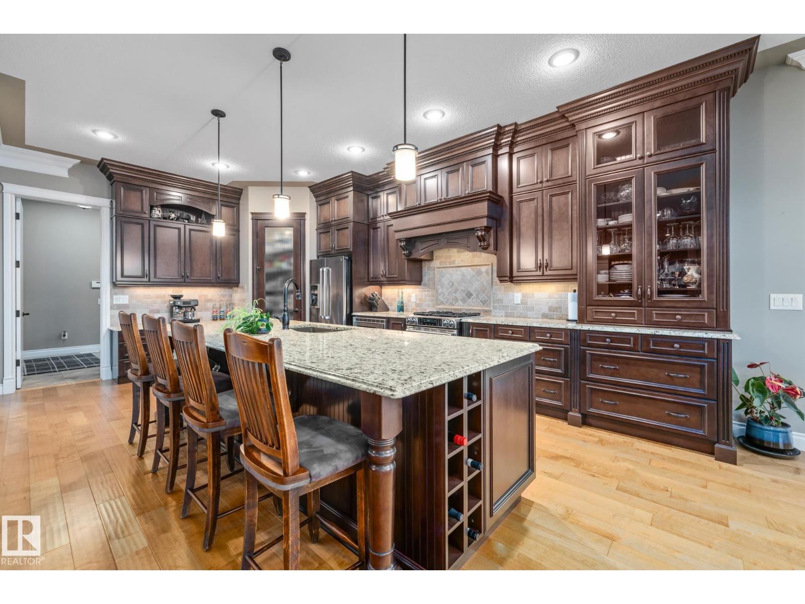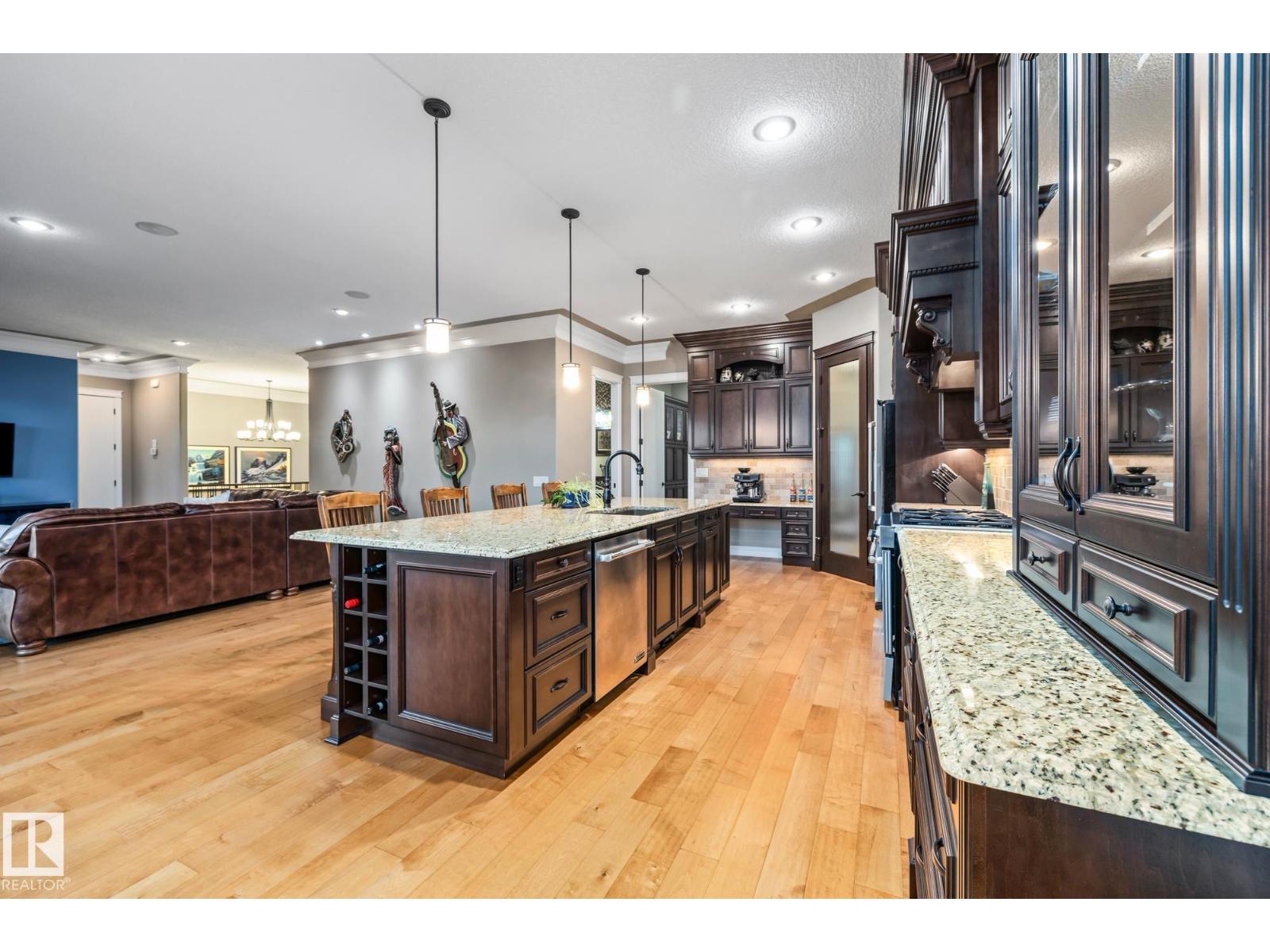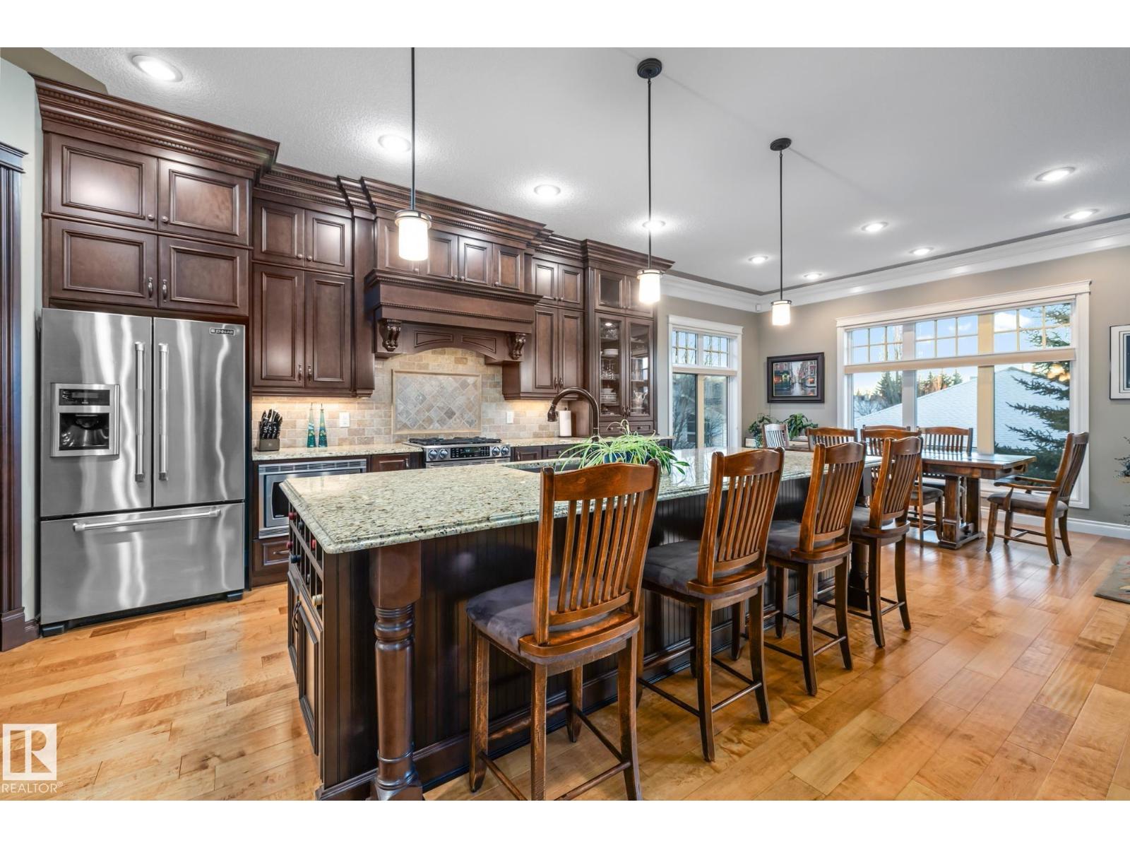 An executive walkout bungalow with a rare car lift allowing parking for 3 vehicles sets this custom-built home apart in prestigious Kingswood. An oversized driveway pad offers generous space for additional vehicles, guests or toys. With 4,440 sq ft of living space, this home features 5 bedrooms and 3.5 baths designed for entertaining & everyday comfort. The main level showcases 10 ft ceilings, travertine tile, scraped hardwood floors, coffered detailing and a full stone fireplace. The chef’s kitchen includes JennAir appliances, granite countertops, a large island, custom cabinetry and a walk-through pantry connecting to an oversized mudroom + den. The private primary suite offers a walk-in closet and spa-inspired ensuite w/ heated floors, dual sinks, jetted tub and double steam shower. The walkout basement features heated floors, a wet bar, additional bedrooms, 2 full baths and a temperature-controlled wine cellar. Low-maintenance landscaping completes this impressive property that truly seen in person. (33726094)