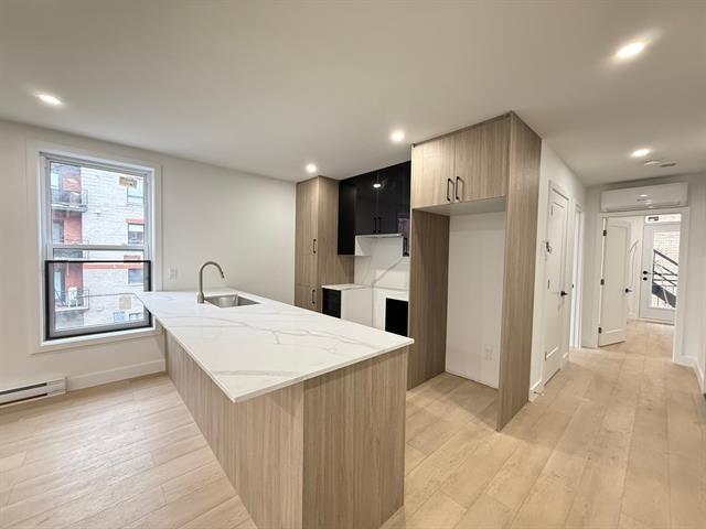 Multiple units are available. Promotion: 1 month free rent (conditions apply). Newly built unit for rent offering a modern and bright living space. Open-concept living and dining area with recessed lighting and light wood flooring. Contemporary kitchen with a large quartz island, full-height cabinetry, and a breakfast bar. Appliances included: stove, refrigerator, washer, dryer, and dishwasher. Two closed bedrooms with closets, one providing access to the rear outdoor space. Modern bathroom with a glass walk-in shower. Private entrance and well-maintained common areas. (49723582)